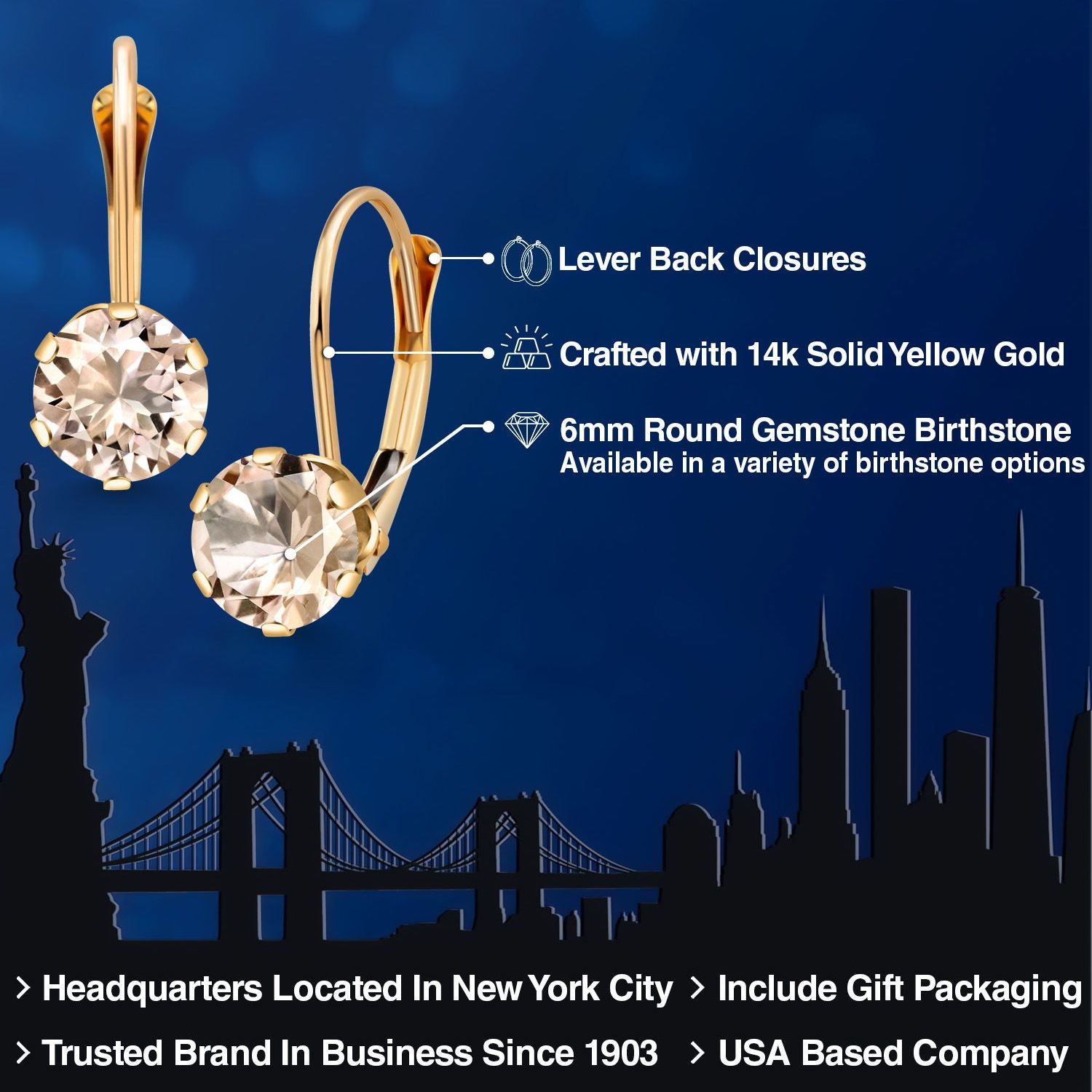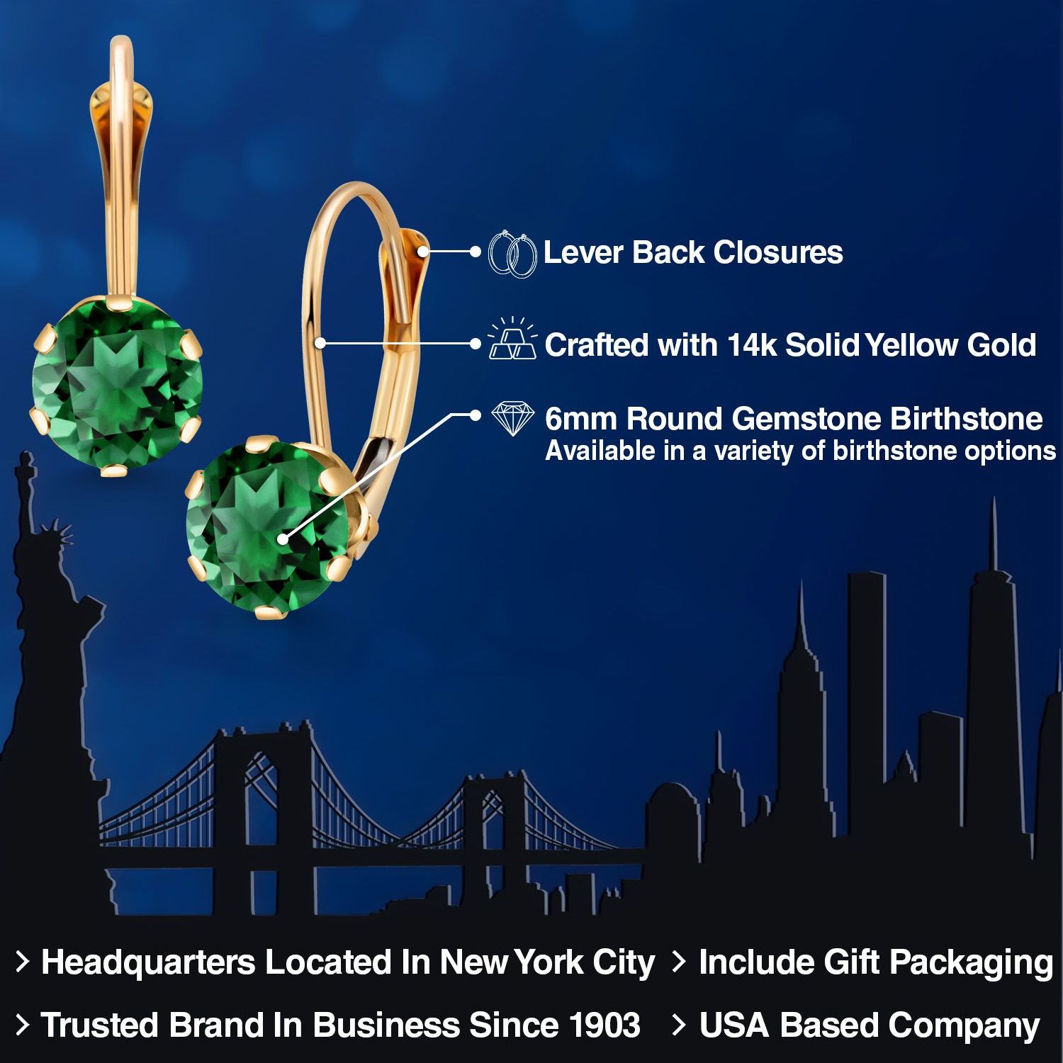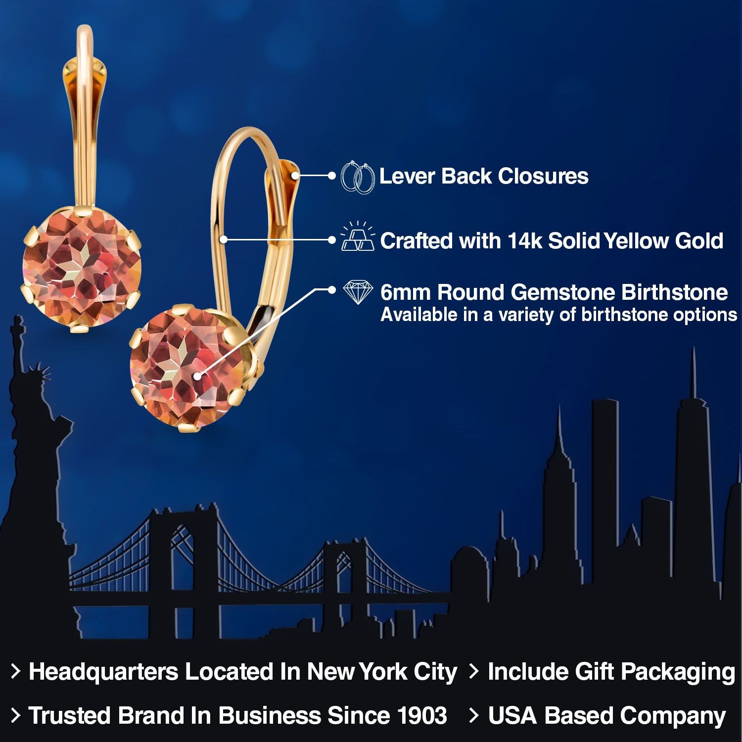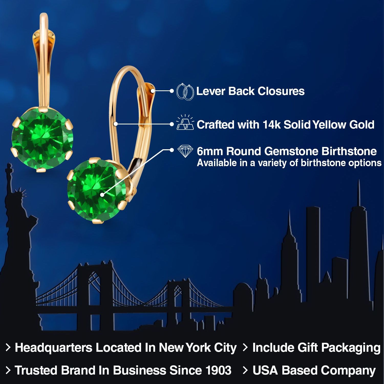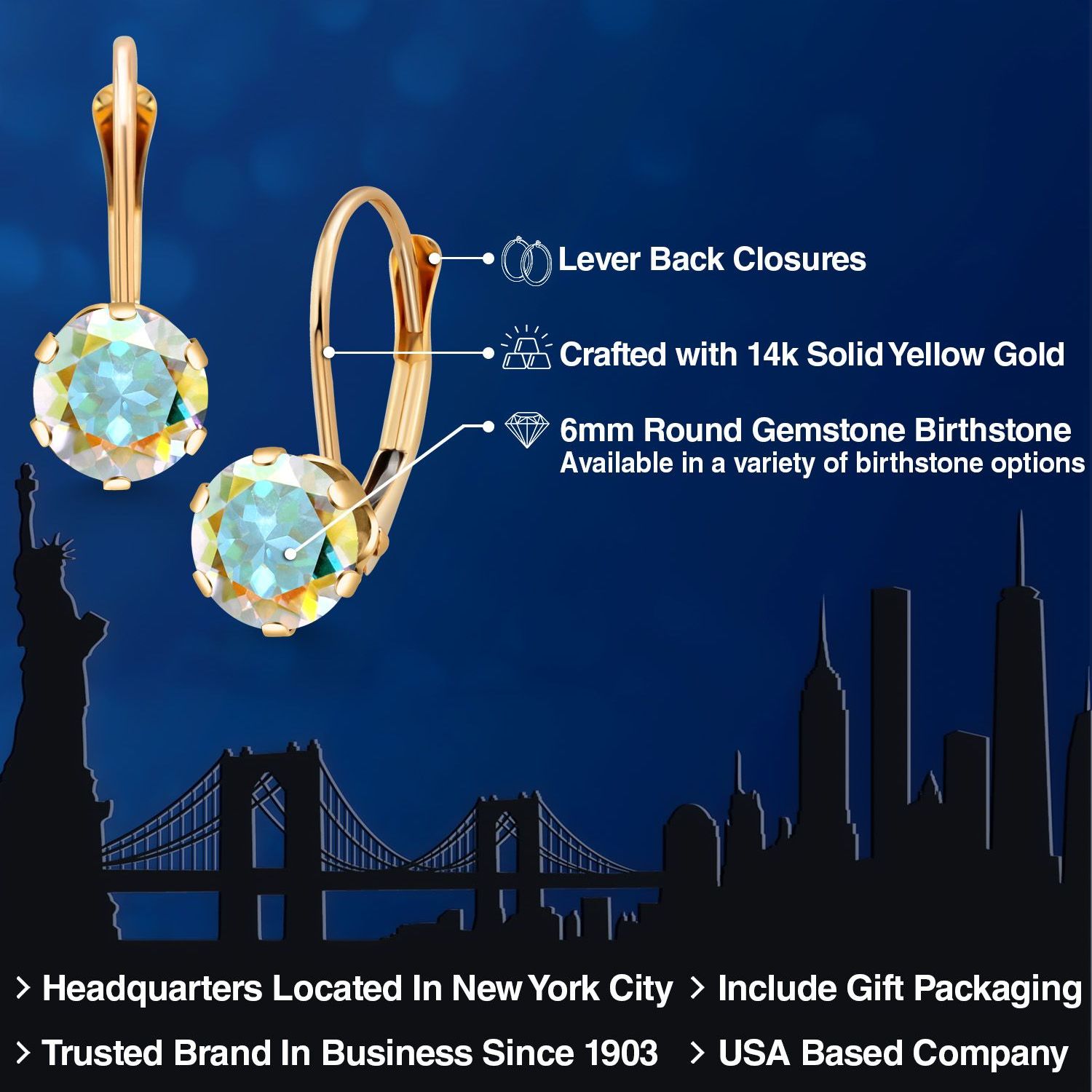 14K Yellow Gold 6MM Round Gemstone Birthstone Leverback Dangle Earrings | Gold Earrings For Women