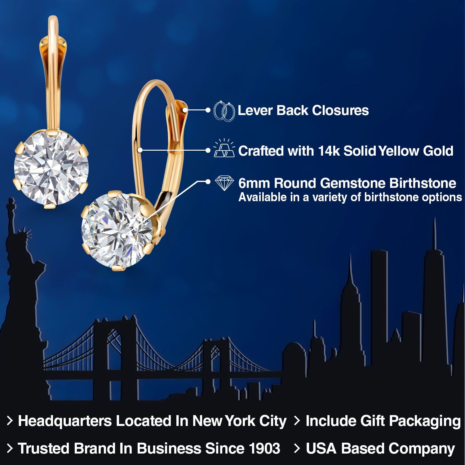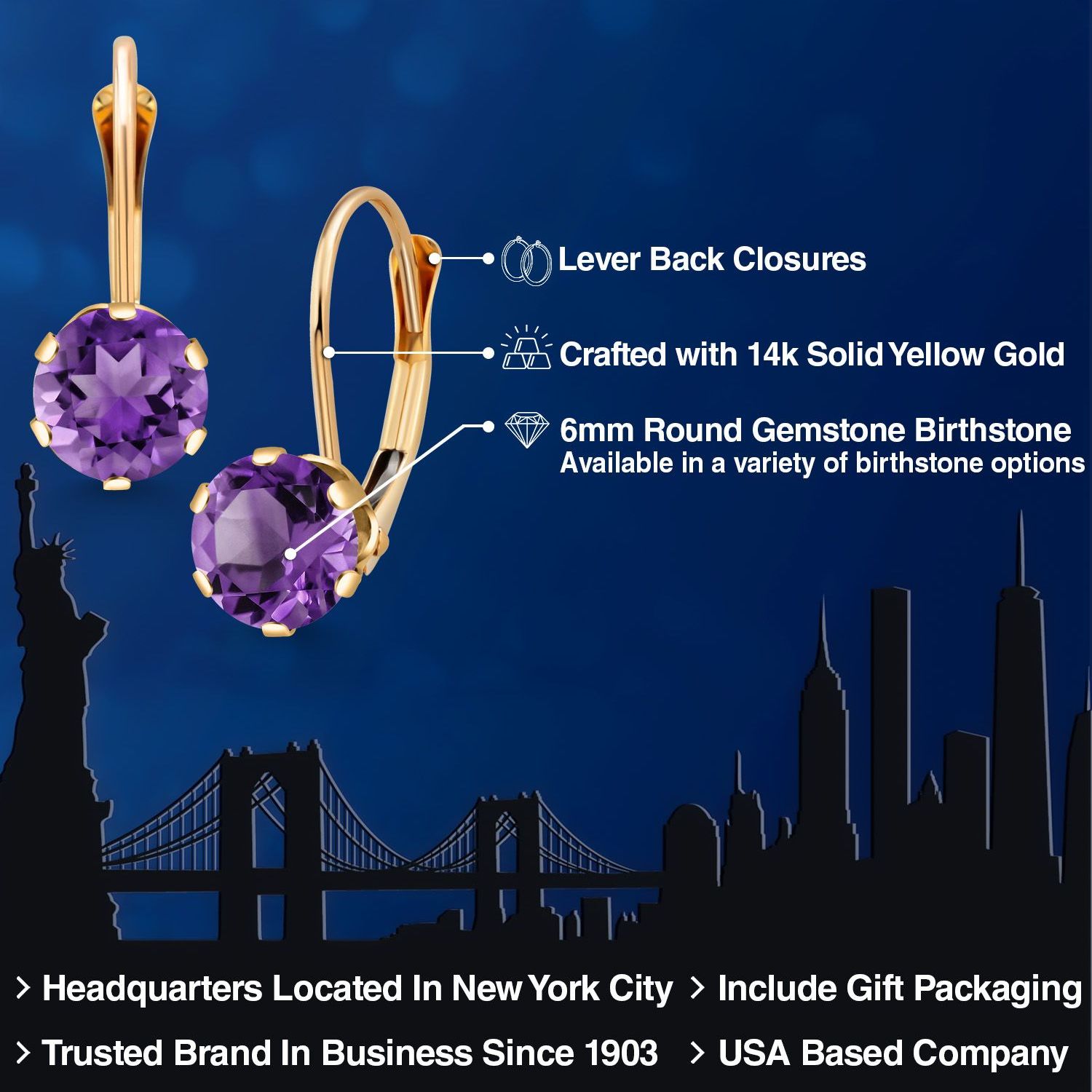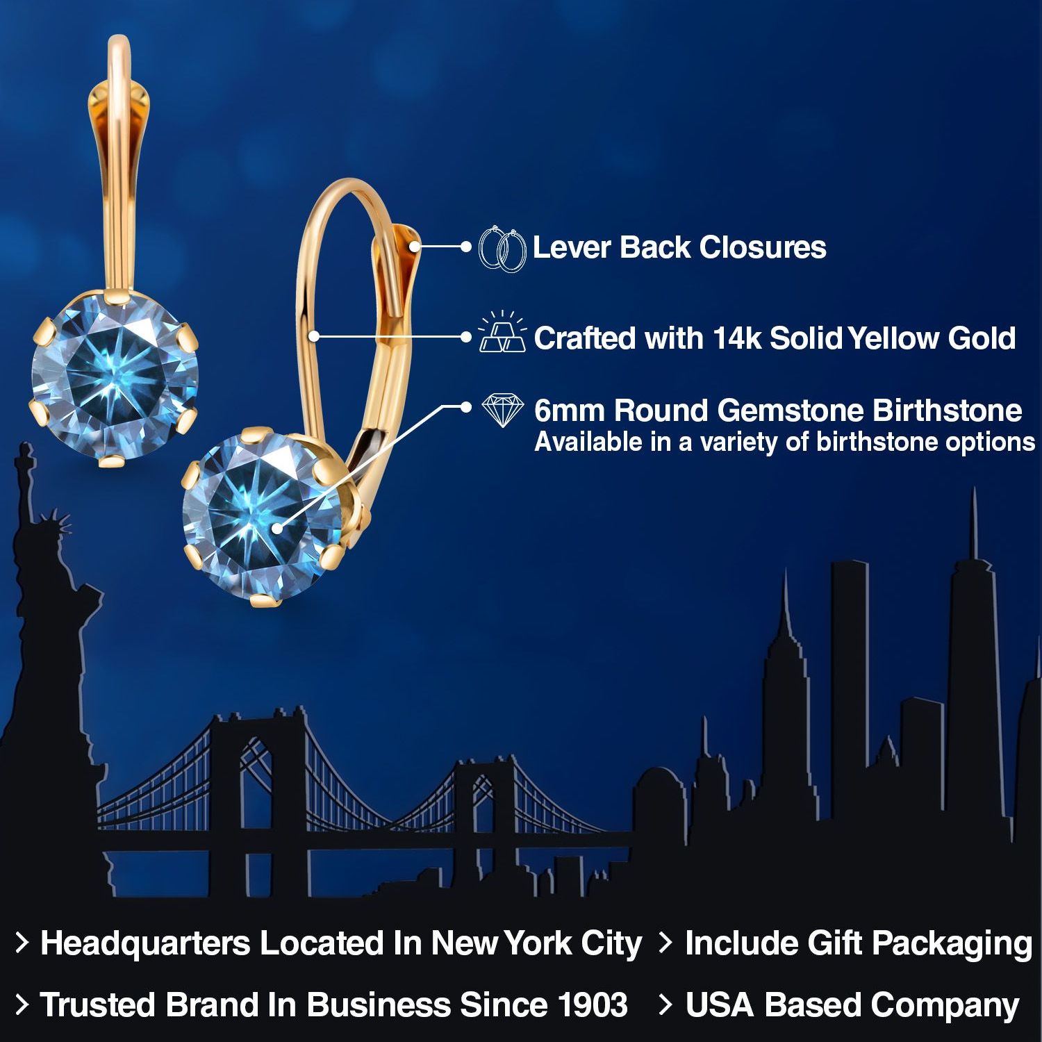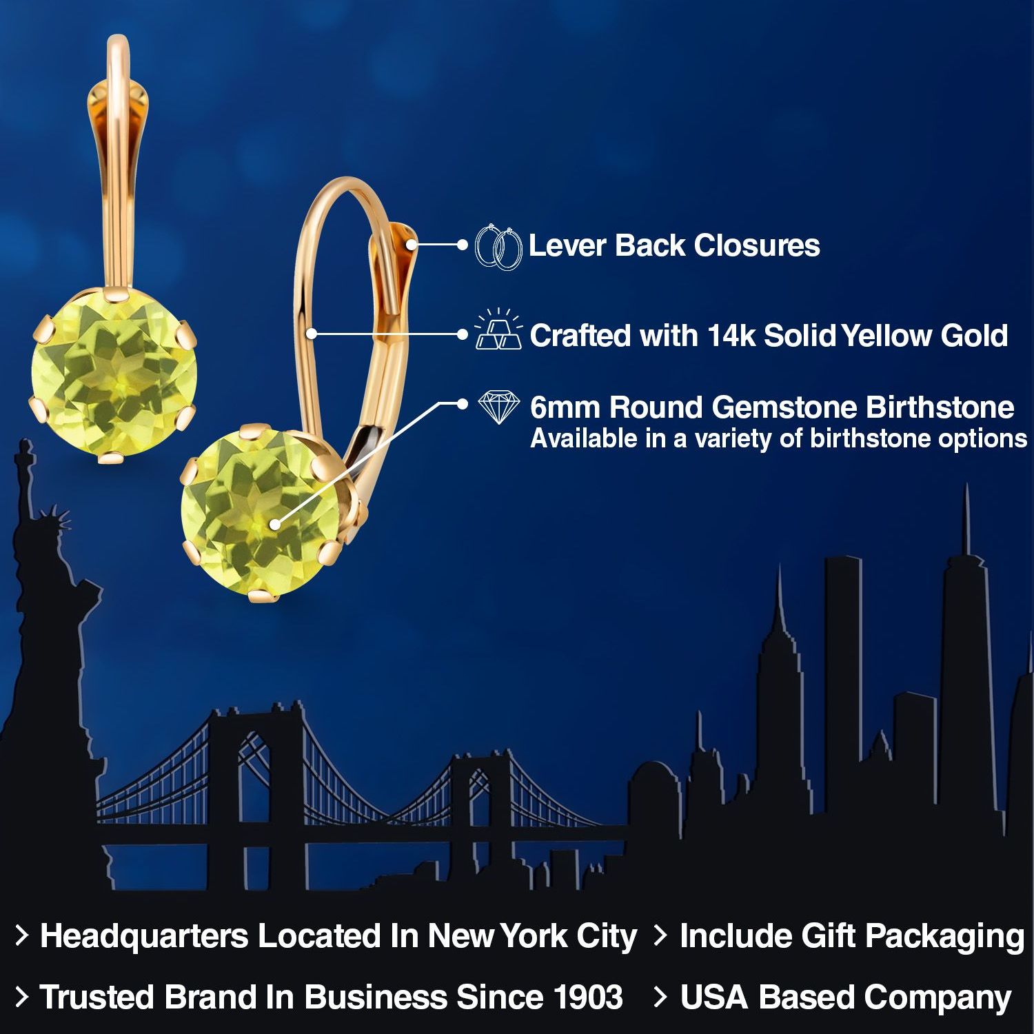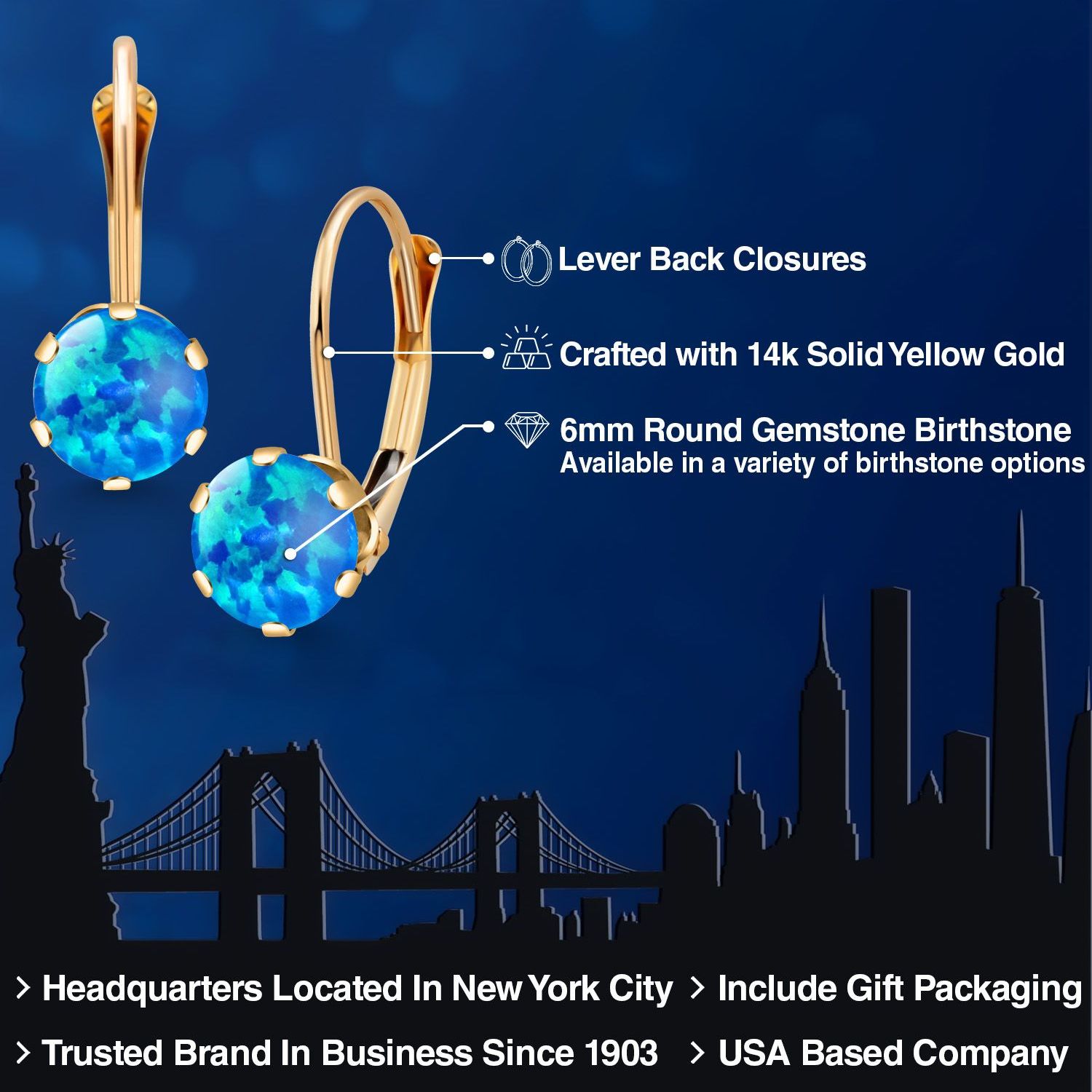 14K Yellow Gold 6MM Round Gemstone Birthstone Leverback Dangle Earrings | Gold Earrings For Women