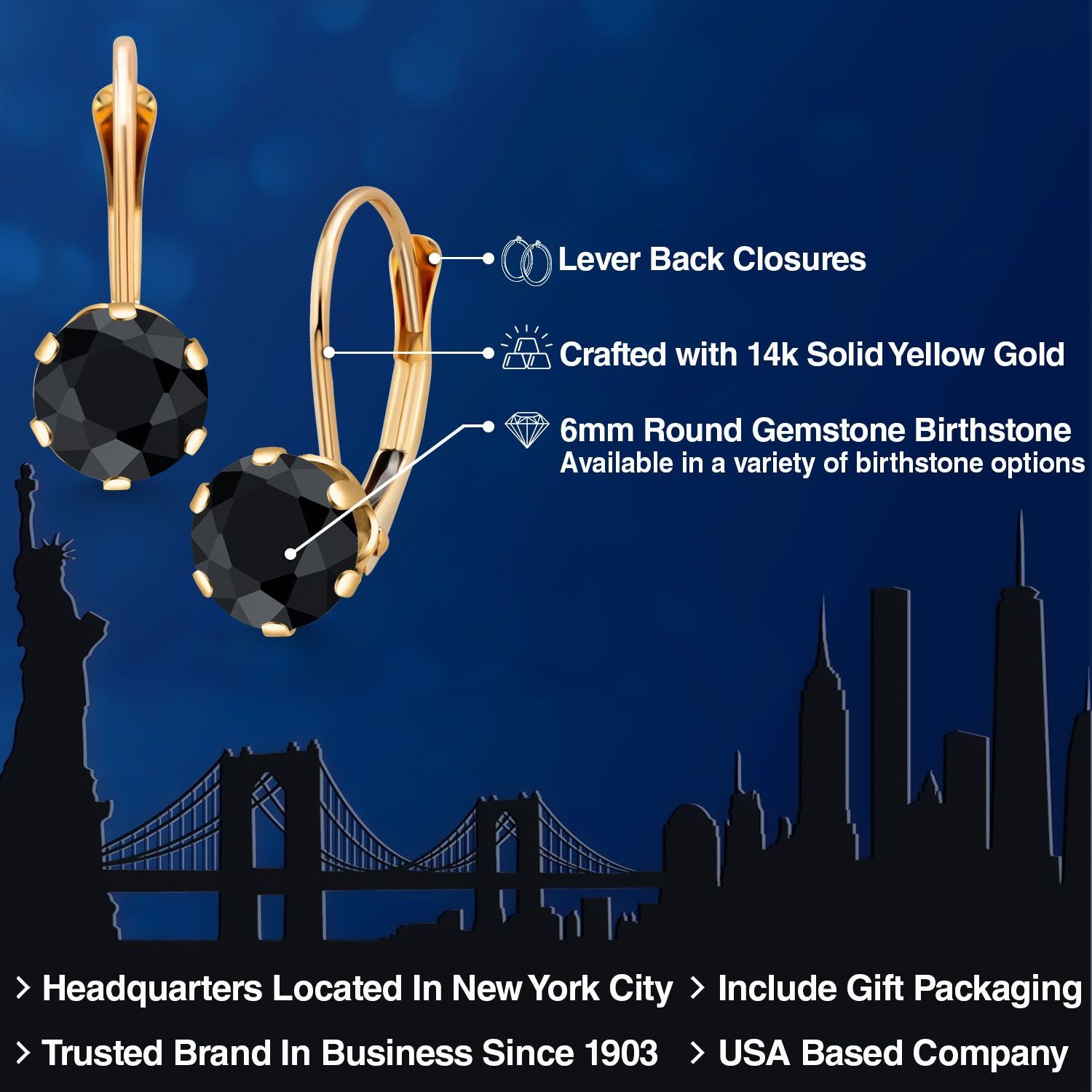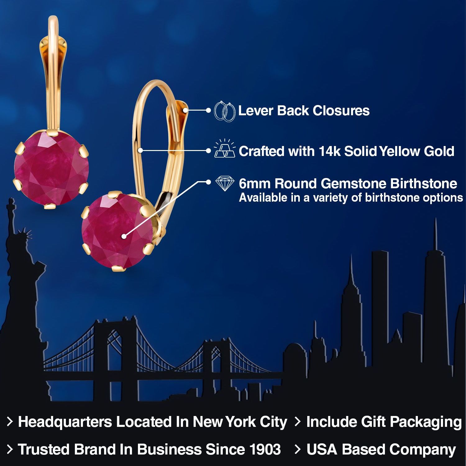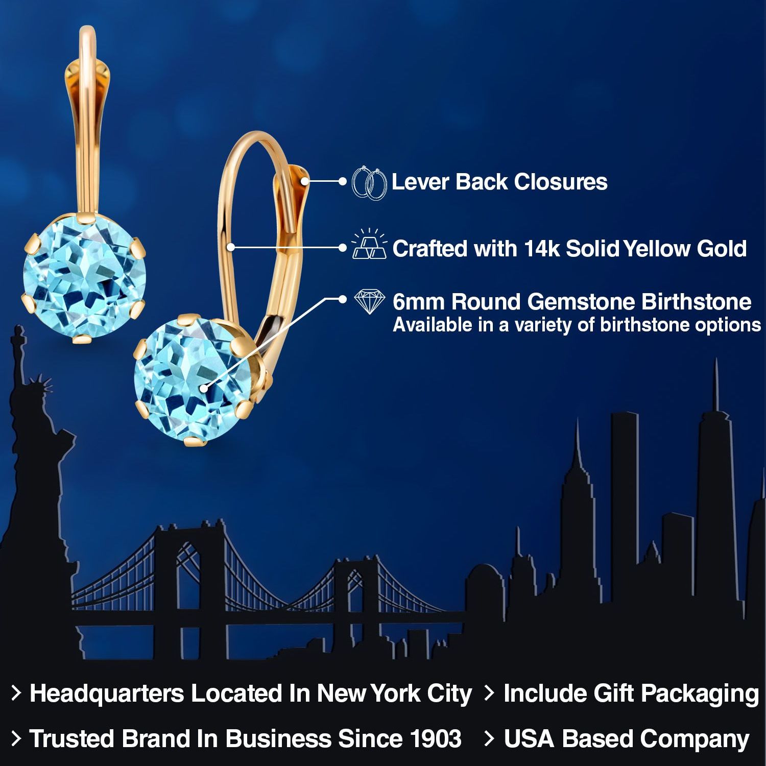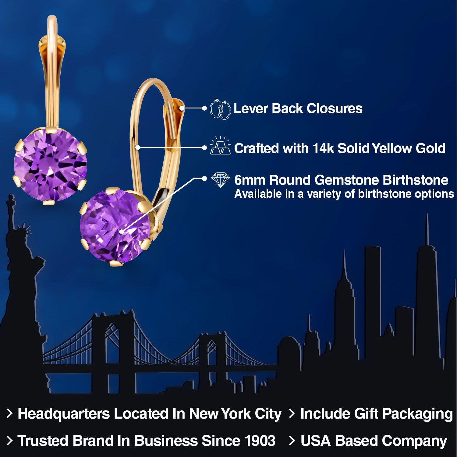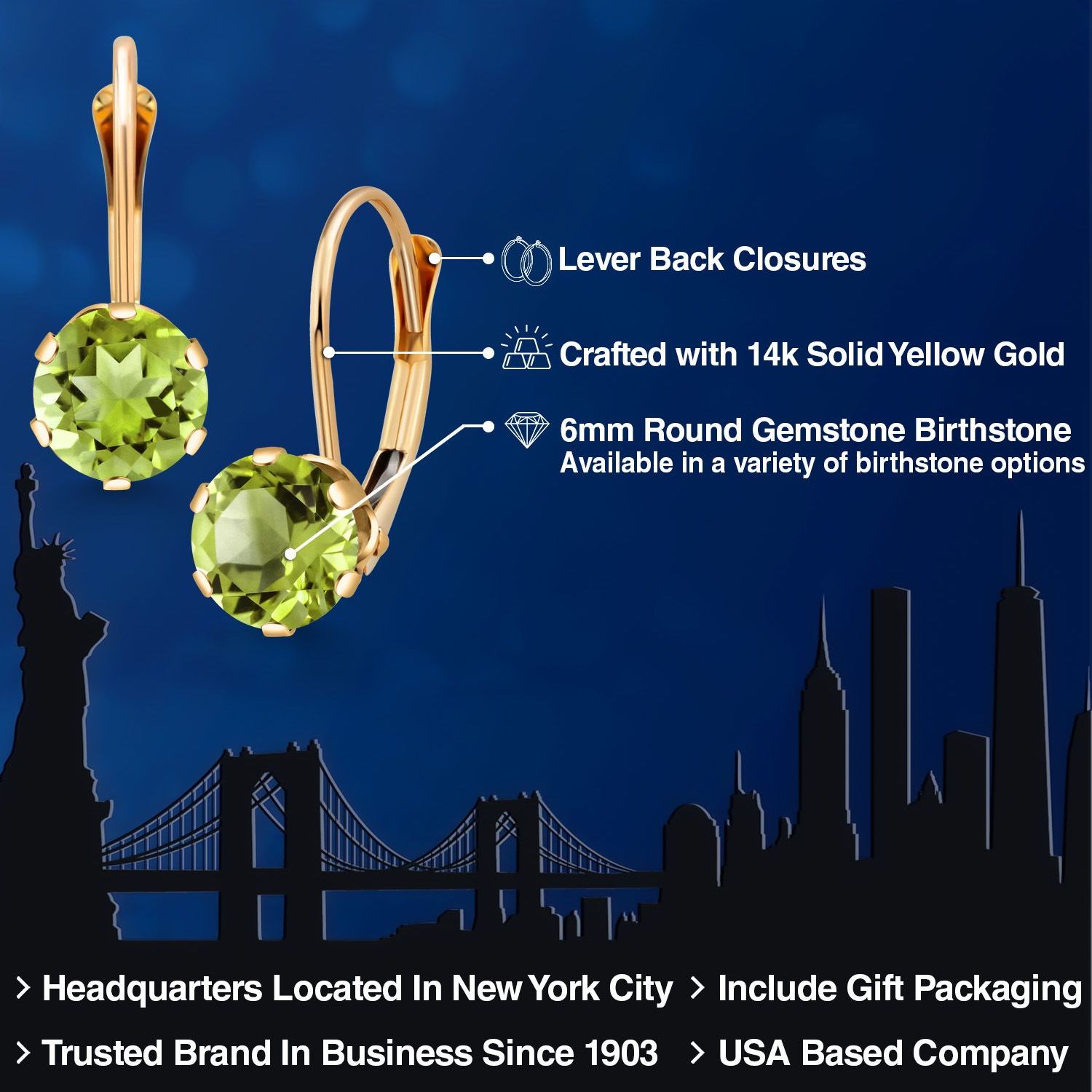 14K Yellow Gold 6MM Round Gemstone Birthstone Leverback Dangle Earrings | Gold Earrings For Women
