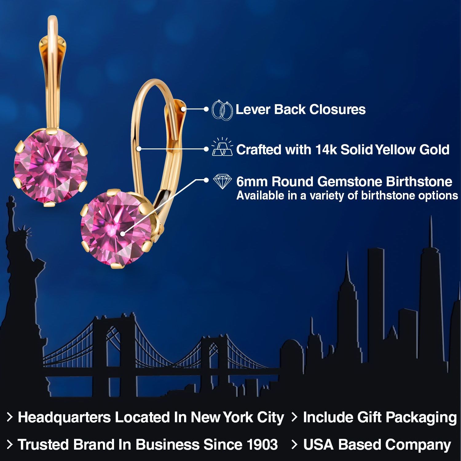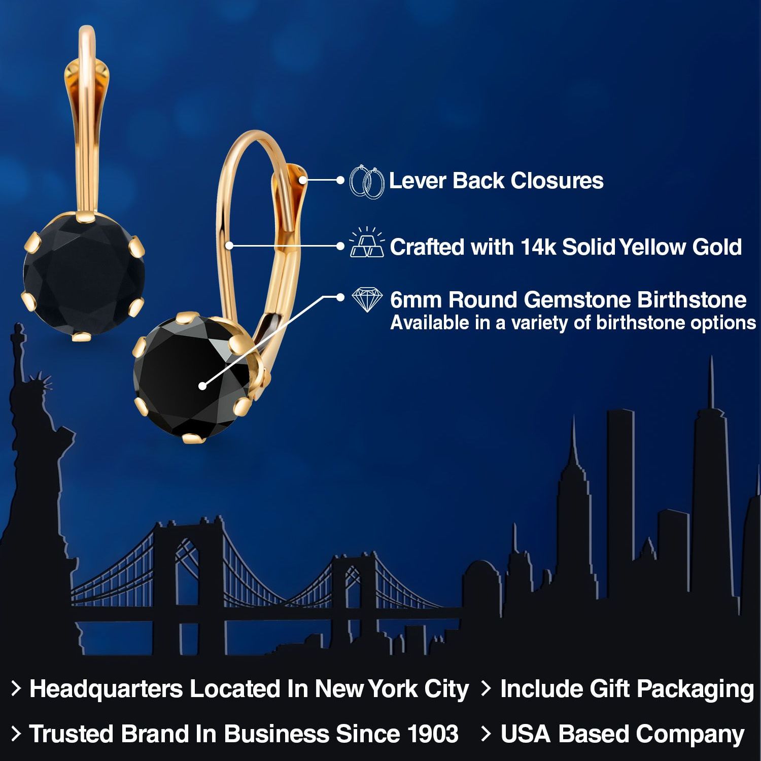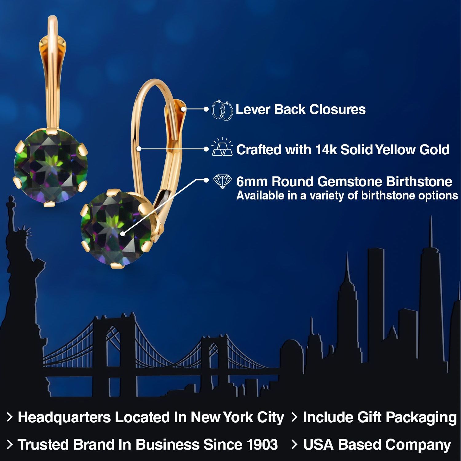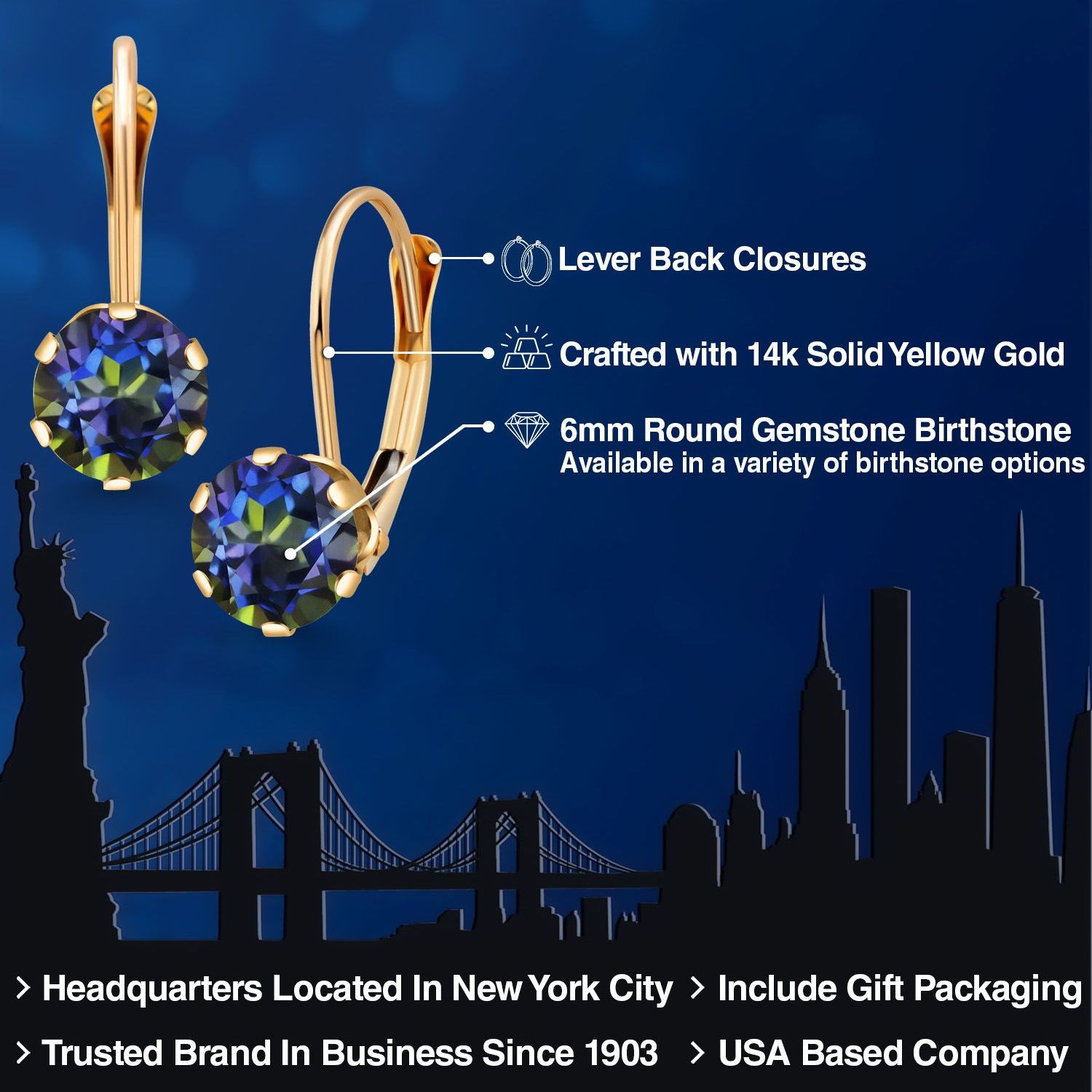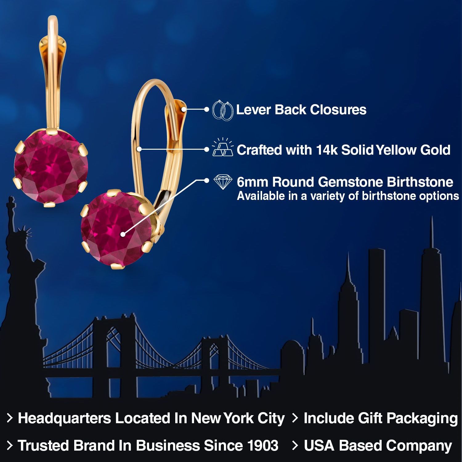 14K Yellow Gold 6MM Round Gemstone Birthstone Leverback Dangle Earrings | Gold Earrings For Women