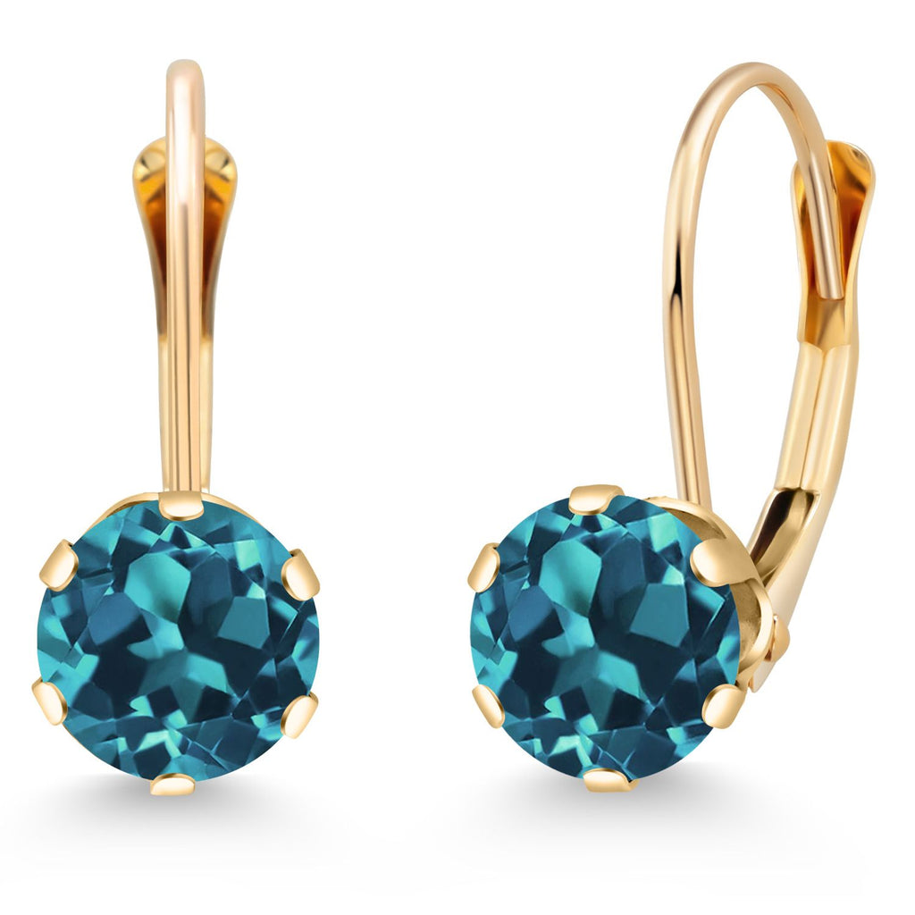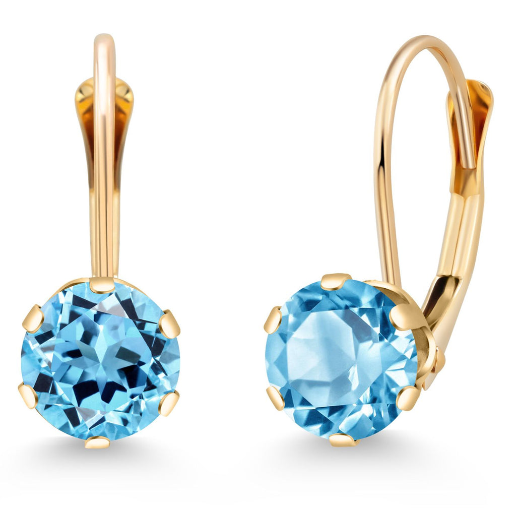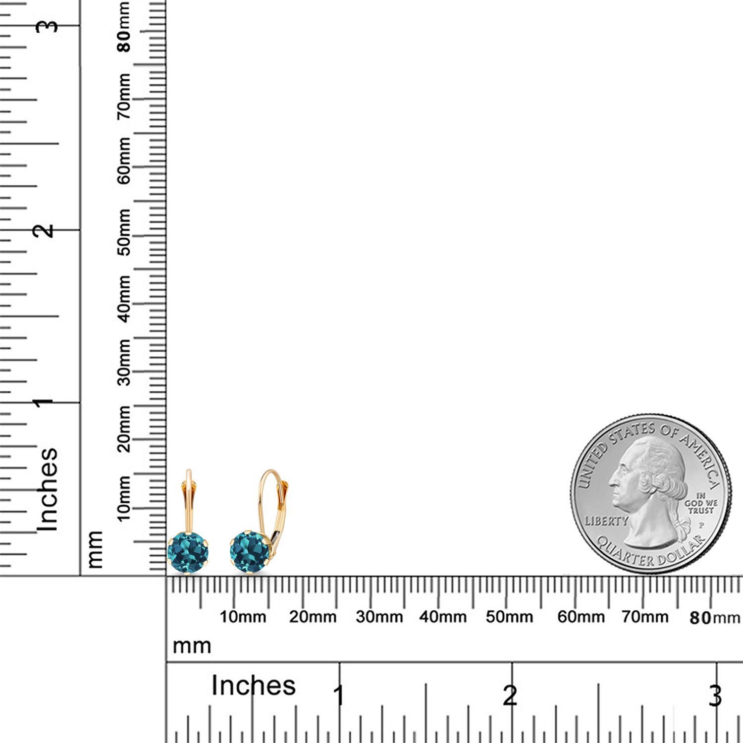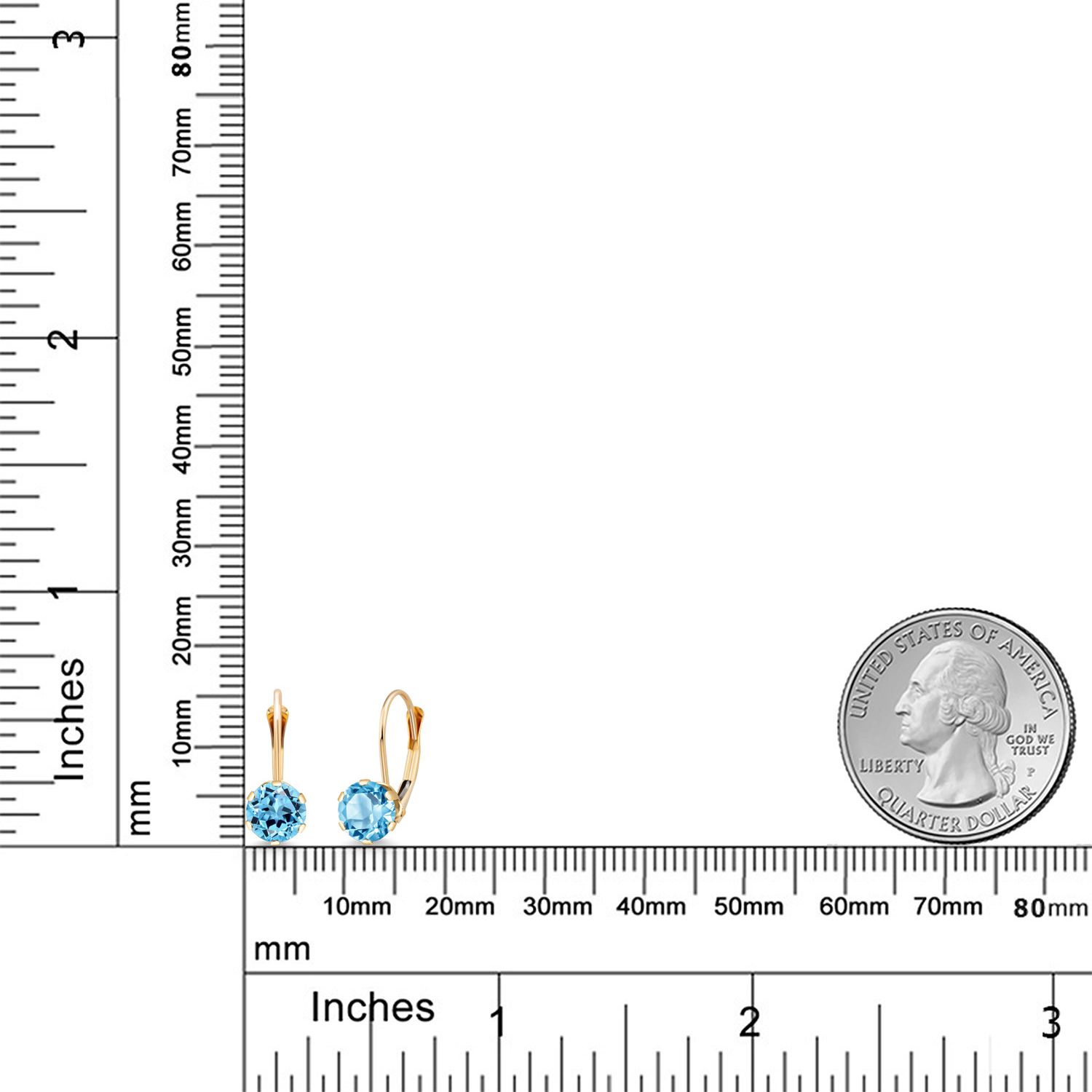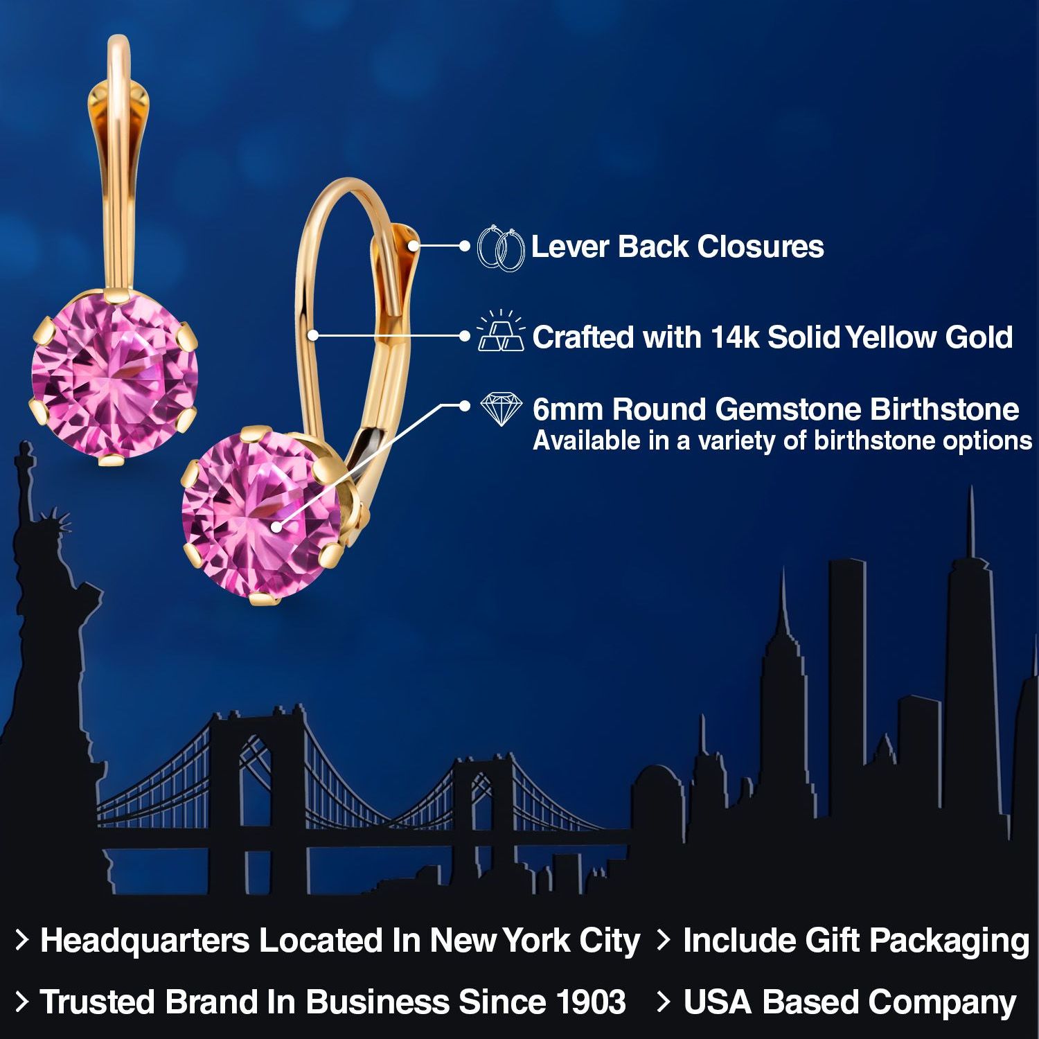 14K Yellow Gold 6MM Round Gemstone Birthstone Leverback Dangle Earrings | Gold Earrings For Women