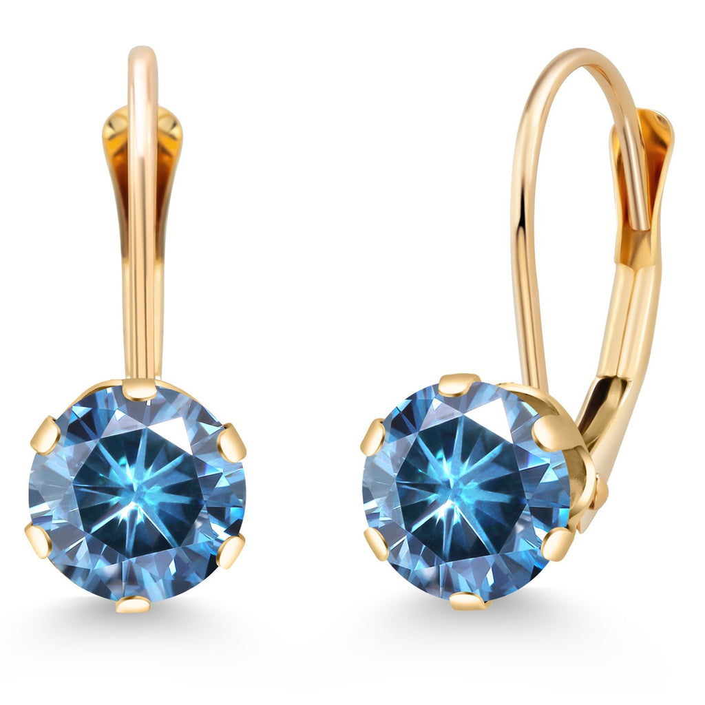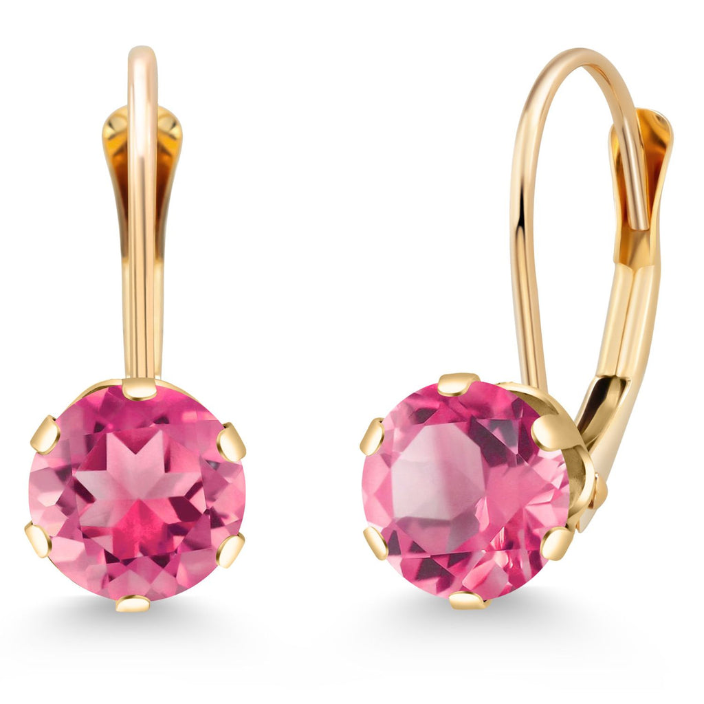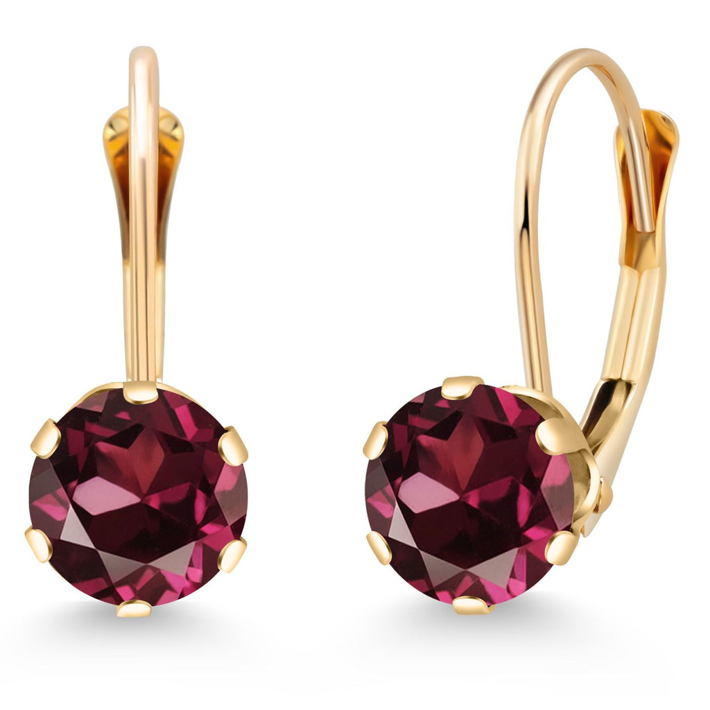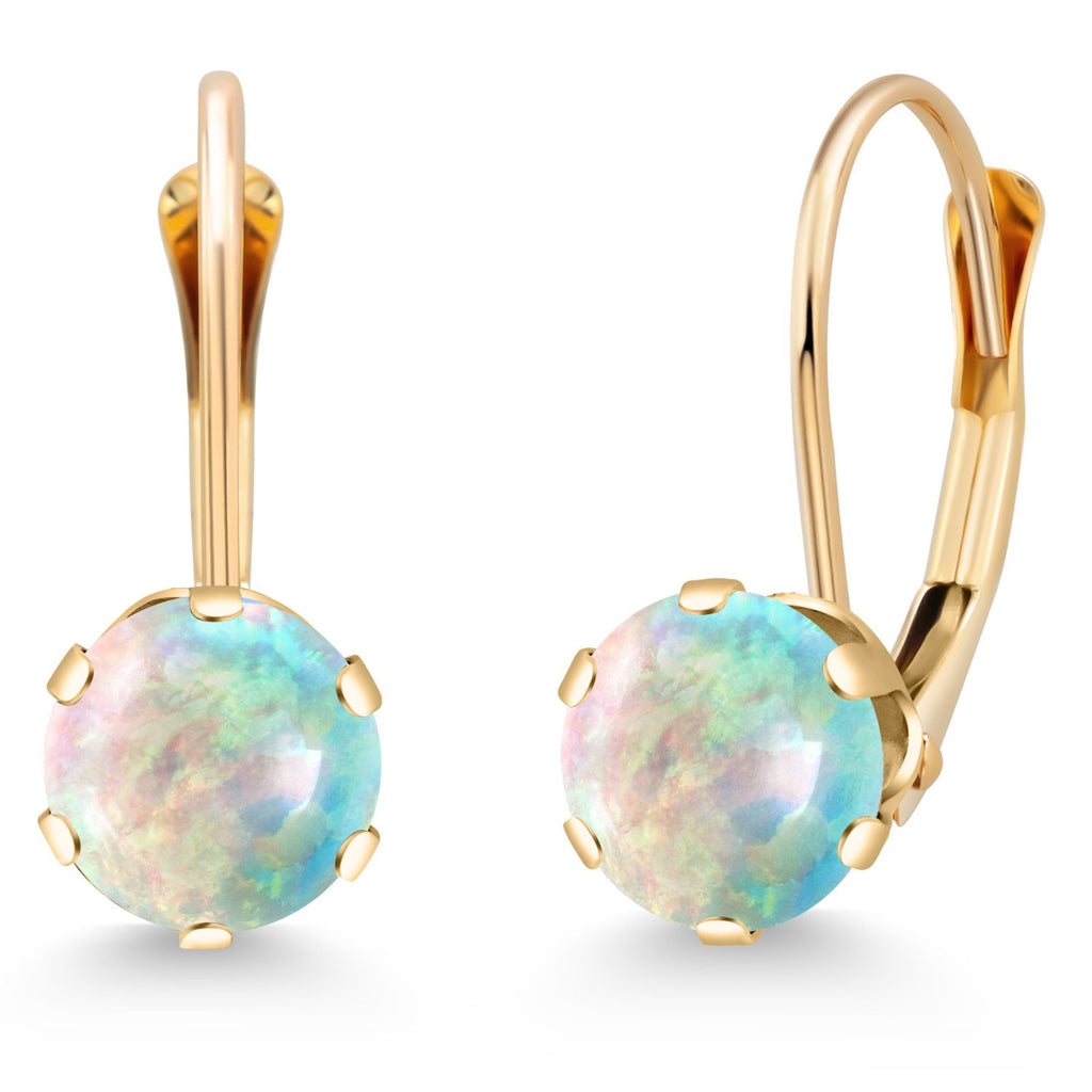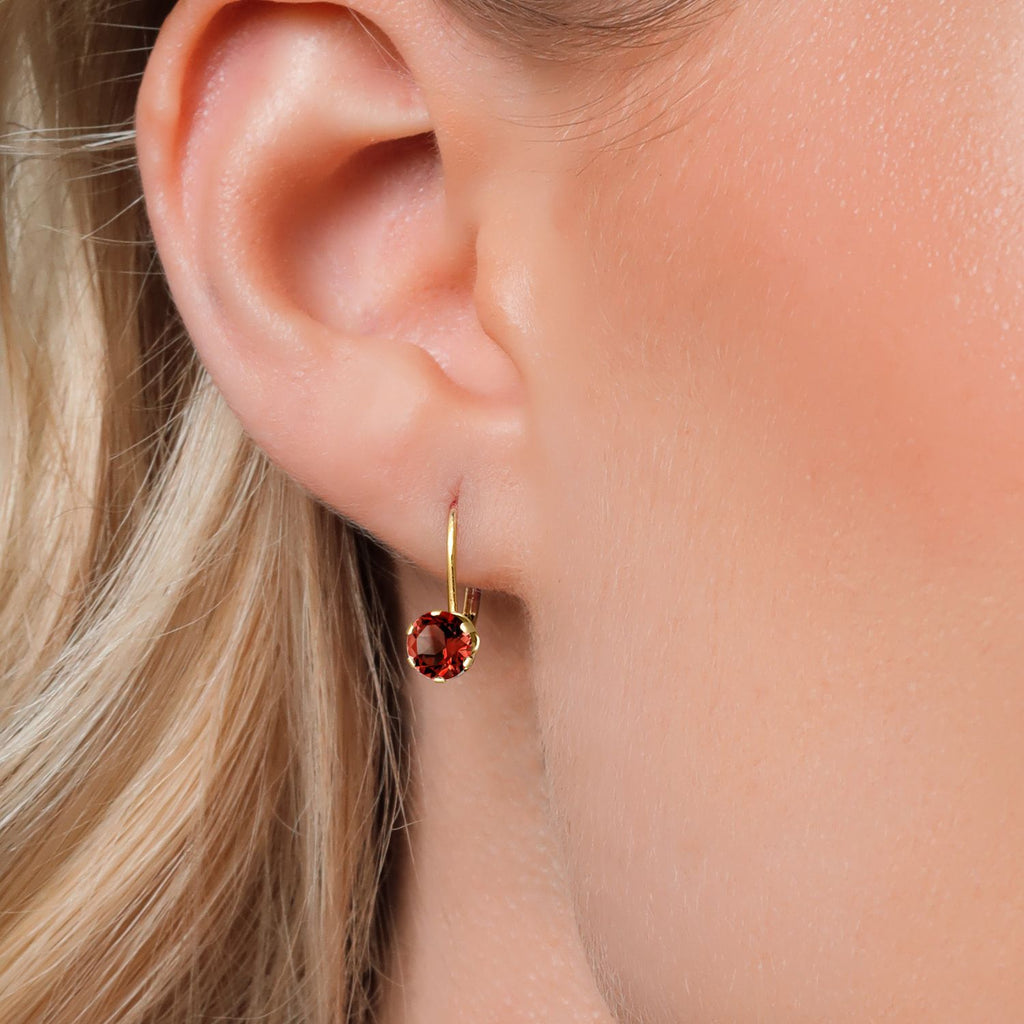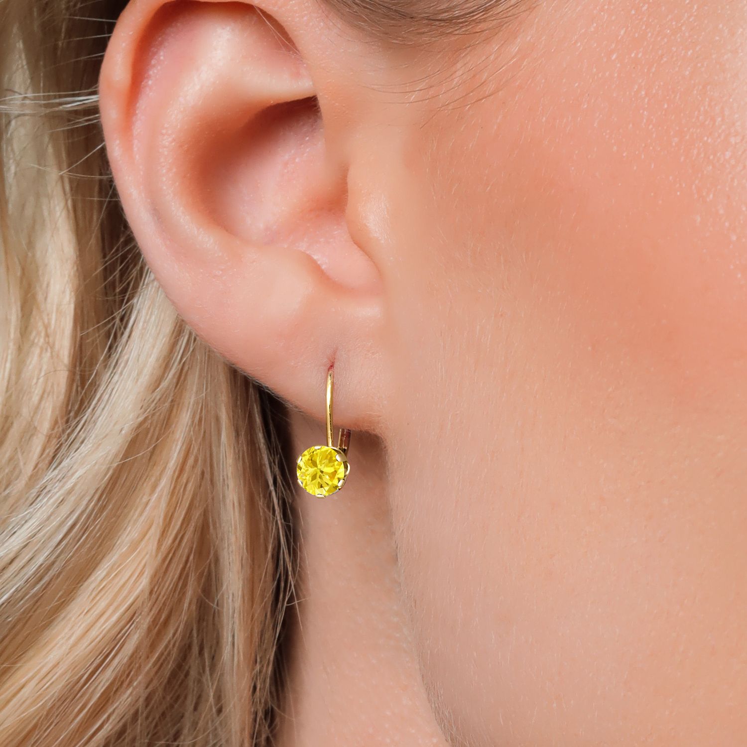 14K Yellow Gold 6MM Round Gemstone Birthstone Leverback Dangle Earrings | Gold Earrings For Women