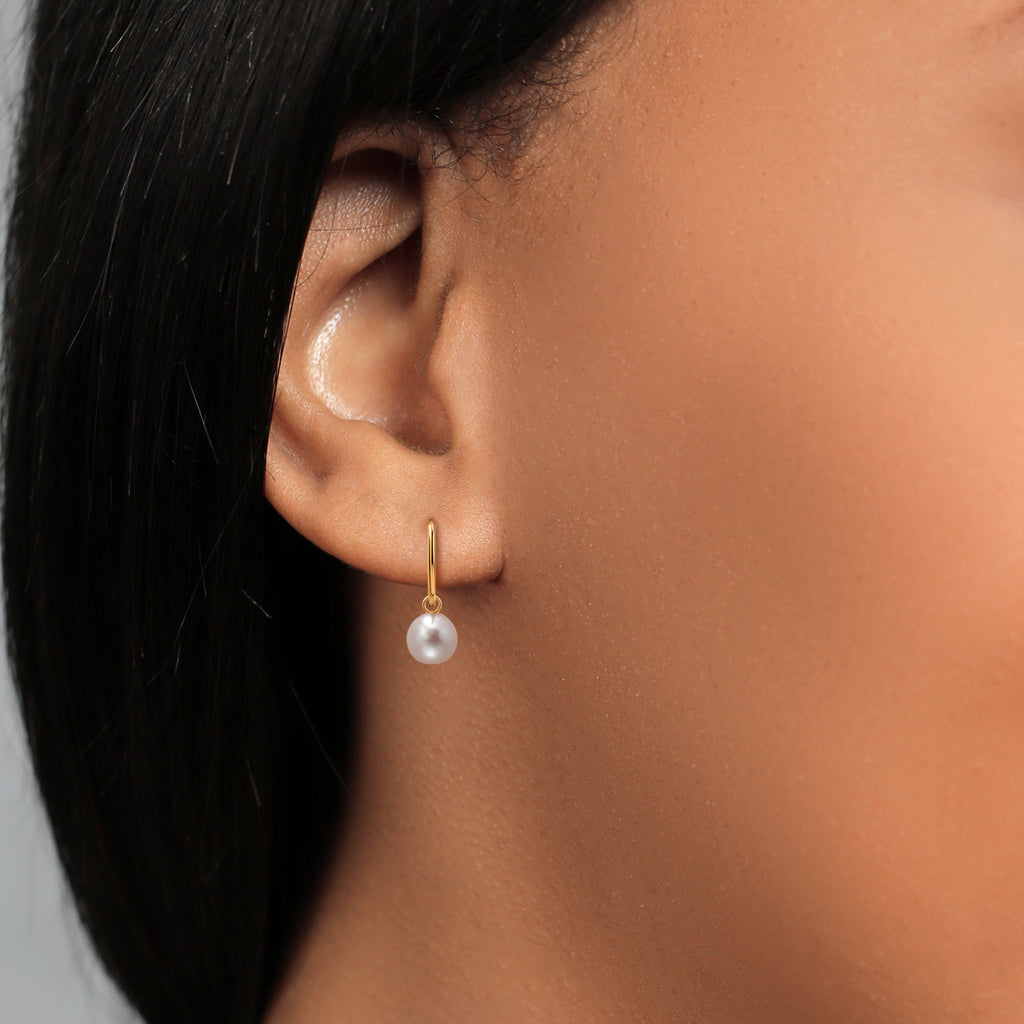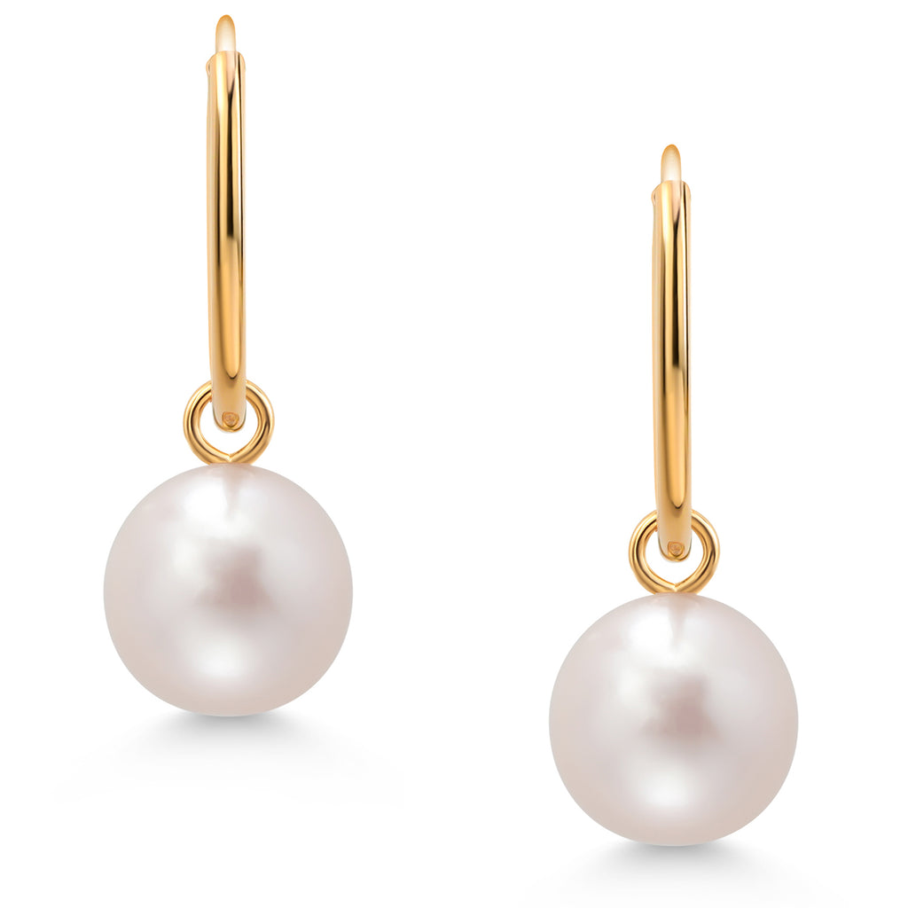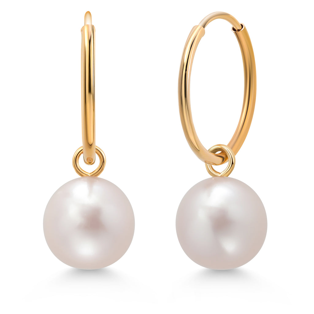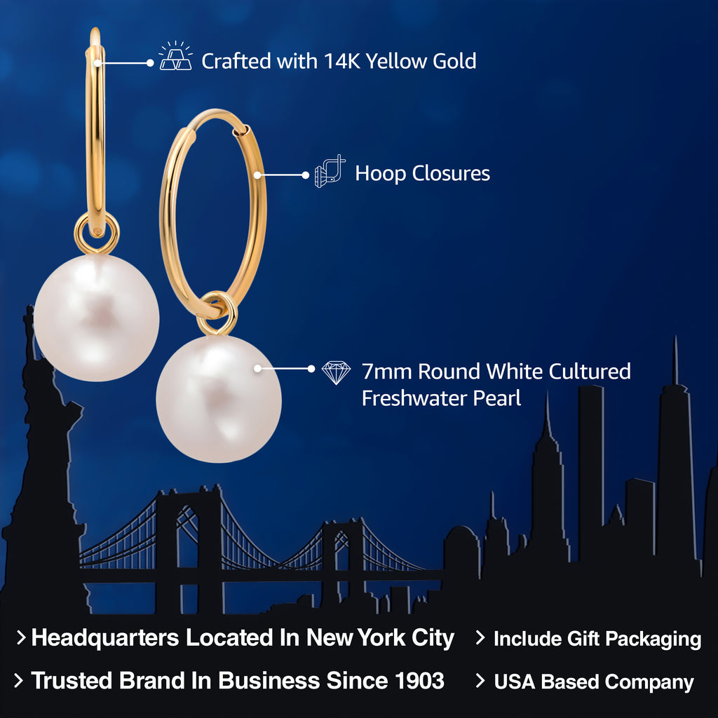 14K Yellow Gold 7MM White Round Shape Cultured Freshwater Pearl Endless Hoop Earrings For Women
