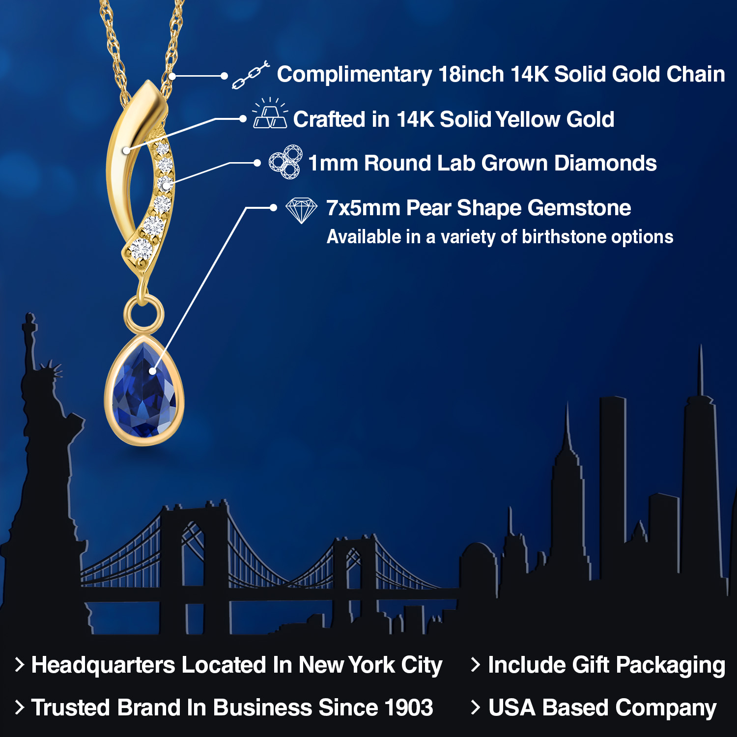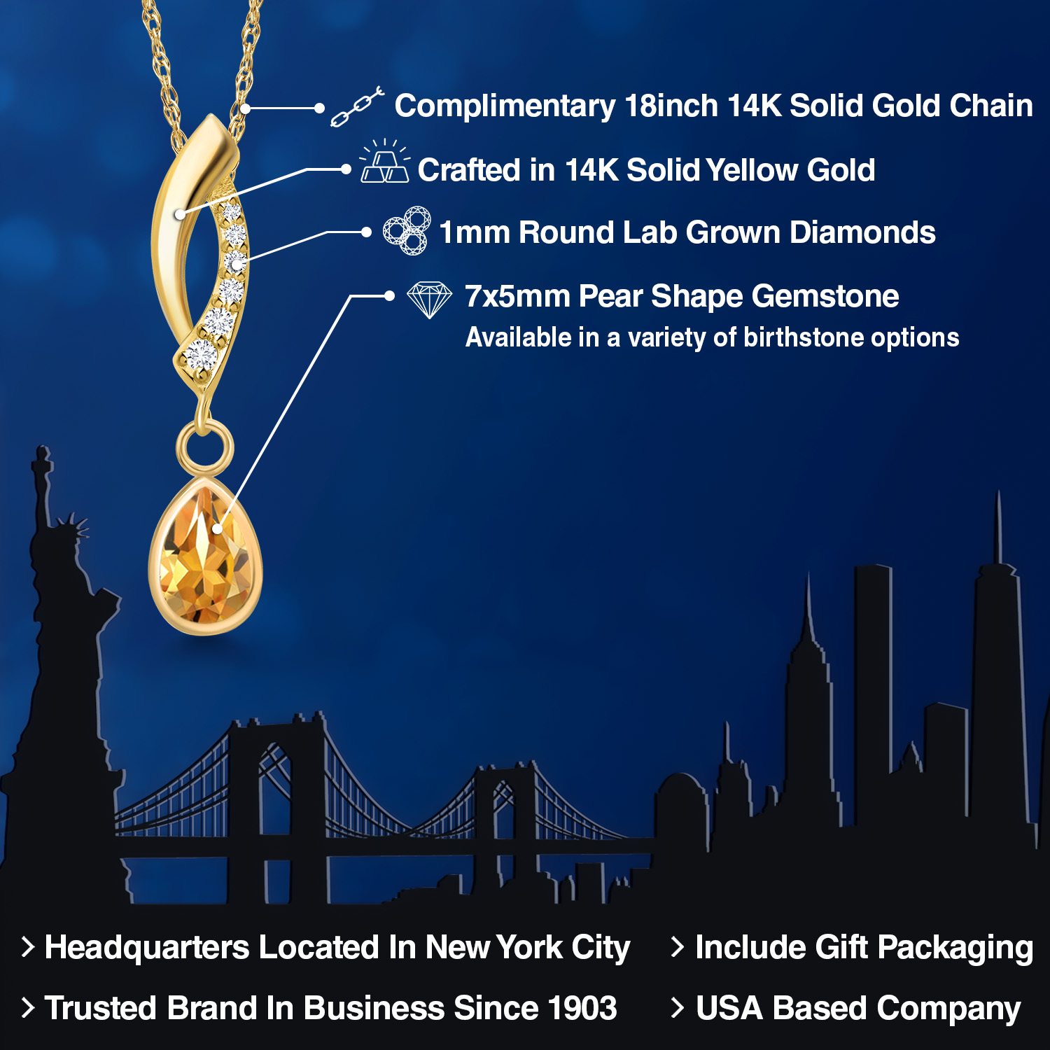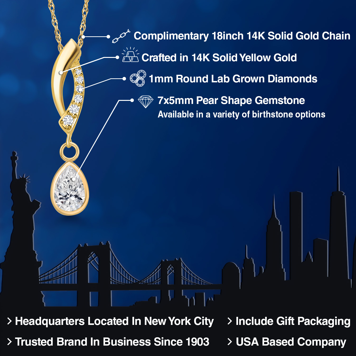 14K Yellow Gold 7X5MM Pear Shape Gemstone Birthstone and Lab Grown Diamond Accent Infinity Drop Pendant Necklace for Women | With 18 Inch Chain | Fine Jewelry for Her Mom Wife