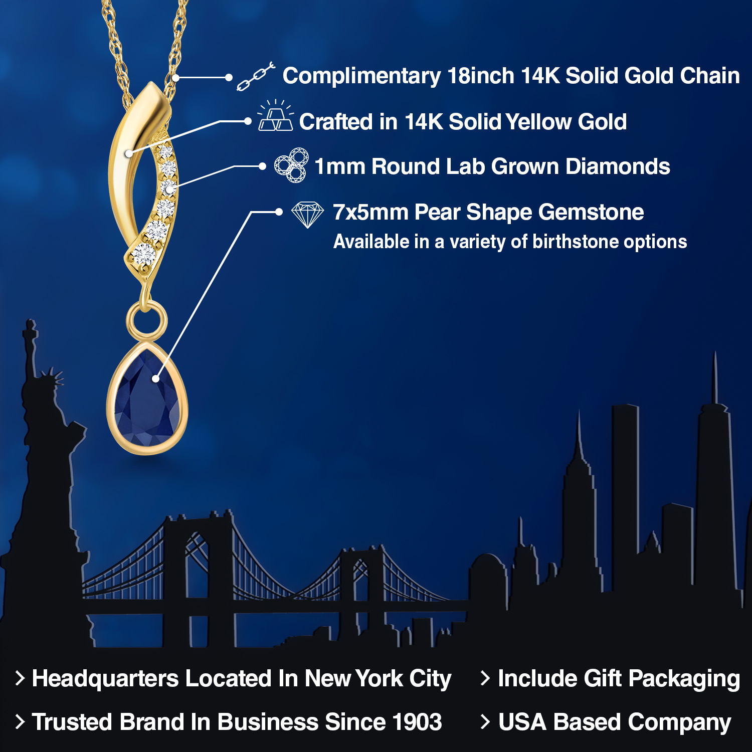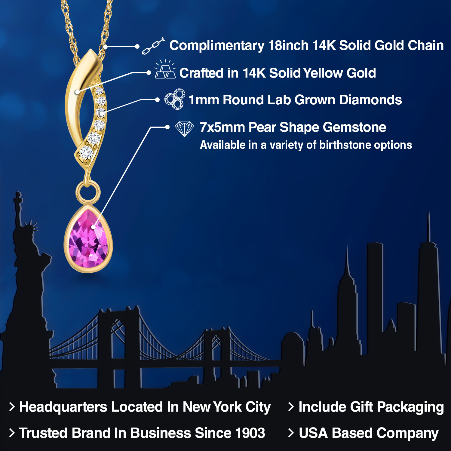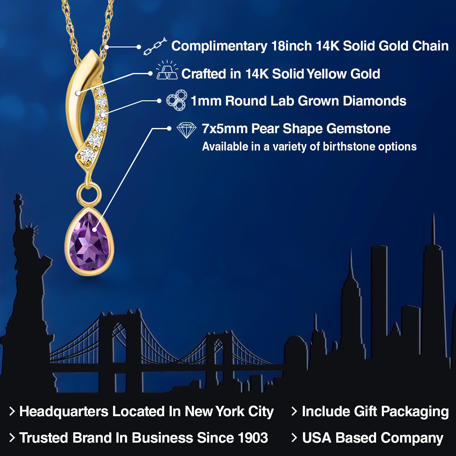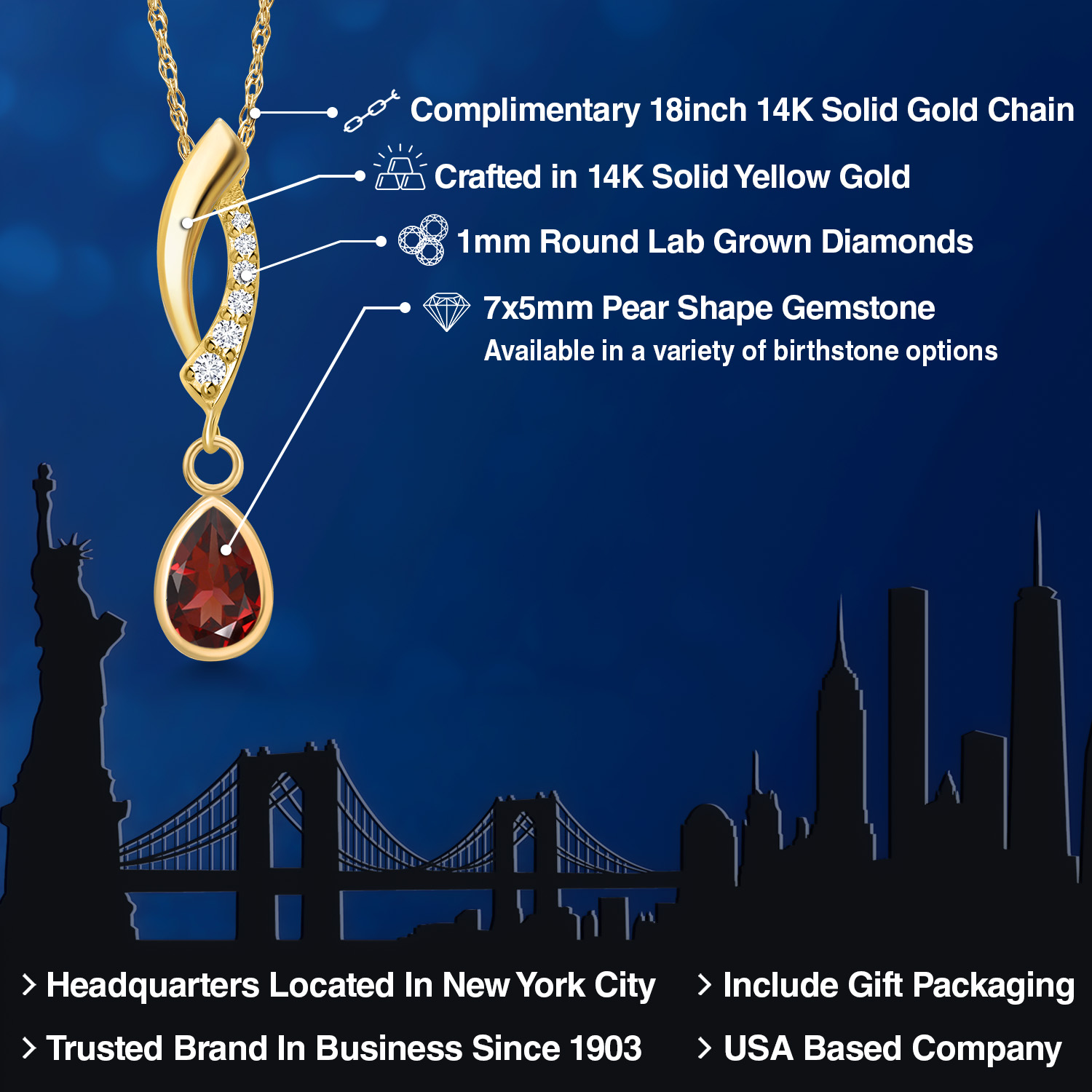 14K Yellow Gold 7X5MM Pear Shape Gemstone Birthstone and Lab Grown Diamond Accent Infinity Drop Pendant Necklace for Women | With 18 Inch Chain | Fine Jewelry for Her Mom Wife