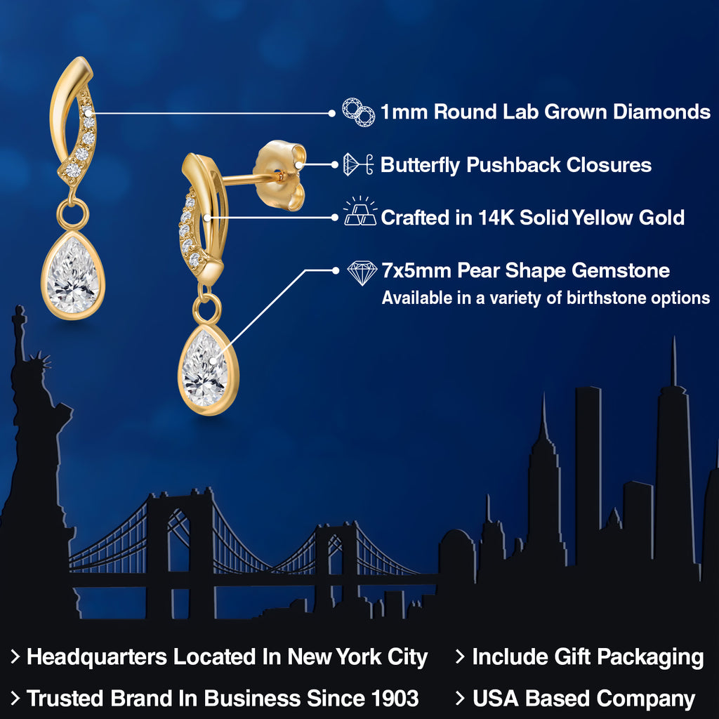 14K Yellow Gold Gemstone Birthstone and Lab Grown Diamond Infinity Drop Teardrop Earrings for Women | 7X5MM Pear Shape | Fine Gold Jewelry for Her Mom Wife