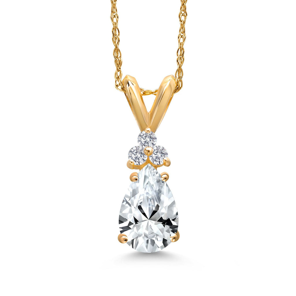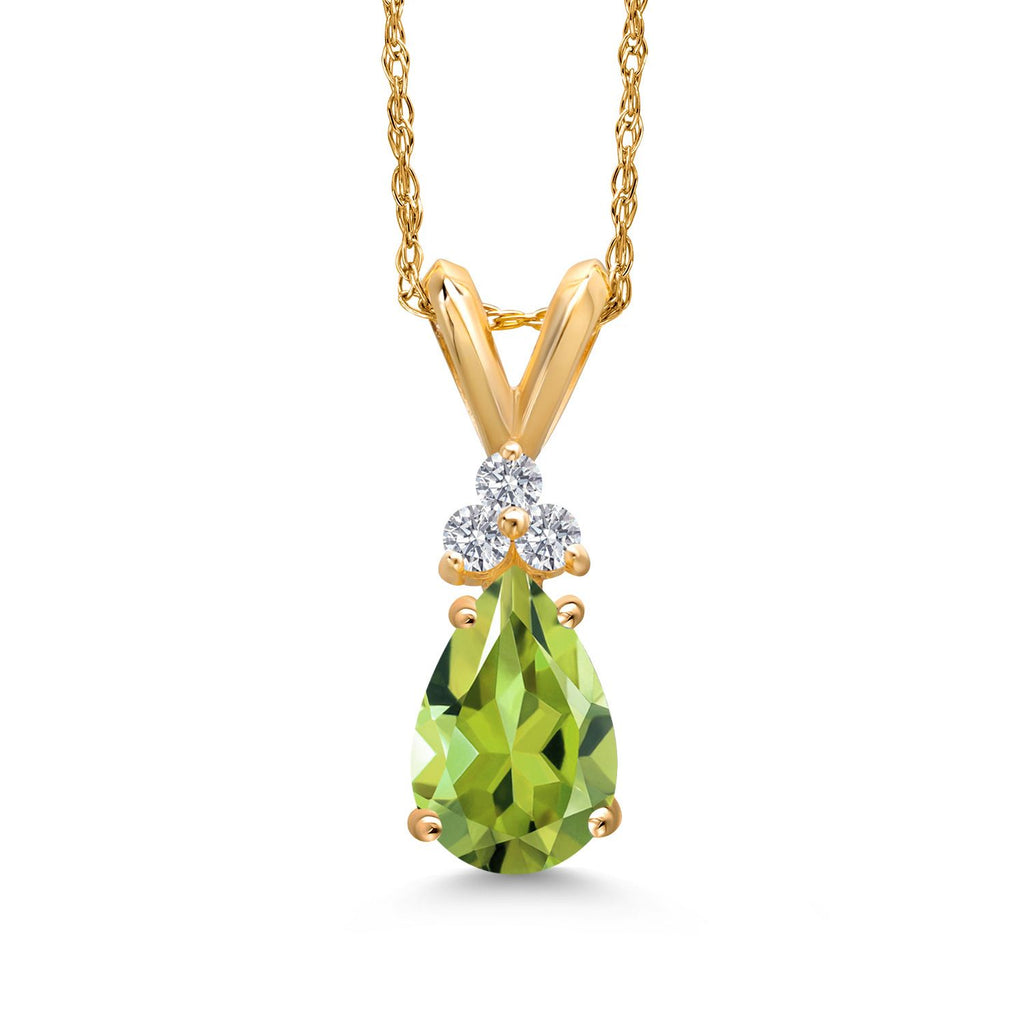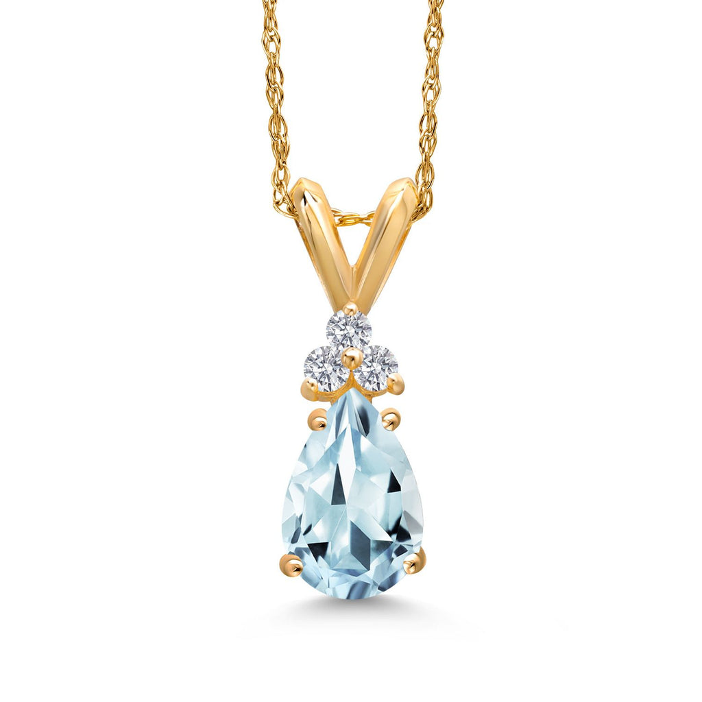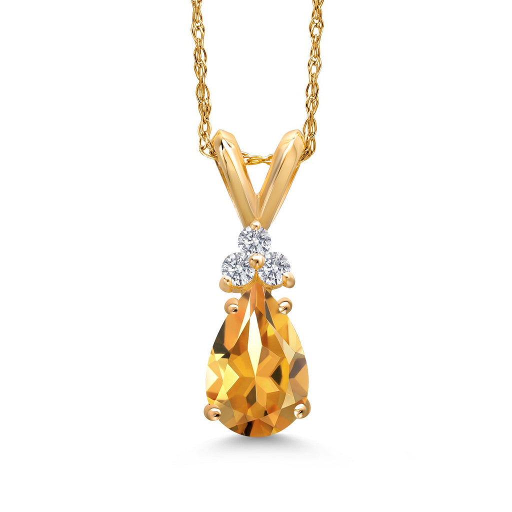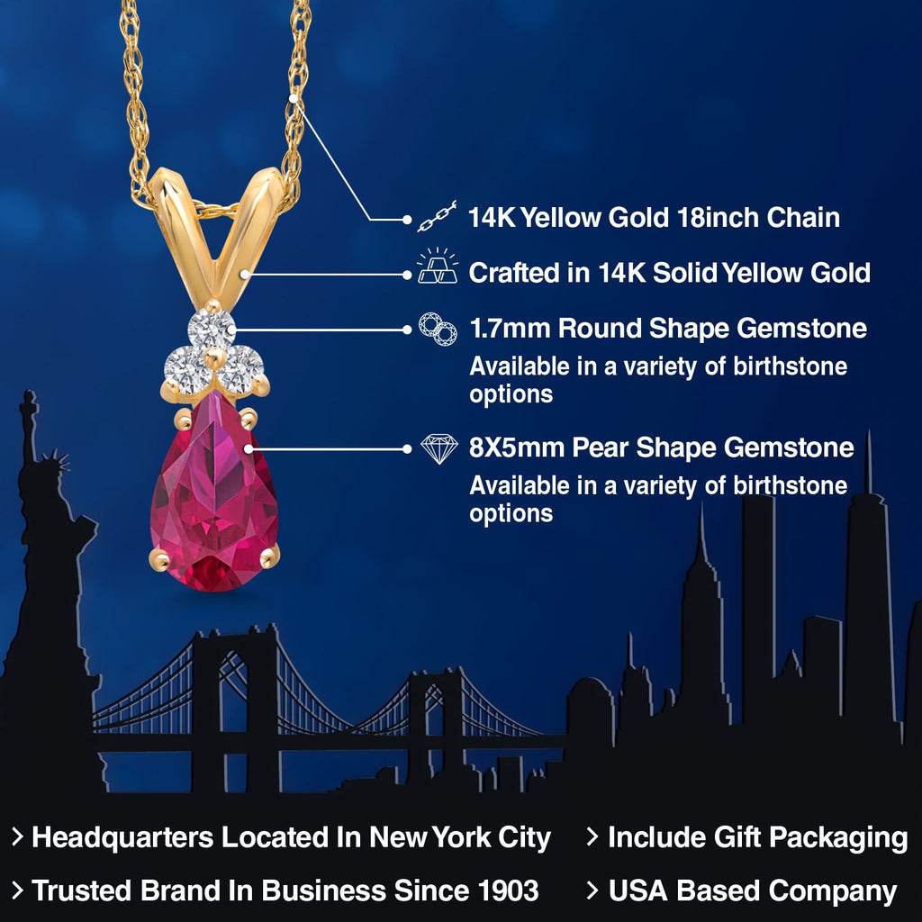14K Yellow Gold 8X5MM Pear Shape Gemstone Birthstone and White Lab Grown Diamond Teardrop Pendant Necklace | Gold Necklace for Women | 18 Inch Gold Chain