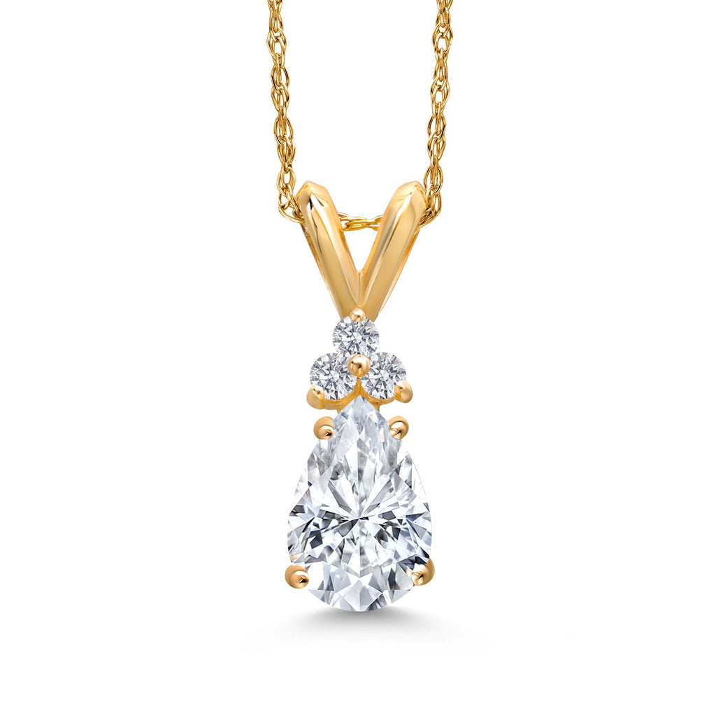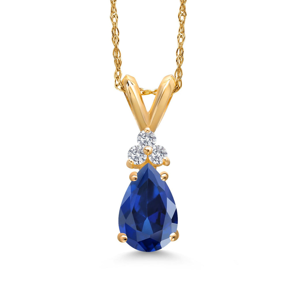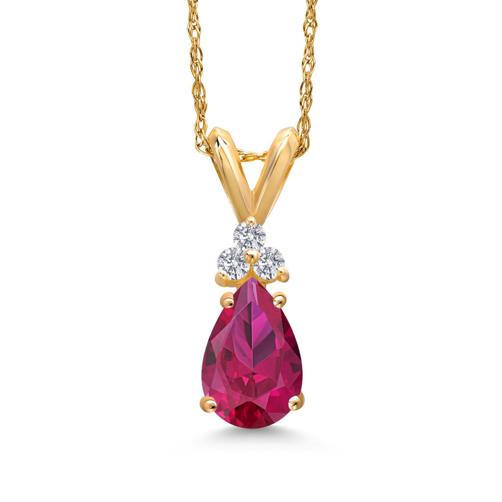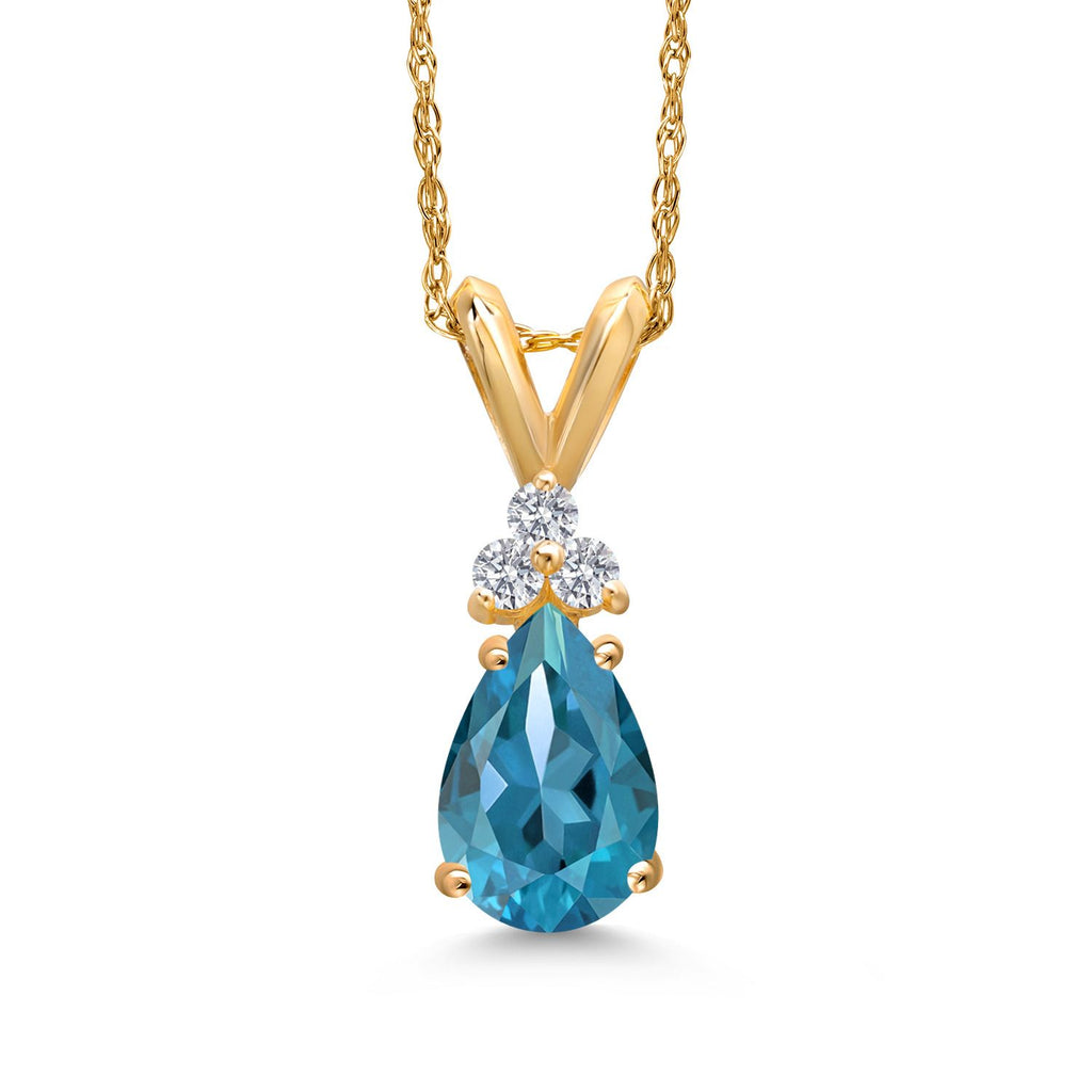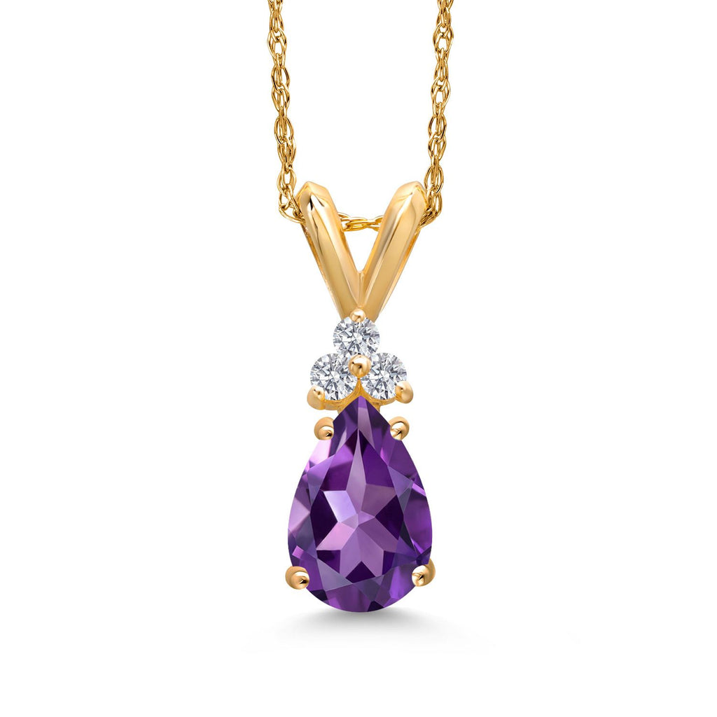 14K Yellow Gold 8X5MM Pear Shape Gemstone Birthstone and White Lab Grown Diamond Teardrop Pendant Necklace | Gold Necklace for Women | 18 Inch Gold Chain