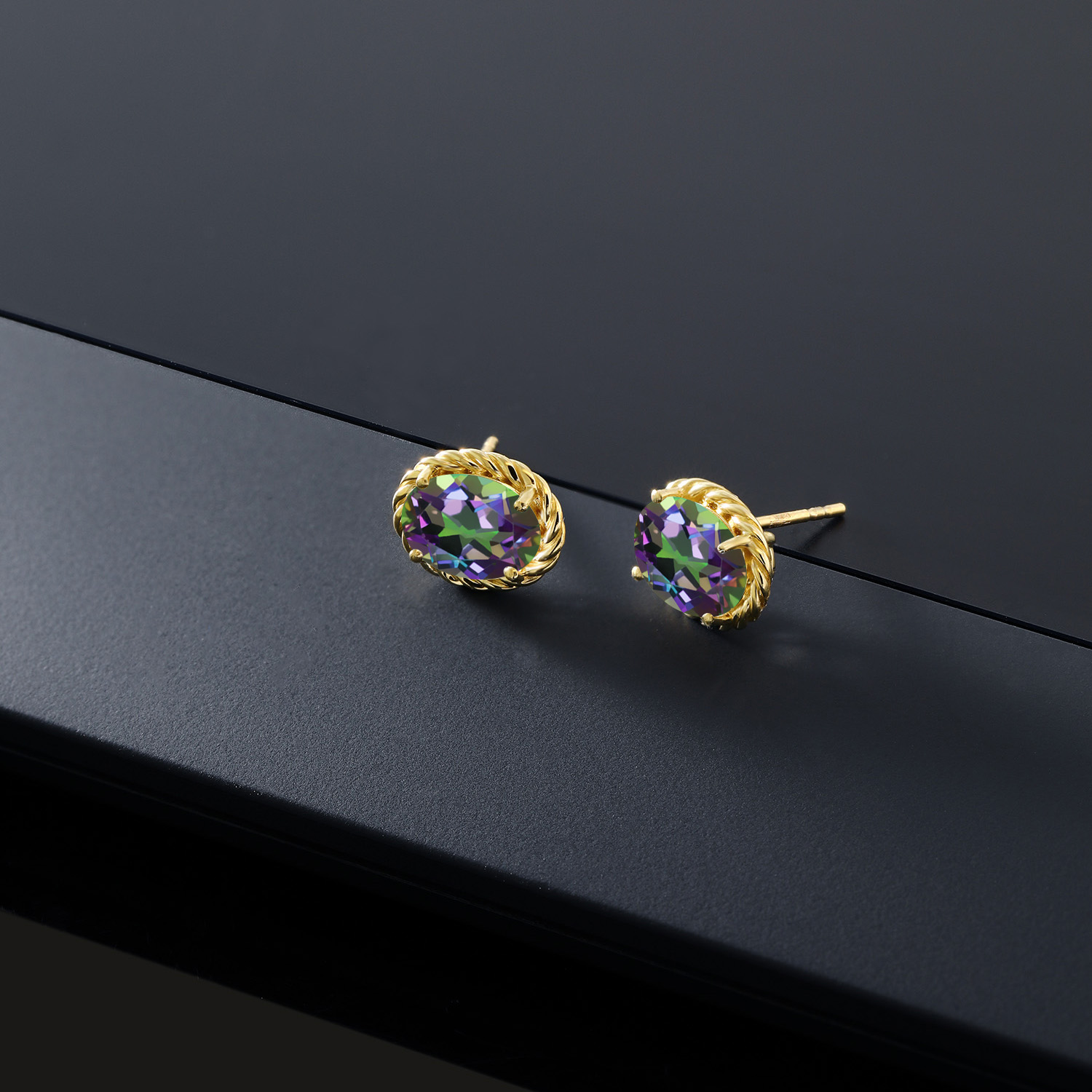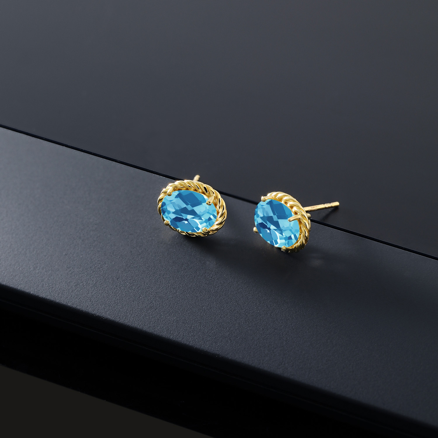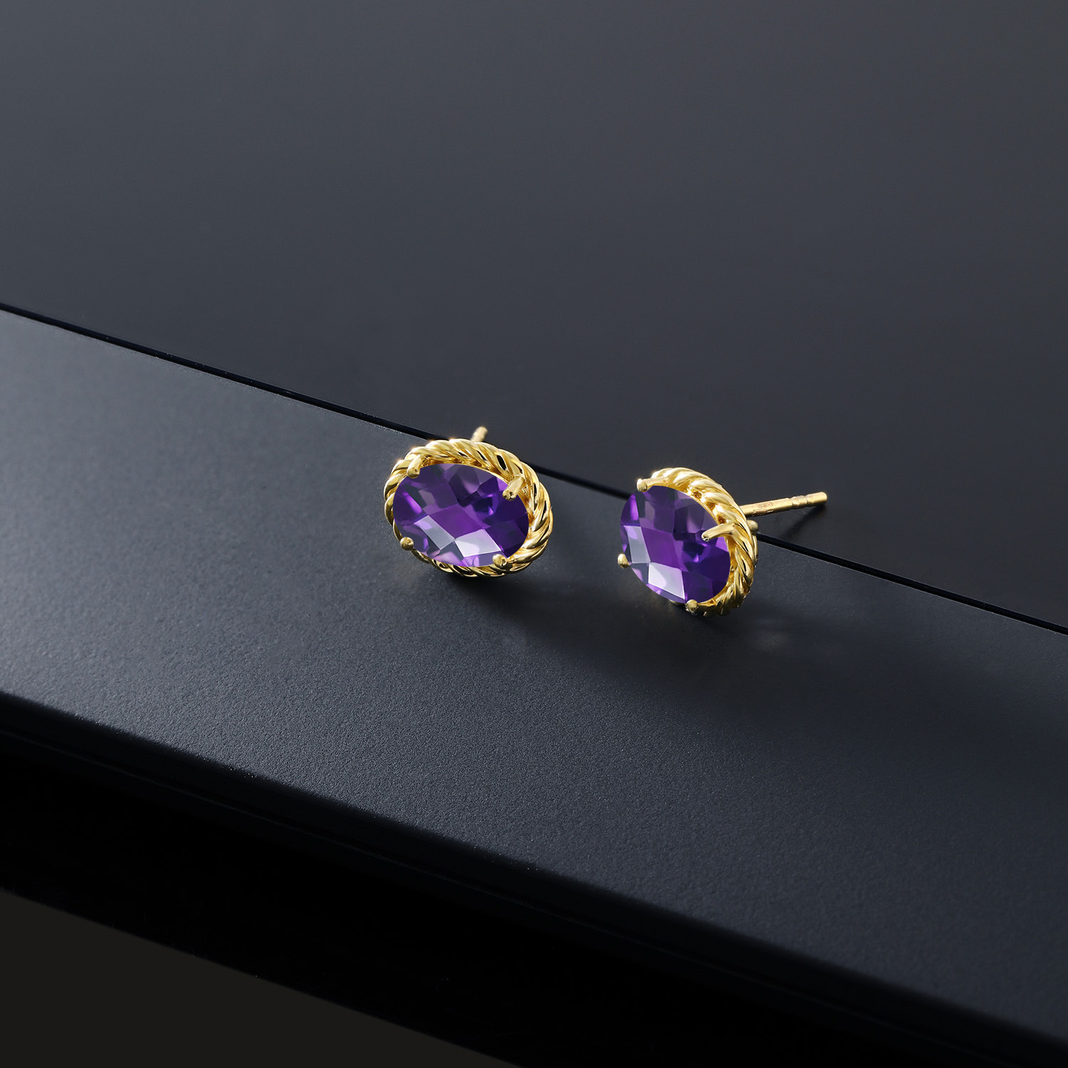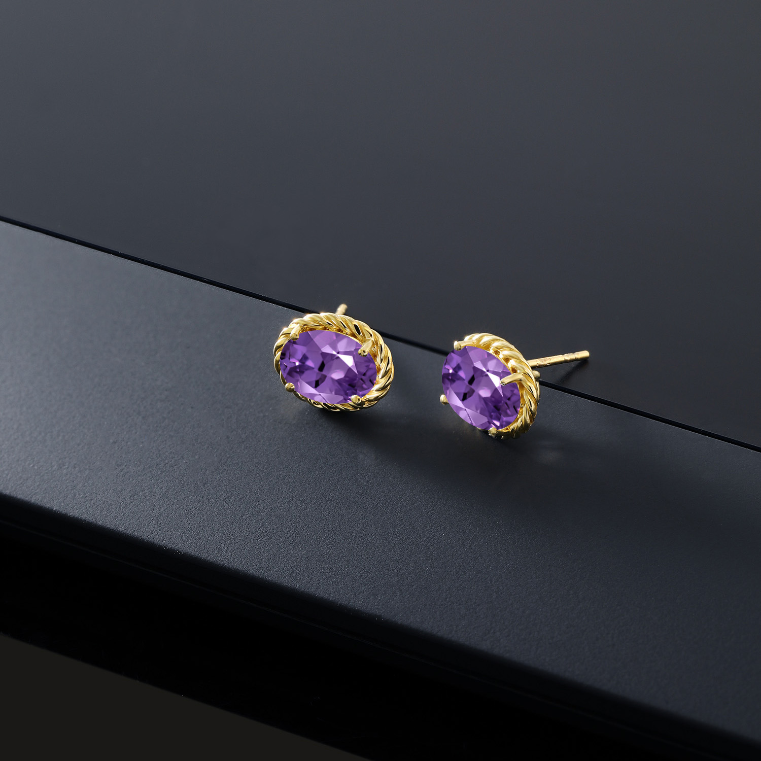 14K Yellow Gold 8X6MM Oval Gemstone Birthstone Earrings | Yellow Gold Earrings For Women Men
