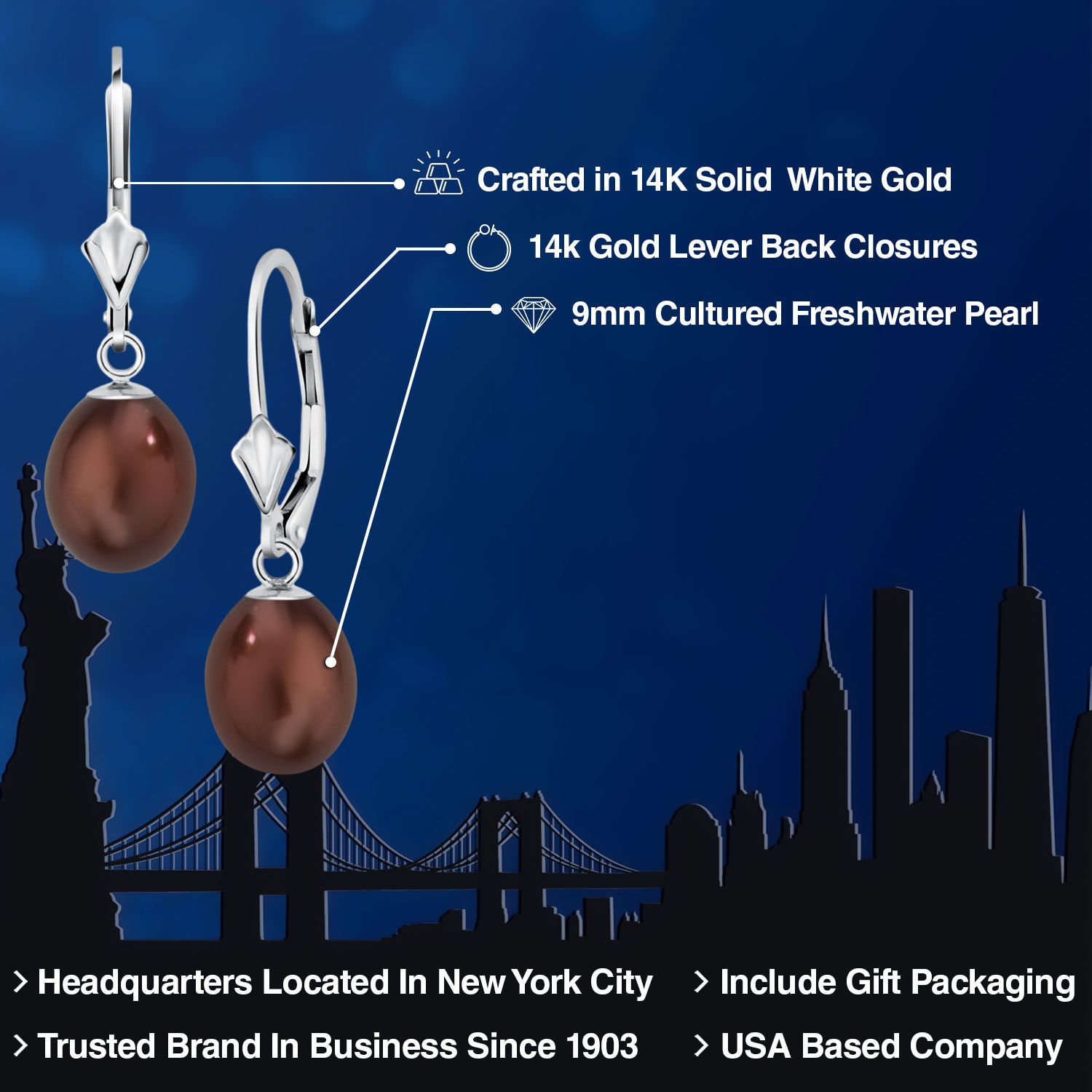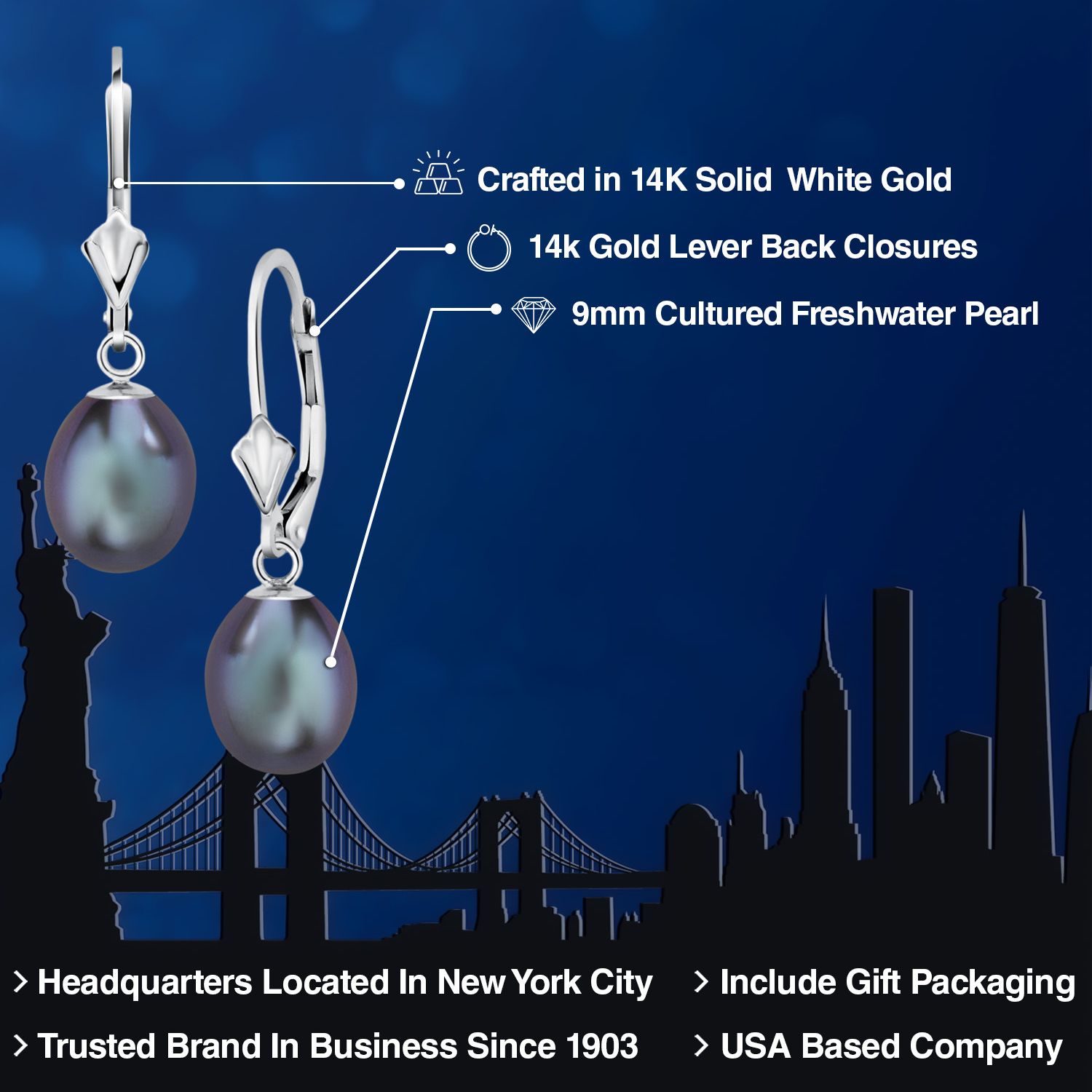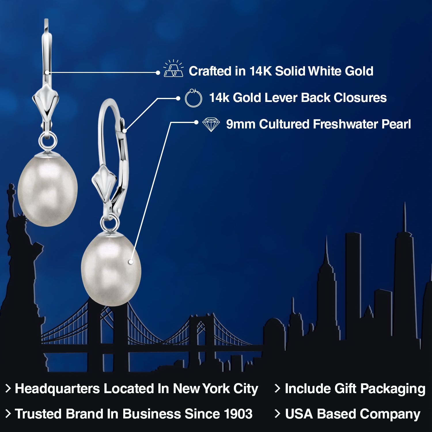 TIMELESS ELEGANCE WITH CULTURED FRESHWATER PEARLS: Embrace timeless elegance with these dangle earrings featuring lustrous 9mm cultured freshwater pearls. The classic and sophisticated design adds a touch of refinement to any ensemble.