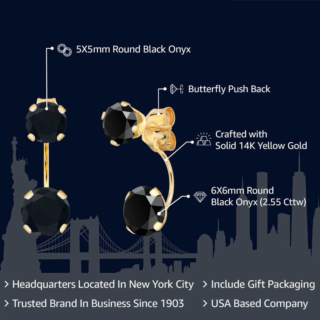 DUAL DROP DESIGN WITH BLACK ONYX BRILLIANCE: Make a bold statement with the dual drop design featuring two stunning black onyx gemstones. The round 6mm and 5mm stones are meticulously selected for their deep, rich color and impeccable clarity, creating a captivating contrast.
