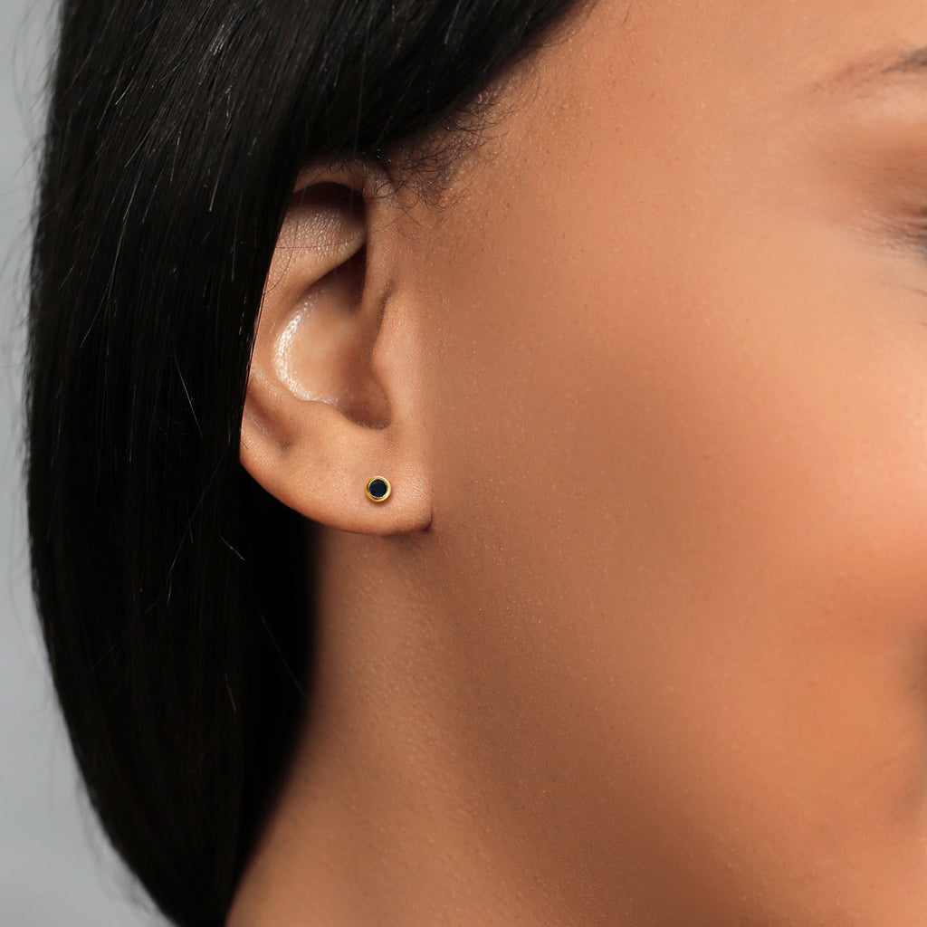 - Exquisite Black Onyx Stud Earrings: These stunning earrings feature captivating 4MM round-cut black onyx gemstones, elegantly set in 14K yellow gold, creating a classic and versatile design suitable for any occasion.