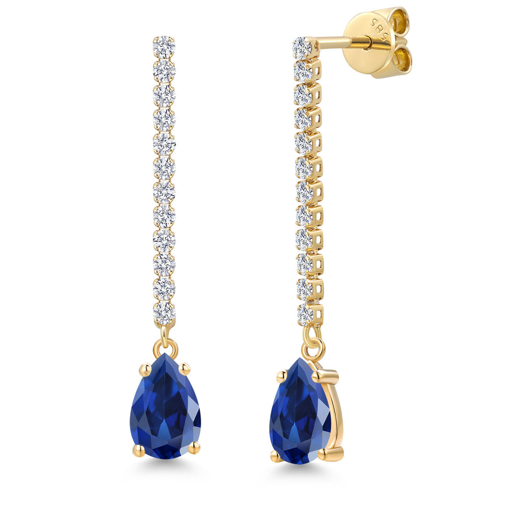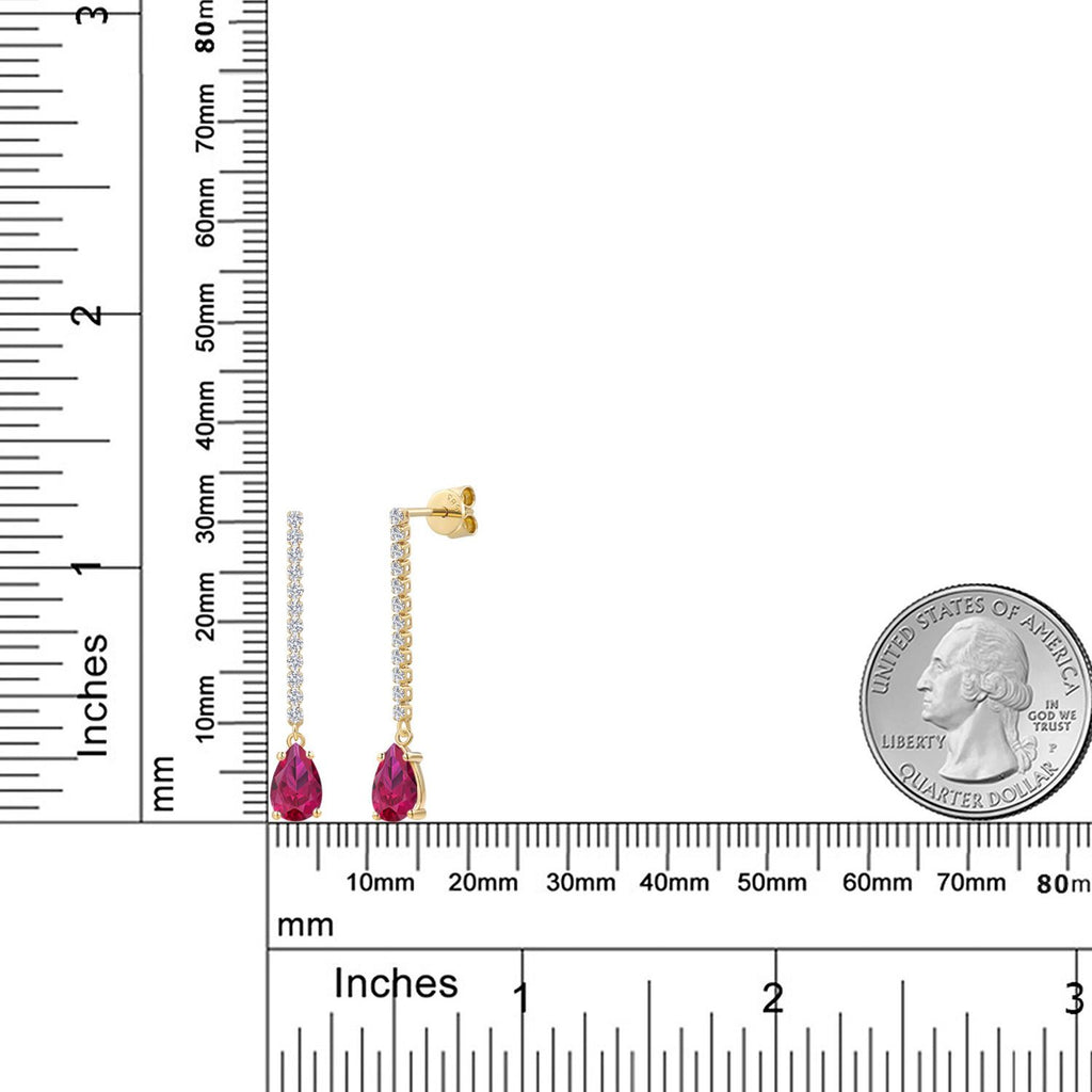 14K Yellow Gold Gemstone Birthstone and White Lab Grown Diamond Long Liner Dangle Earrings for Women | Pear Shape 8X5MM | Yellow Gold Chain Drop Earrings