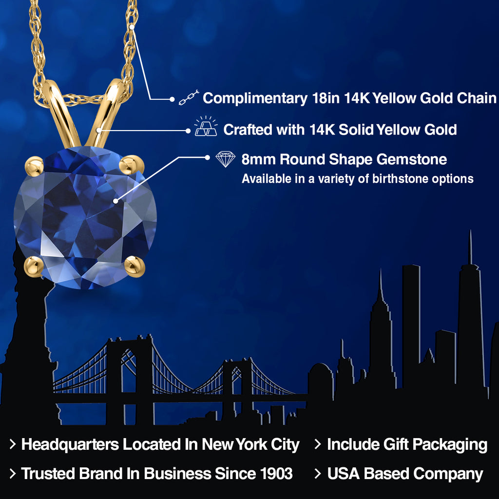 MEASUREMENTS: 8x8mm Round Heat-Treated Blue Created Sapphire. Total Carat Weight is 2.5 cttw