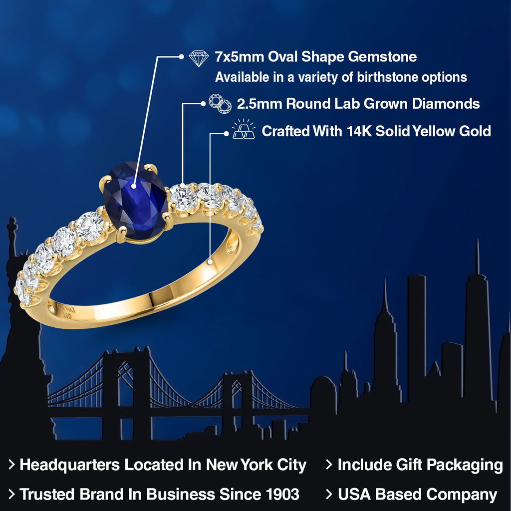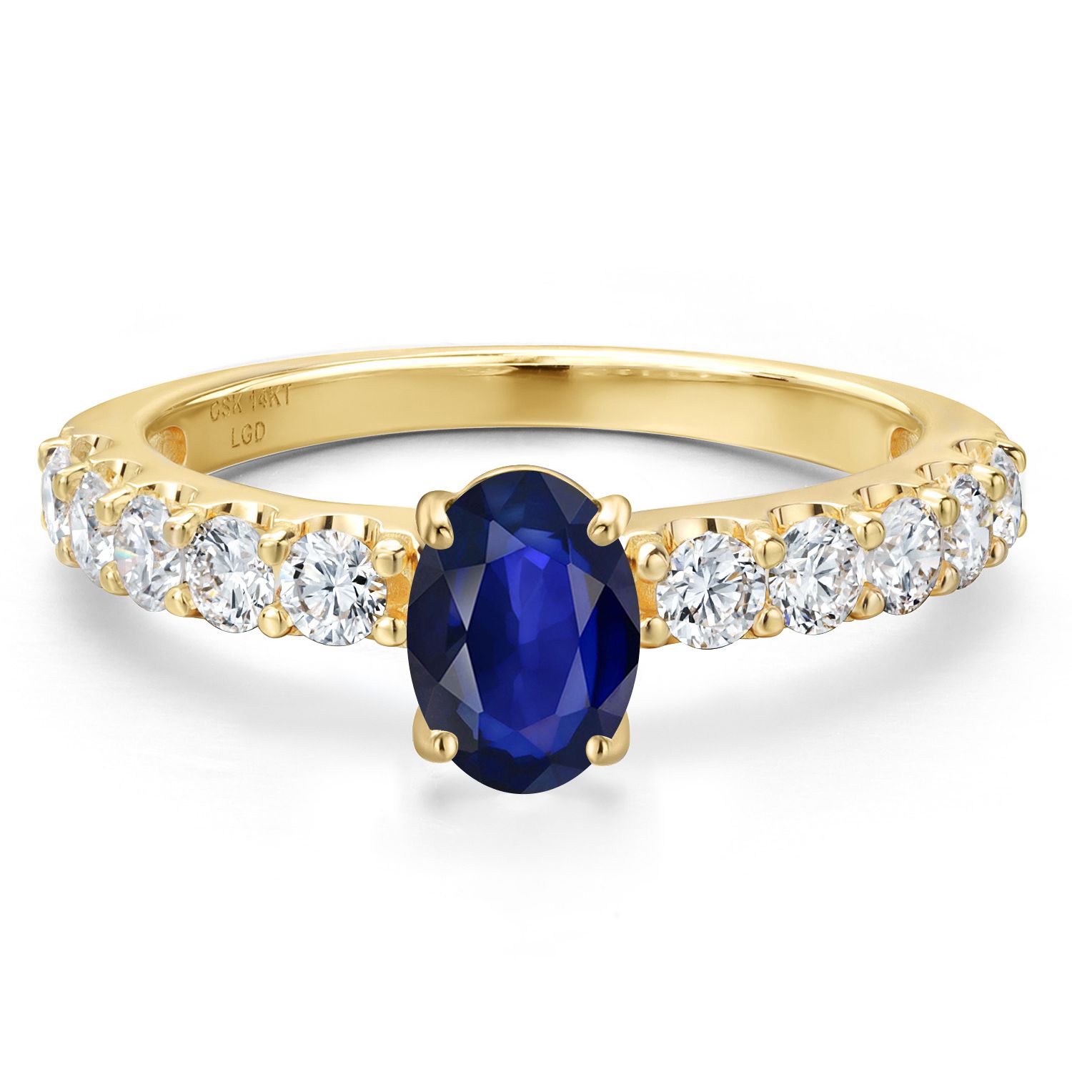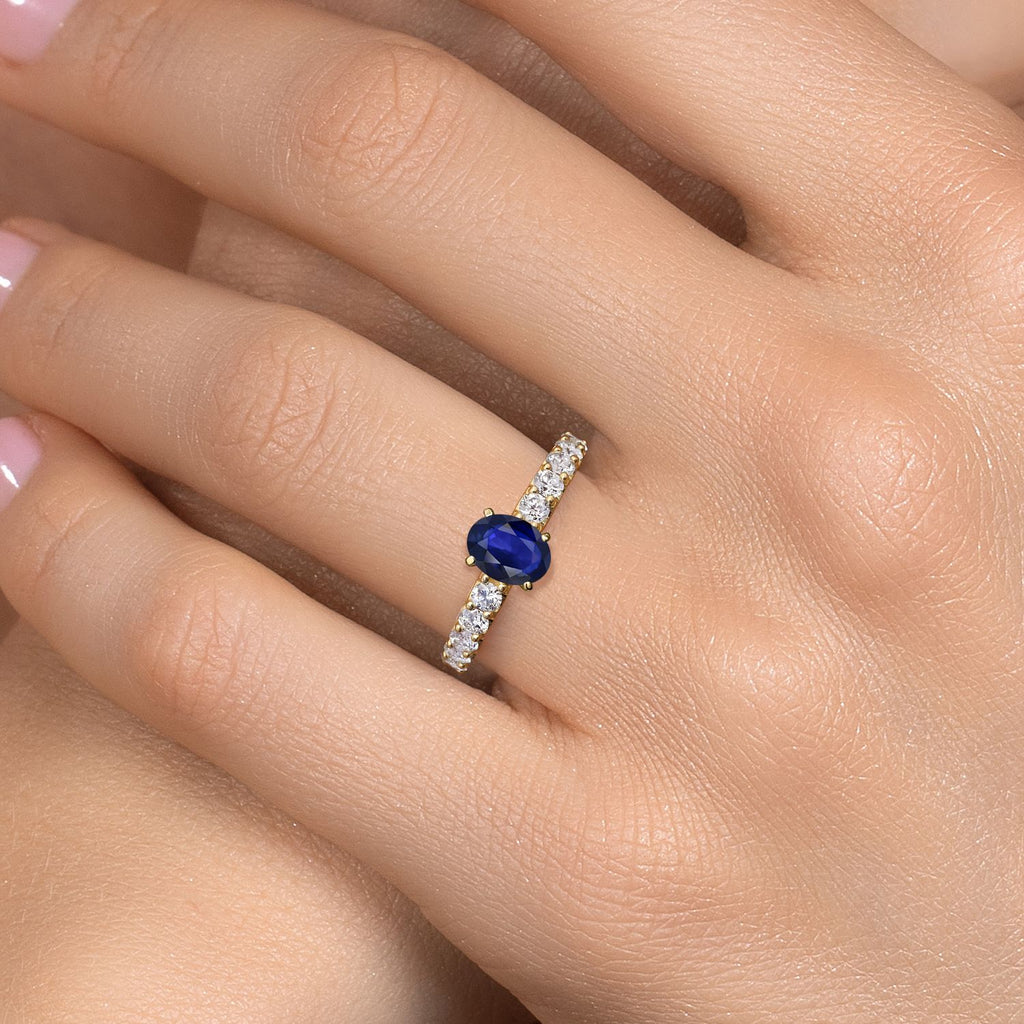 MEASUREMENTS: 7x5mm Oval Diffused Blue Sapphire, 2.5x2.5mm Round E - F Lab Grown Diamond. Total Carat Weight is 1.22 cttw