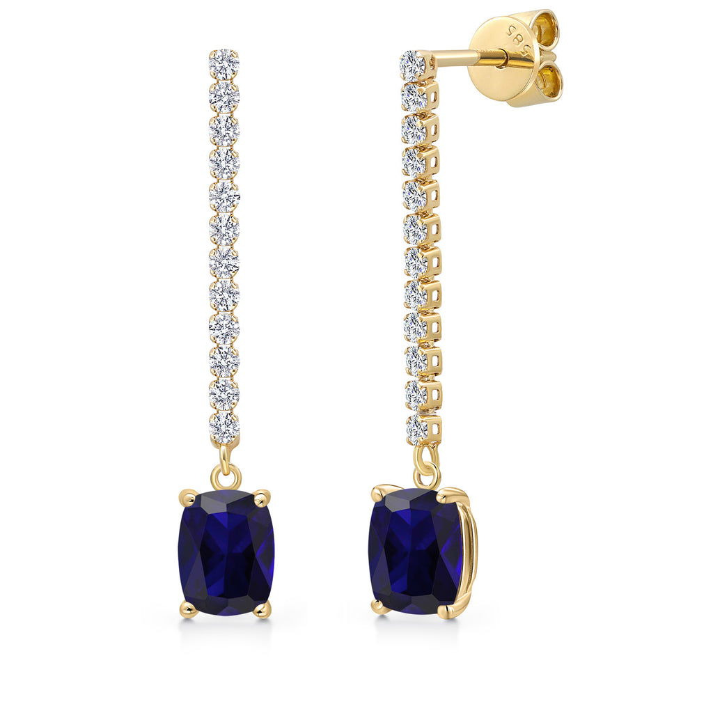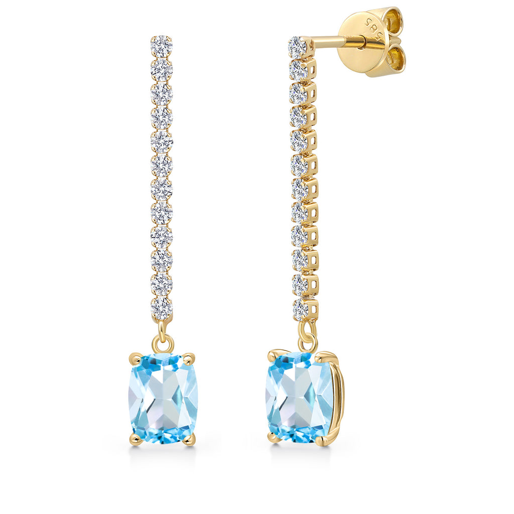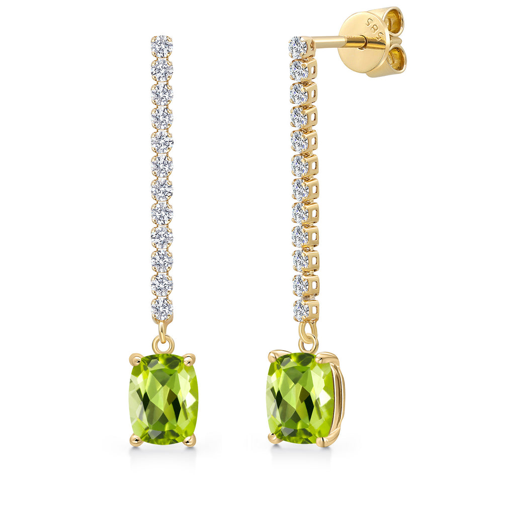 14K Yellow Gold Cushion Cut Gemstone Birthstone and White Lab Grown Diamond Long Liner Dangle Earrings for Women | Cushion 7X5MM | Round 1.5MM | Yellow Gold Chain Drop Earrings