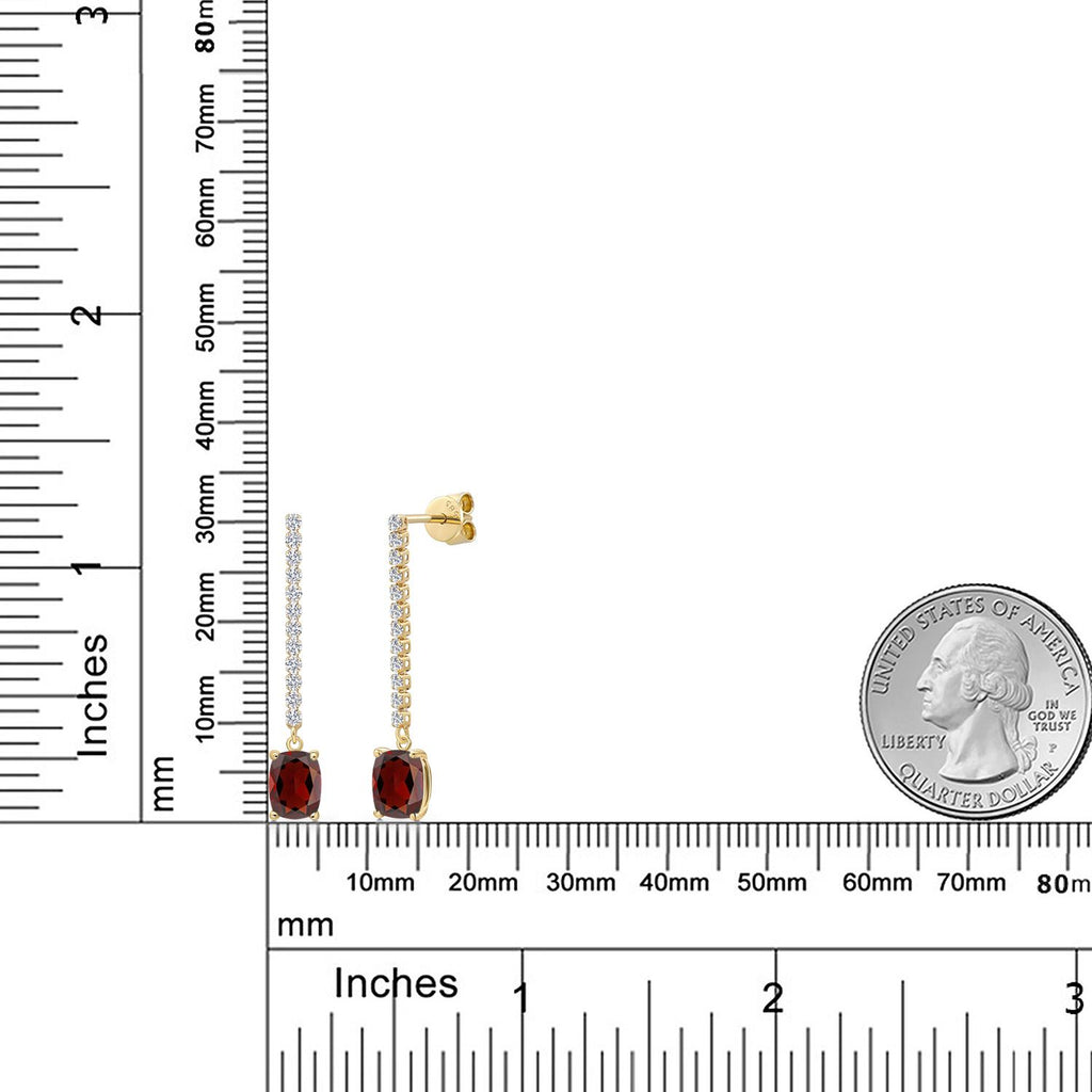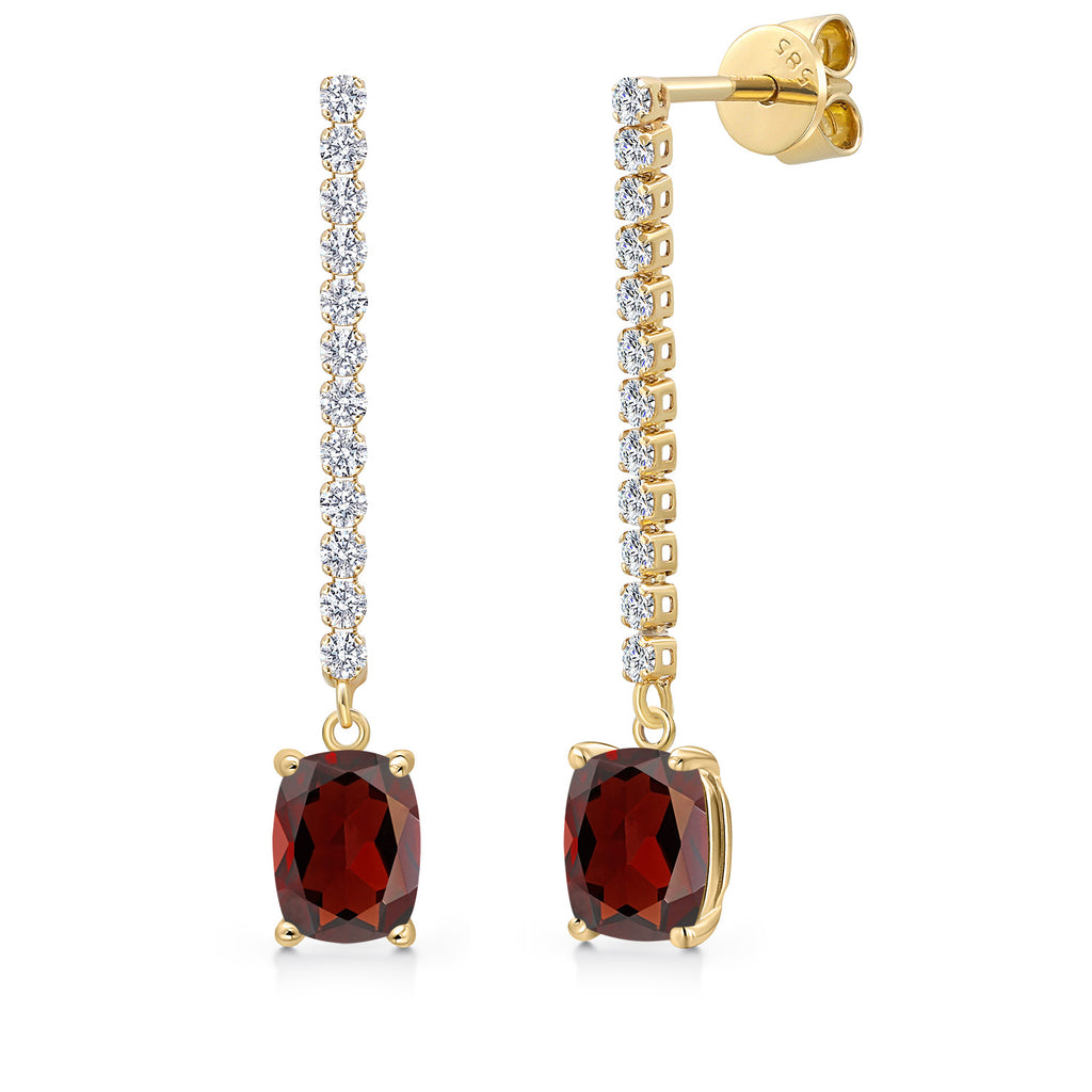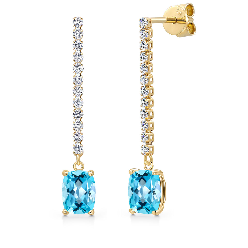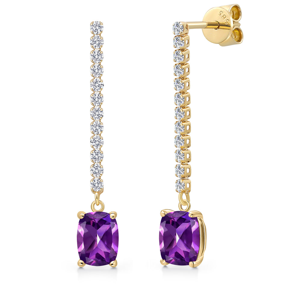14K Yellow Gold Cushion Cut Gemstone Birthstone and White Lab Grown Diamond Long Liner Dangle Earrings for Women | Cushion 7X5MM | Round 1.5MM | Yellow Gold Chain Drop Earrings