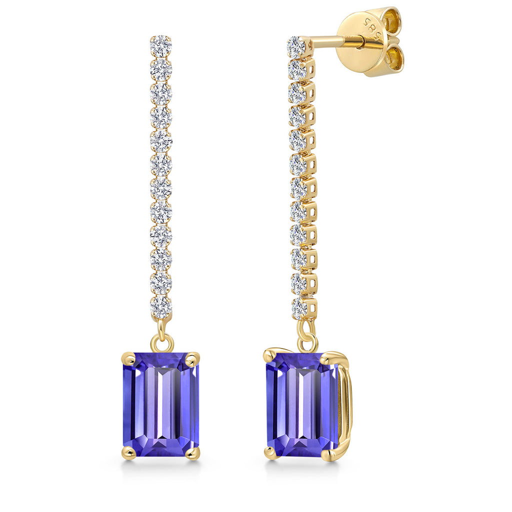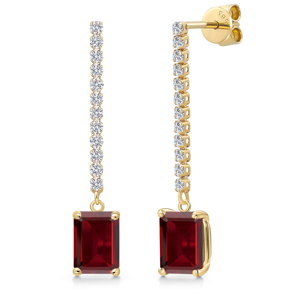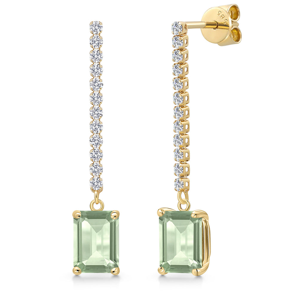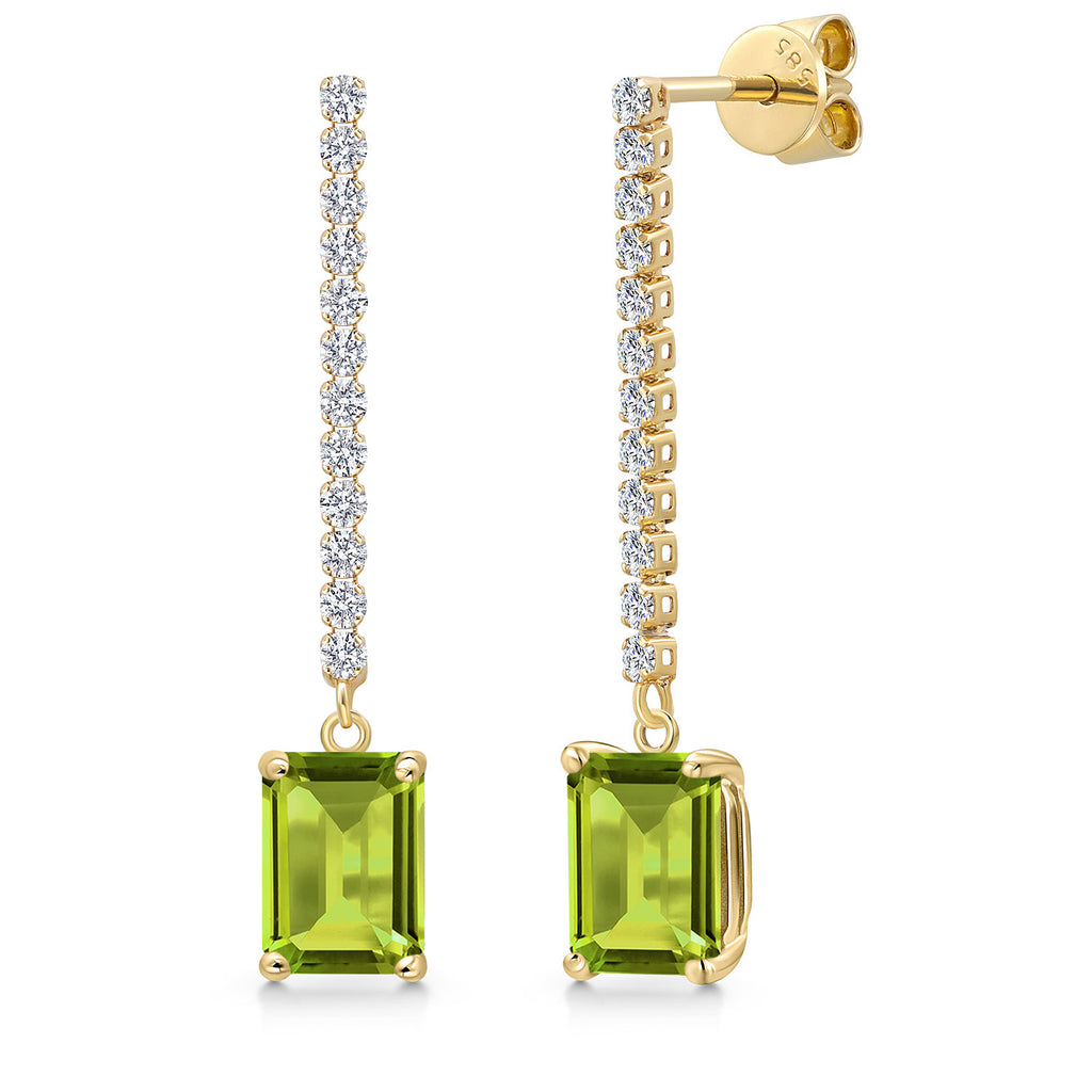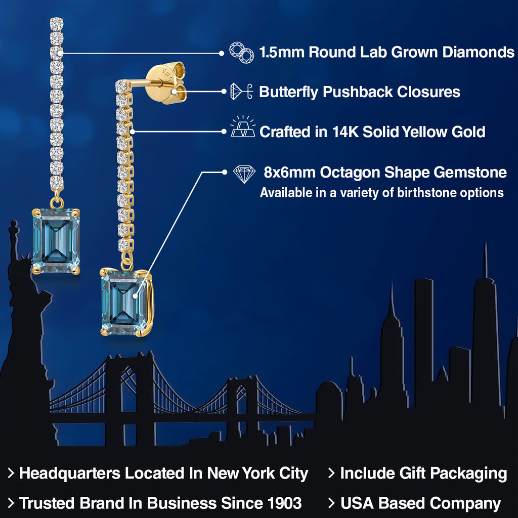 14K Yellow Gold Emerald Cut 8X6MM Gemstone Birthstone and White Lab Grown Diamond Dangle Earrings for Women | Fine Jewelry Gifts for Her Mom Women Wife