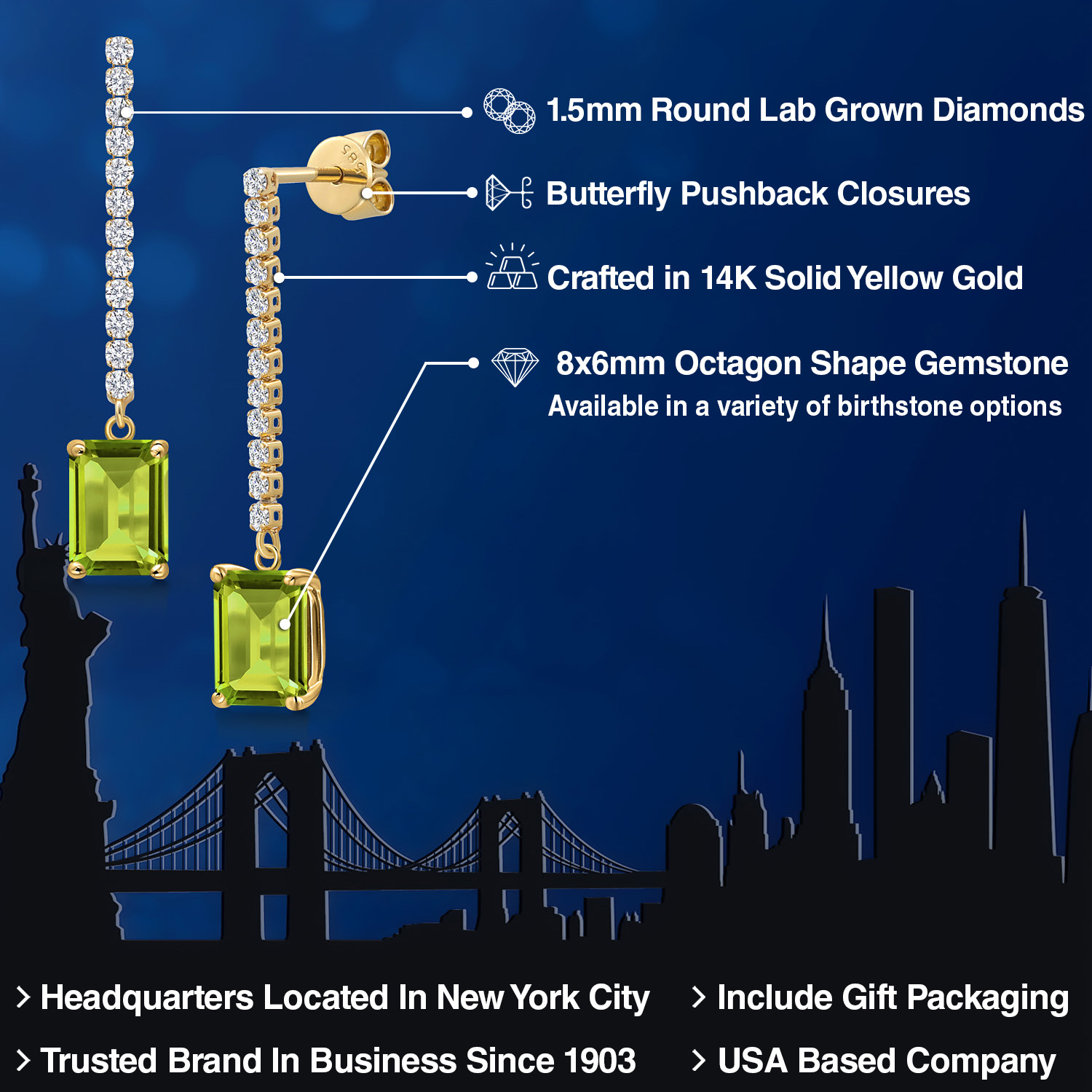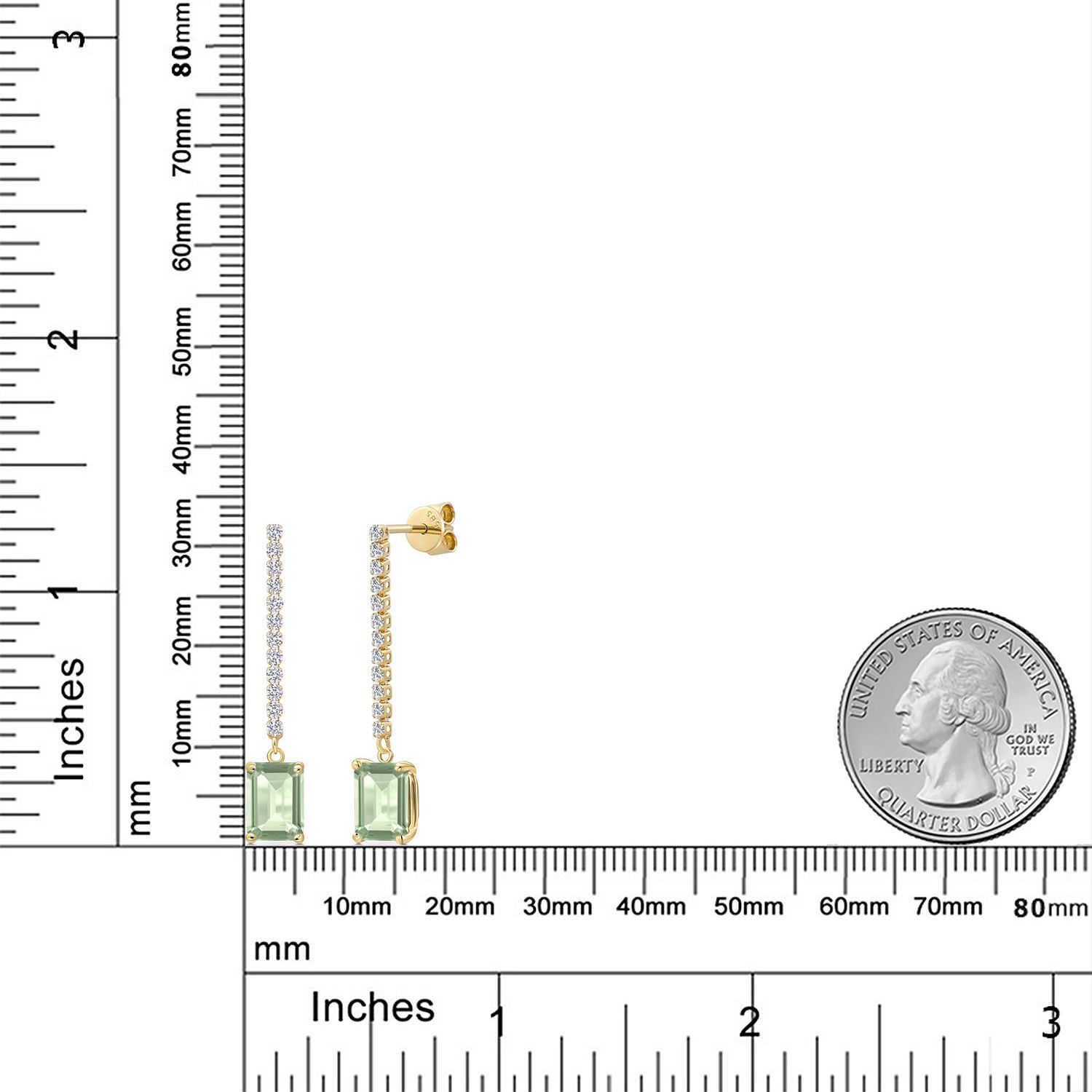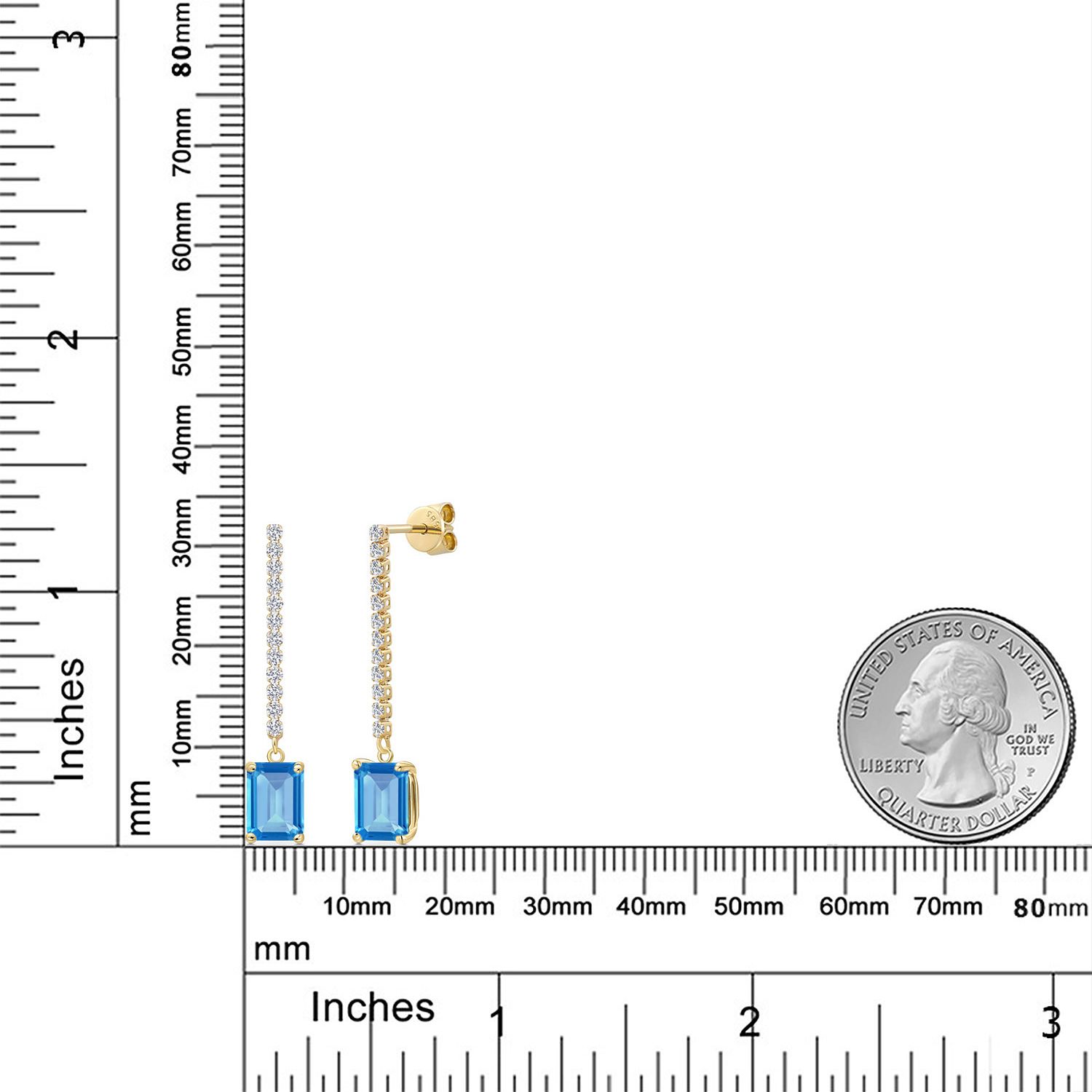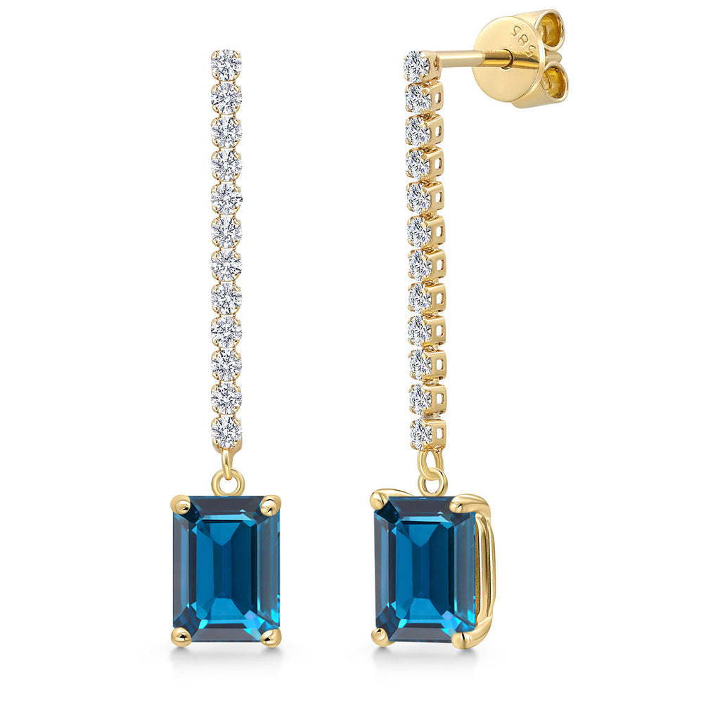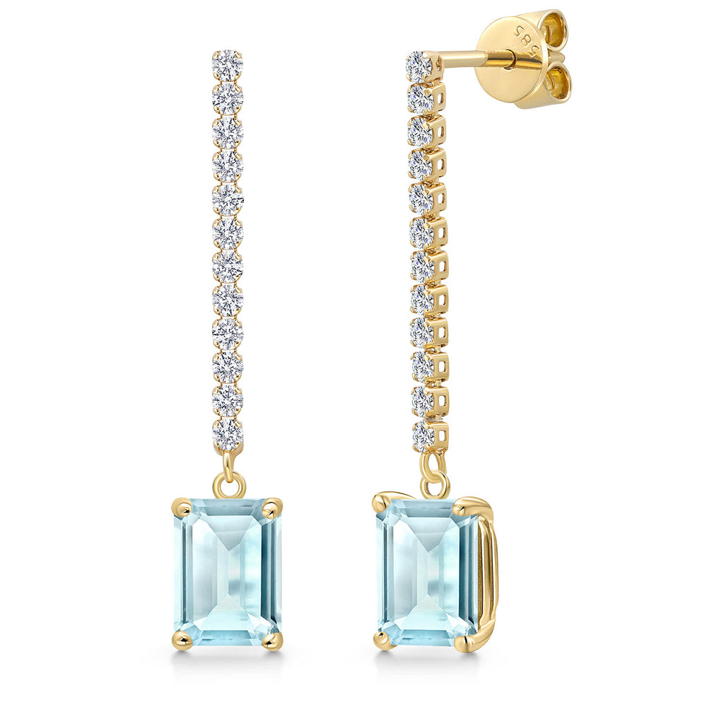 14K Yellow Gold Emerald Cut 8X6MM Gemstone Birthstone and White Lab Grown Diamond Dangle Earrings for Women | Fine Jewelry Gifts for Her Mom Women Wife