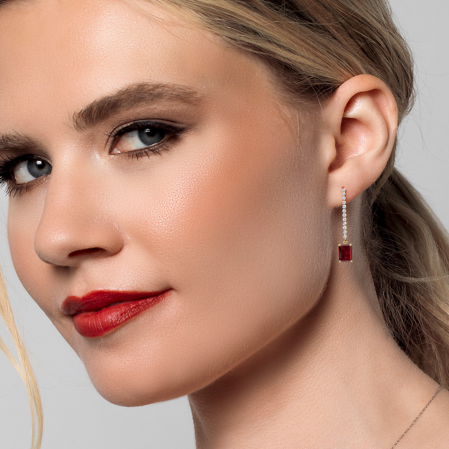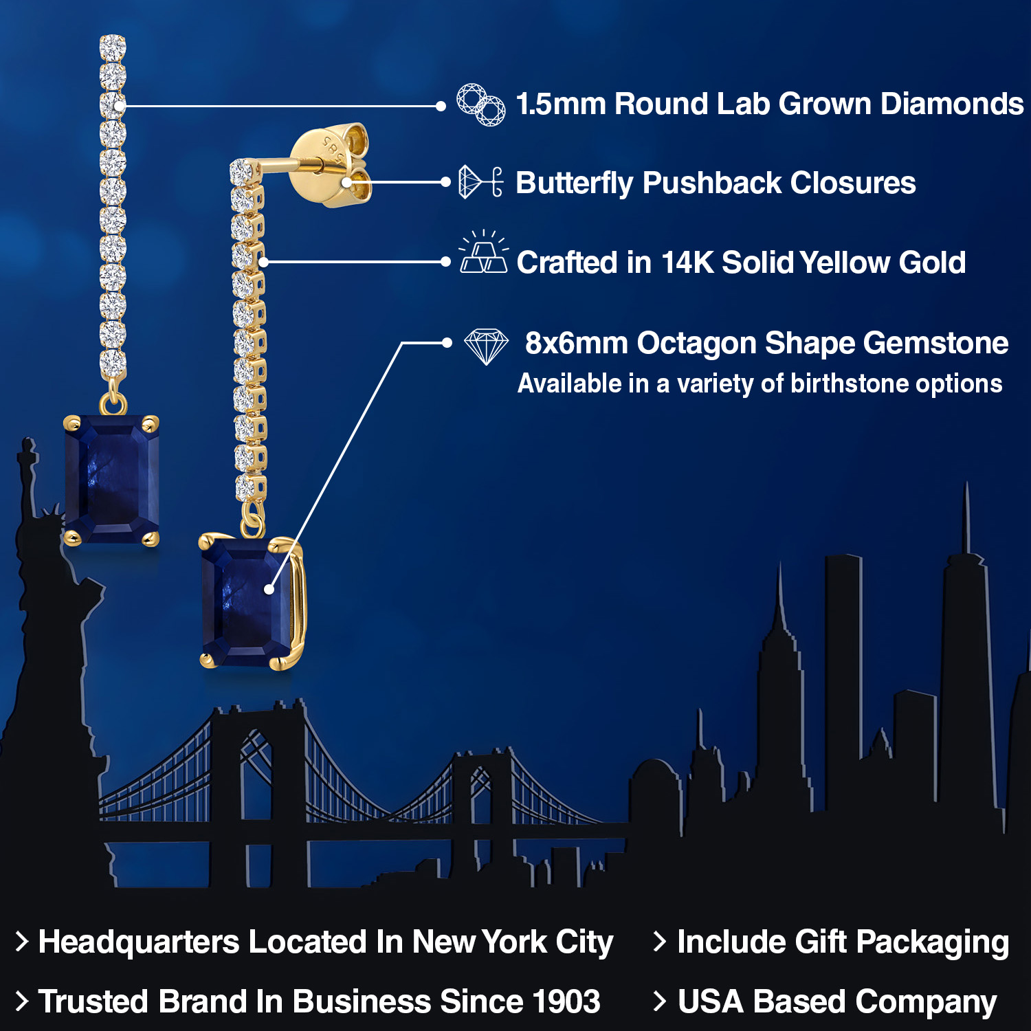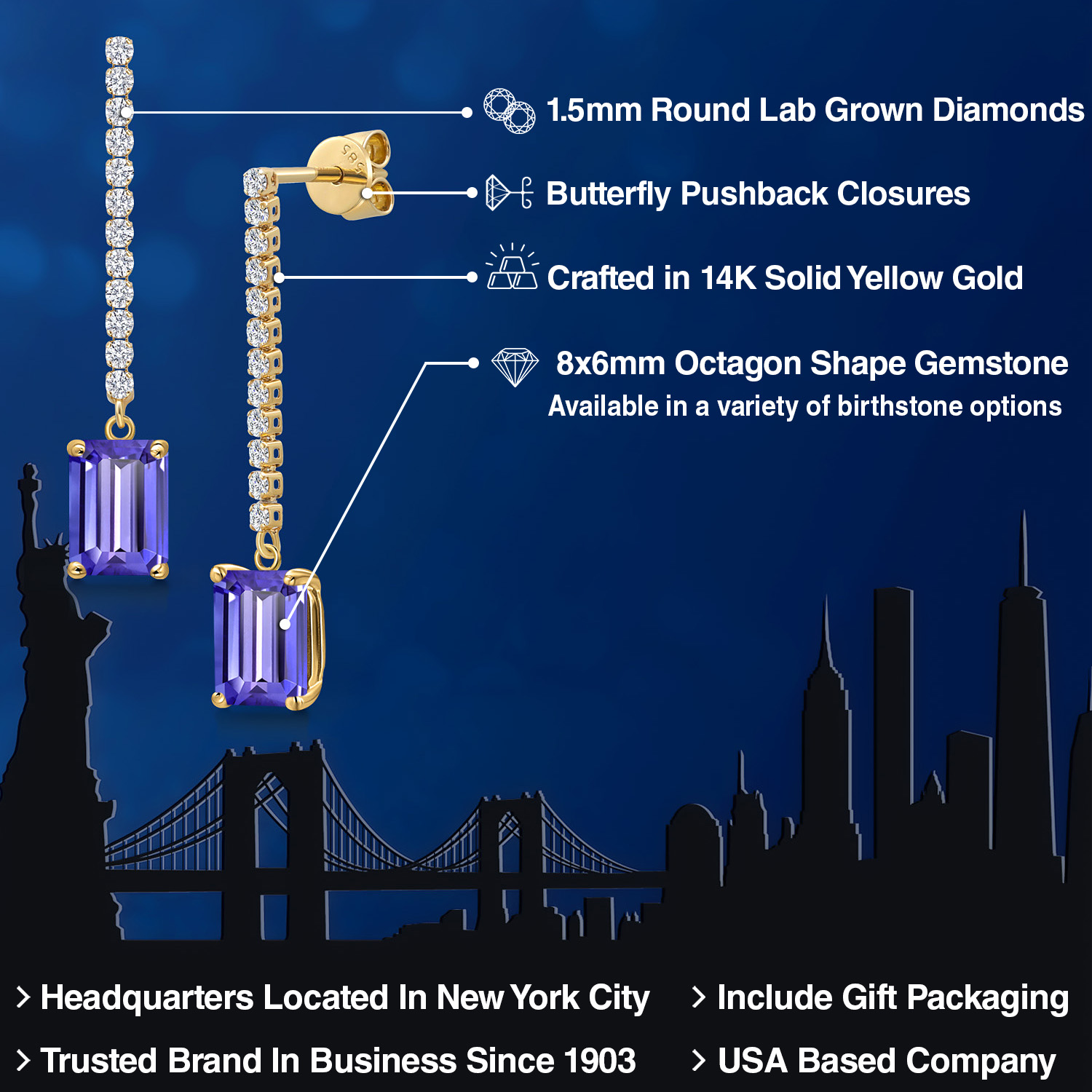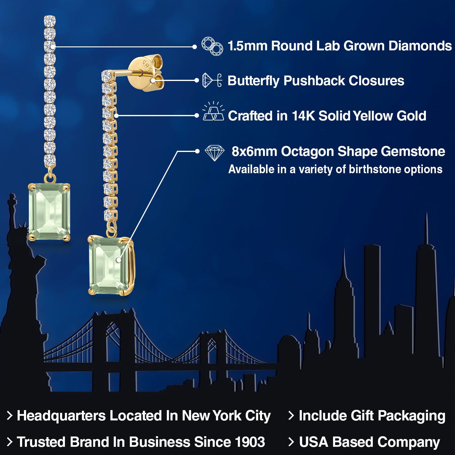LAB-GROWN DIAMOND ACCENTS: Complementing the central gemstone are sparkling lab-grown diamonds. These ethically sourced stones offer the same brilliance and clarity as mined diamonds. Their placement adds to the earring's allure, creating a dazzling frame that enhances the gemstone's color and brilliance. Expert craftsmanship ensures each stone is securely set, testifying to the earrings' exceptional quality.