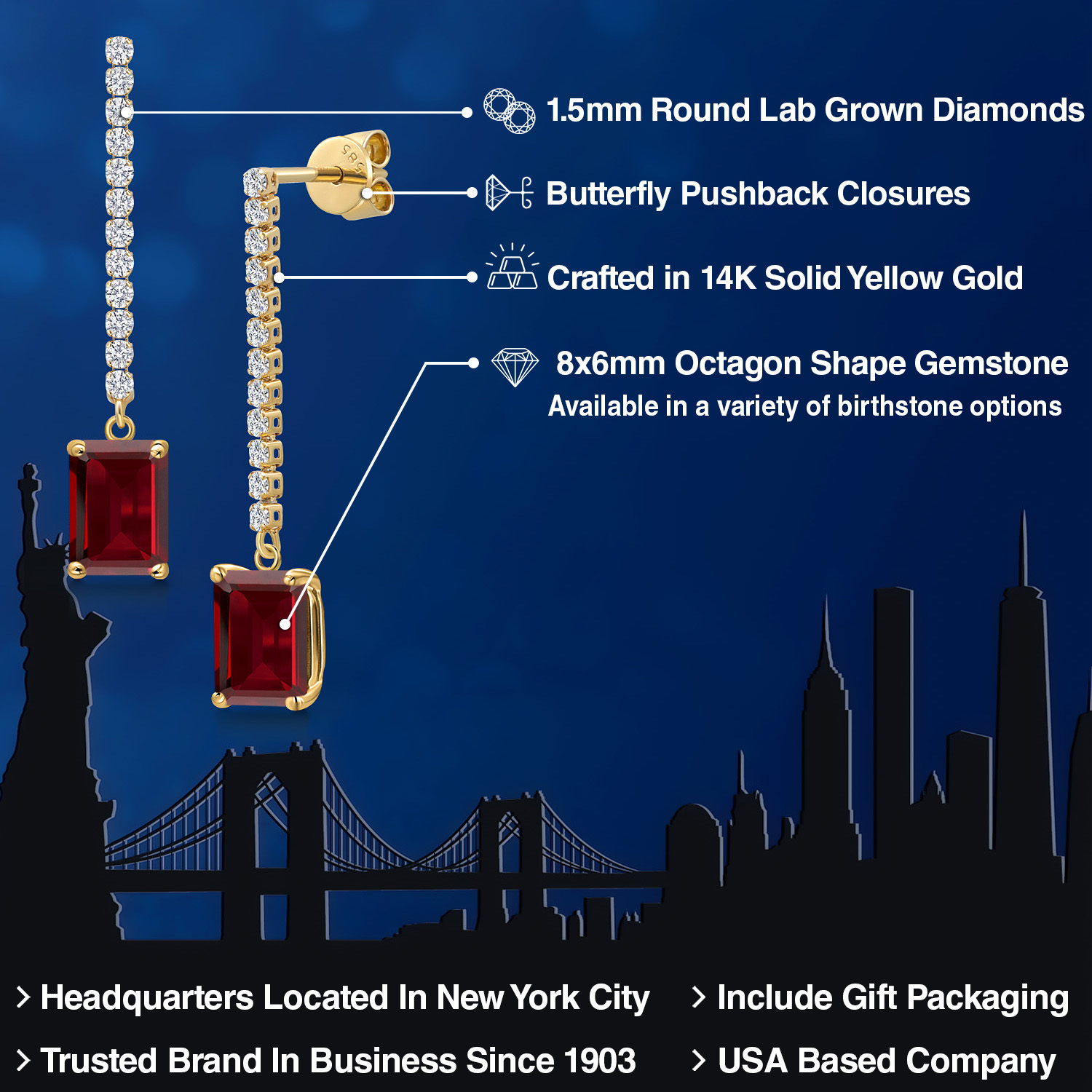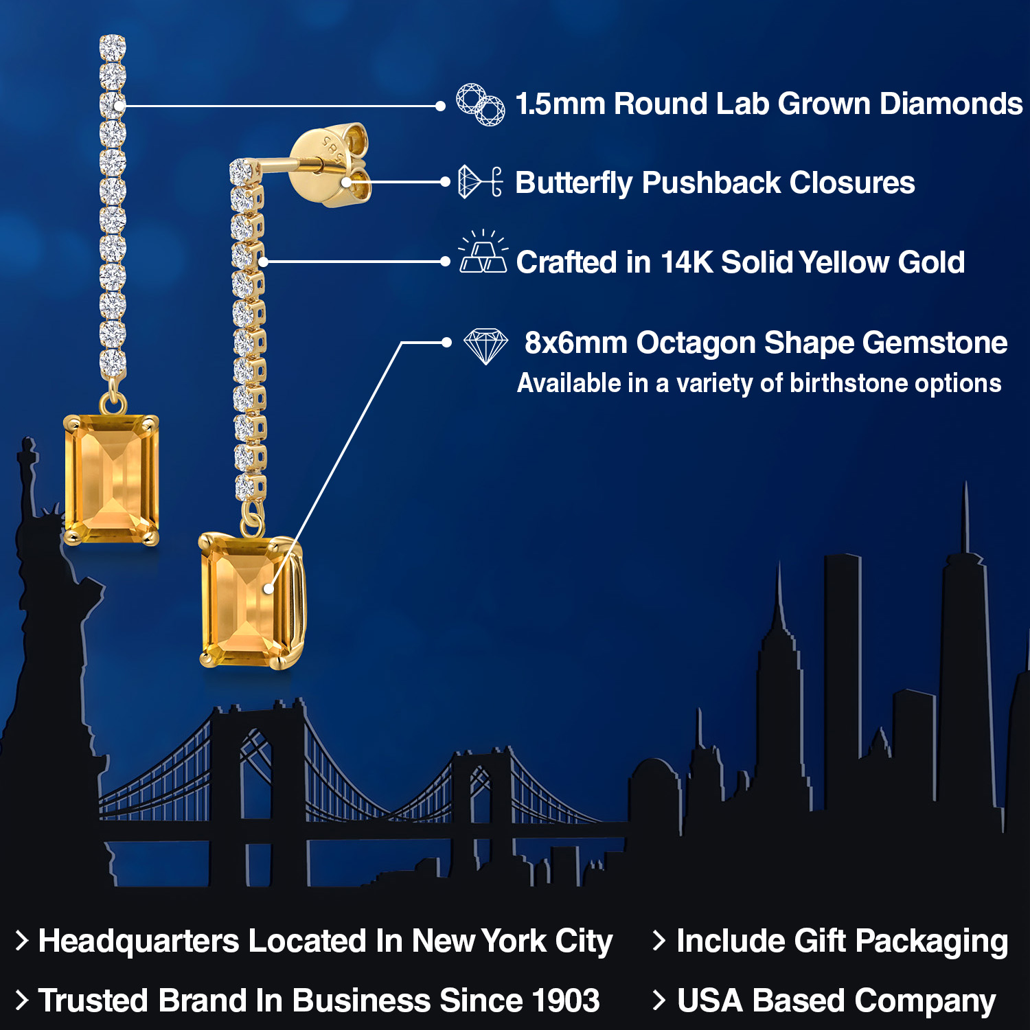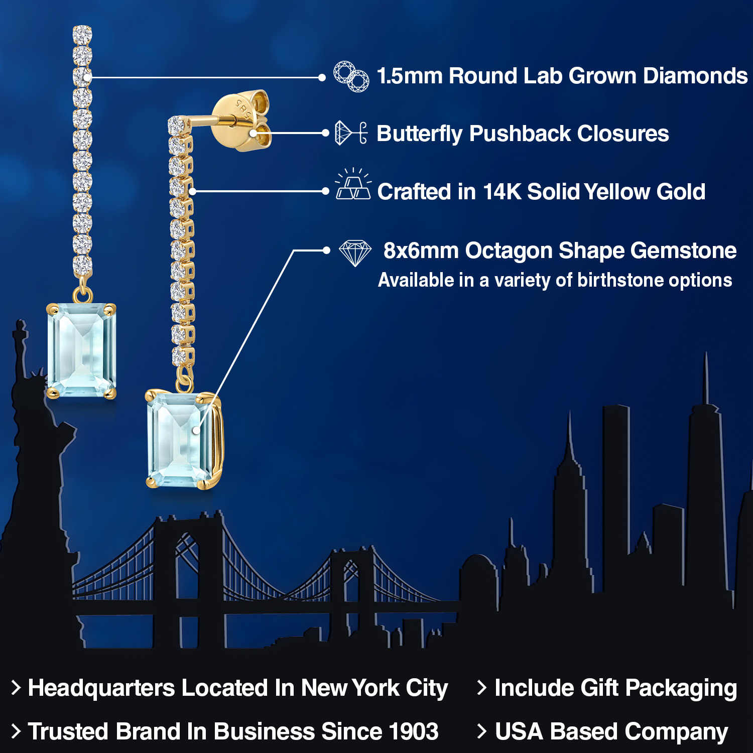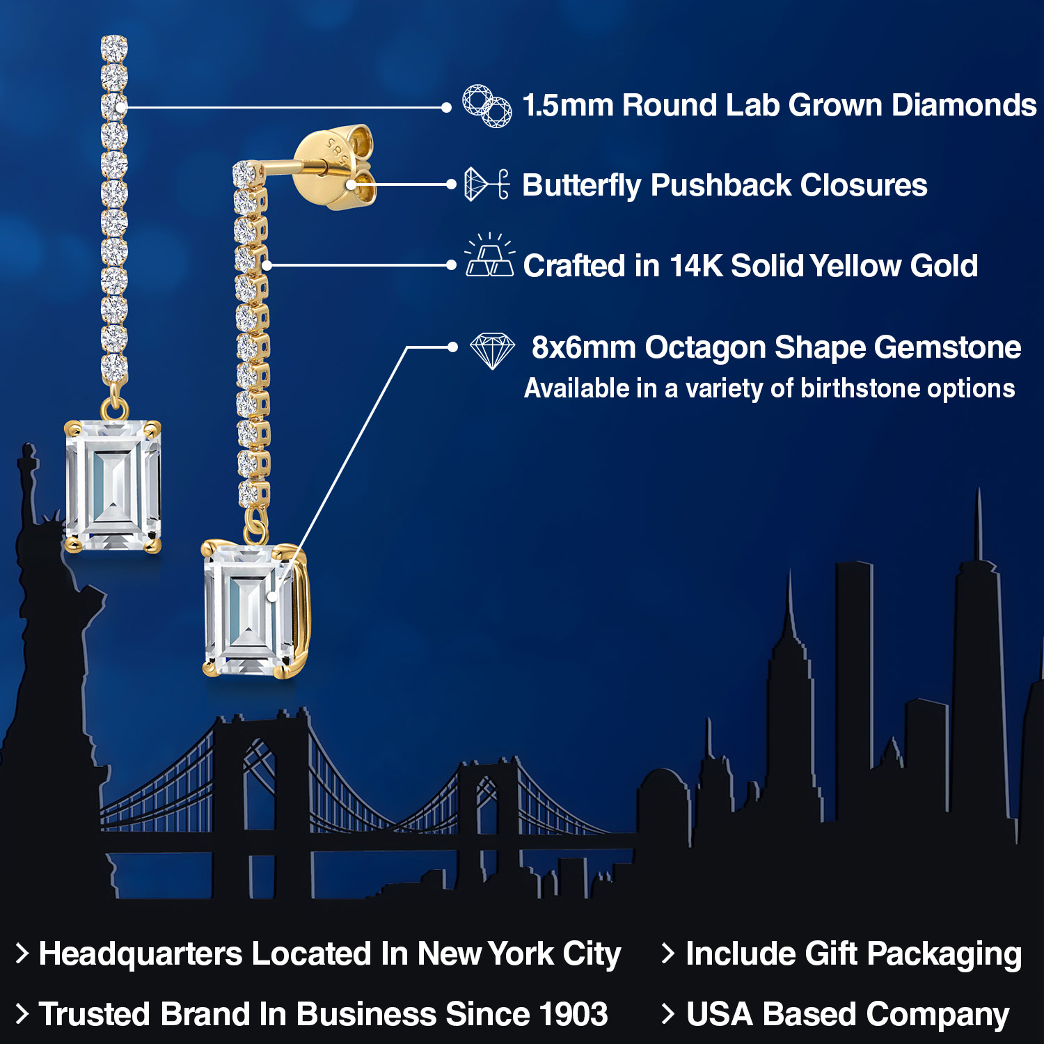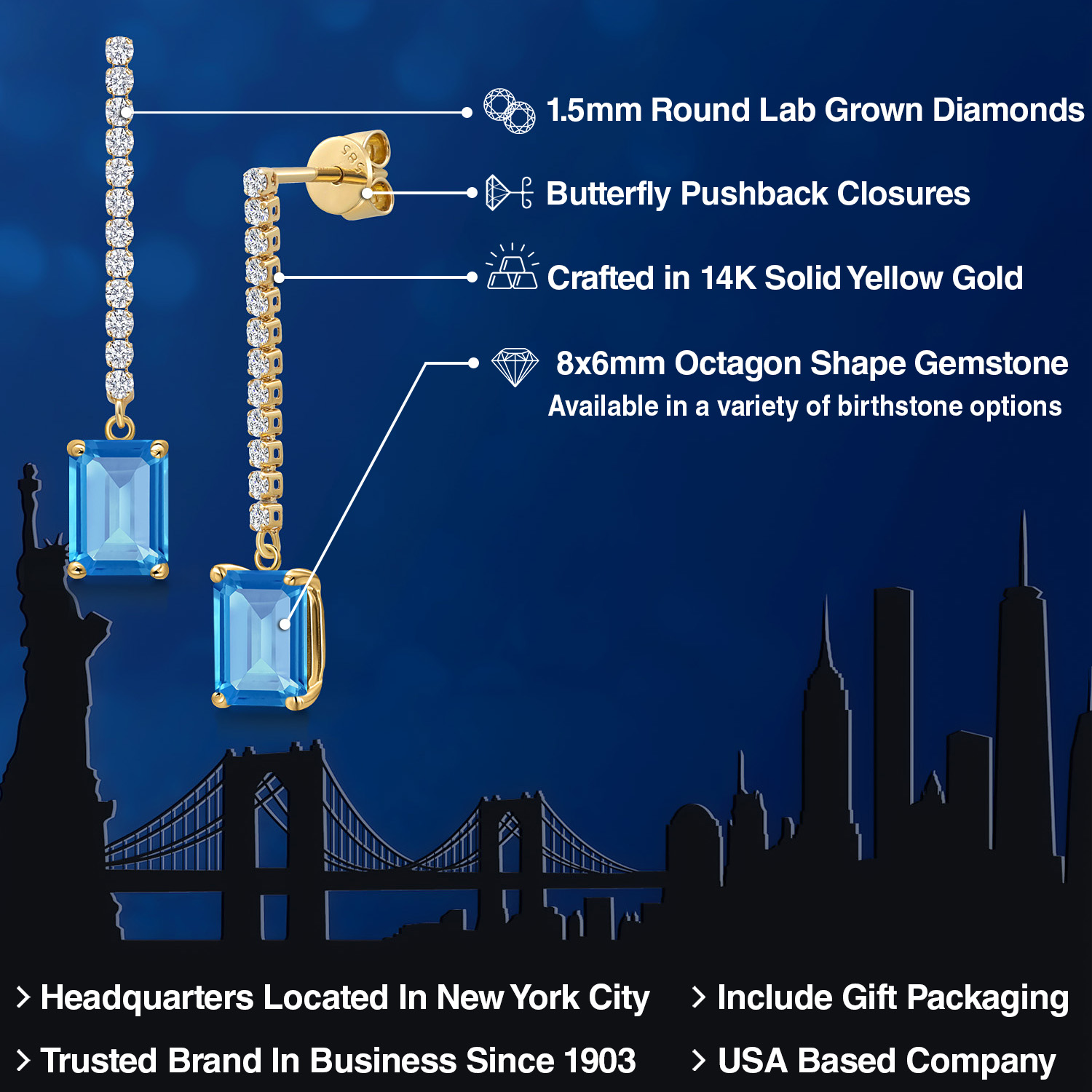 LUXURIOUS 8X6MM OCTAGON GEMSTONE: Elevate your style with these stunning 14K Yellow Gold earrings, showcasing an impressive 8x6MM gemstone. The octagon cut, a shape combining the elegance of the emerald cut with the brilliance of the round cut, adds a unique touch. Moreover, we offer a choice of birthstones, allowing you to personalize your piece with a meaningful gem.