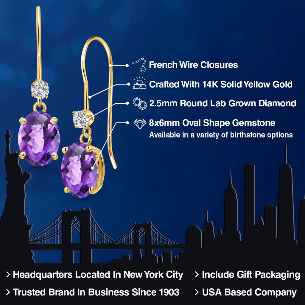 ELEGANT DESIGN WITH DIAMOND ACCENT: Featuring a 2.5mm round lab-grown diamond accent, these earrings showcase a harmonious design. The diamond's brilliant sparkle complements the main gemstone, creating a sophisticated aesthetic that enhances the earrings' overall allure.