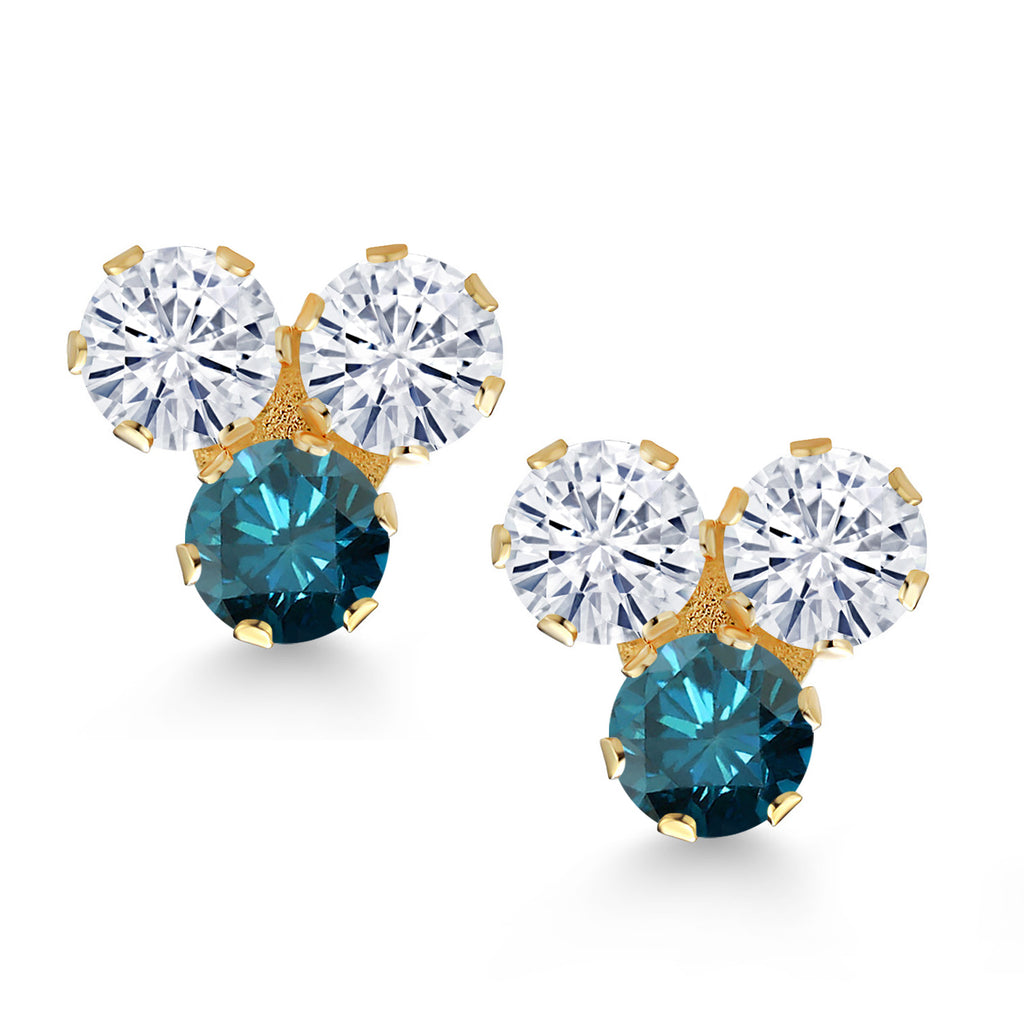 TRIO 3-STONE CLUSTER DESIGN: The intricate craftsmanship of these earrings is evident in their trio 3-stone cluster design, where two matching birthstones flank the radiant blue diamond. This artistic arrangement symbolizes past, present, and future, making it a perfect token of love and commitment. Each stone is securely set, showcasing the jeweler's skill and attention to detail, ensuring a piece that is as robust as it is beautiful.
