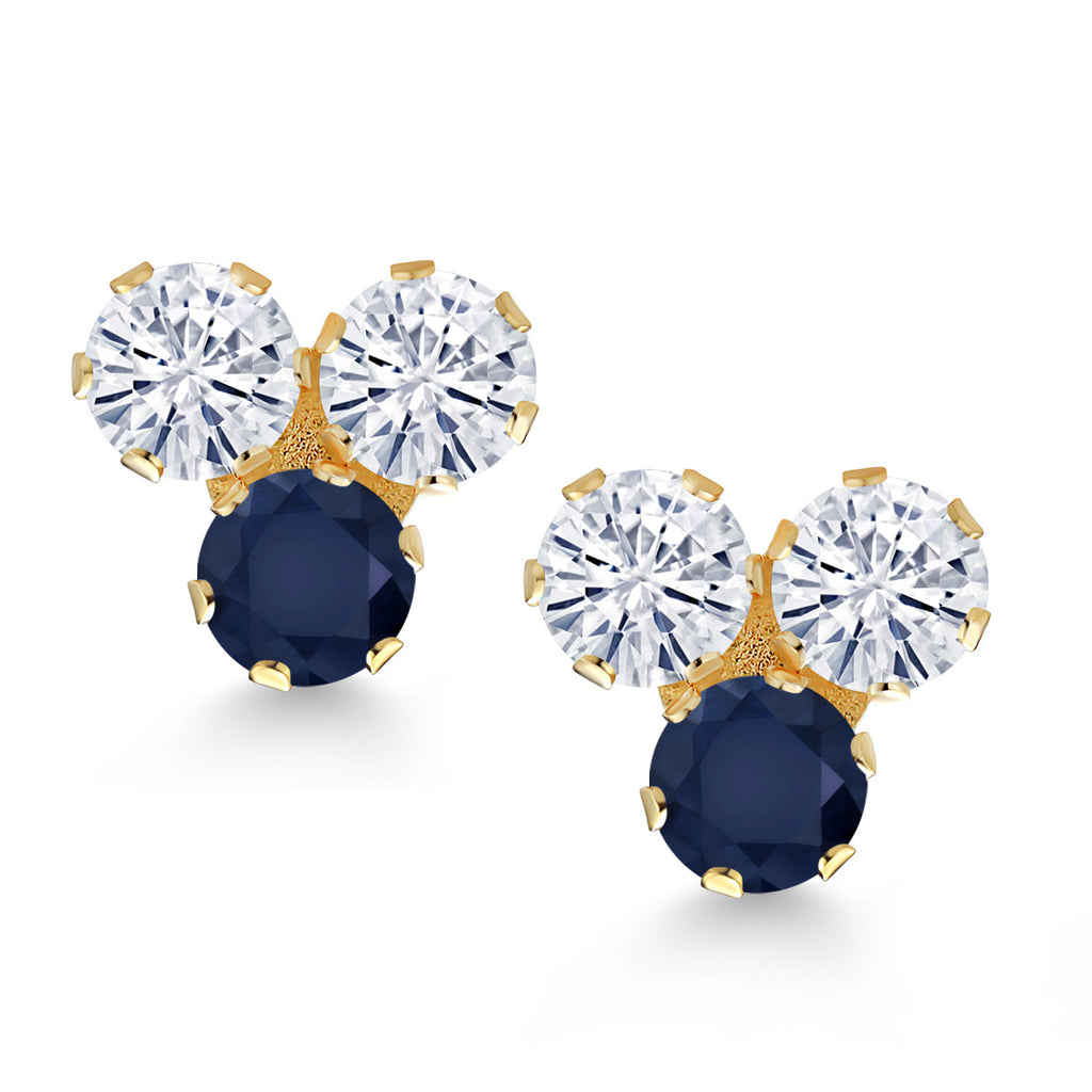 SPARKLING 3-STONE BIRTHSTONE STYLE: Featuring one rich blue sapphire paired with two radiant round-cut gemstones from a variety of birthstone selections, these 3MM trio earrings balance vibrant color and timeless sparkle. Set in a timeless cluster design, the symmetrical layout offers a perfect balance of sophistication and charm, making these earrings a must-have for every jewelry enthusiast seeking a elegant touch.
