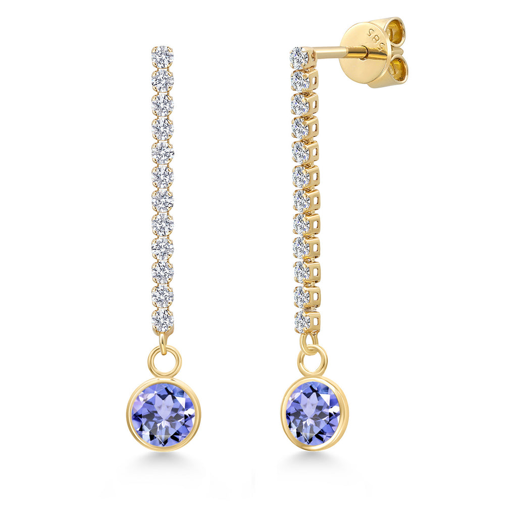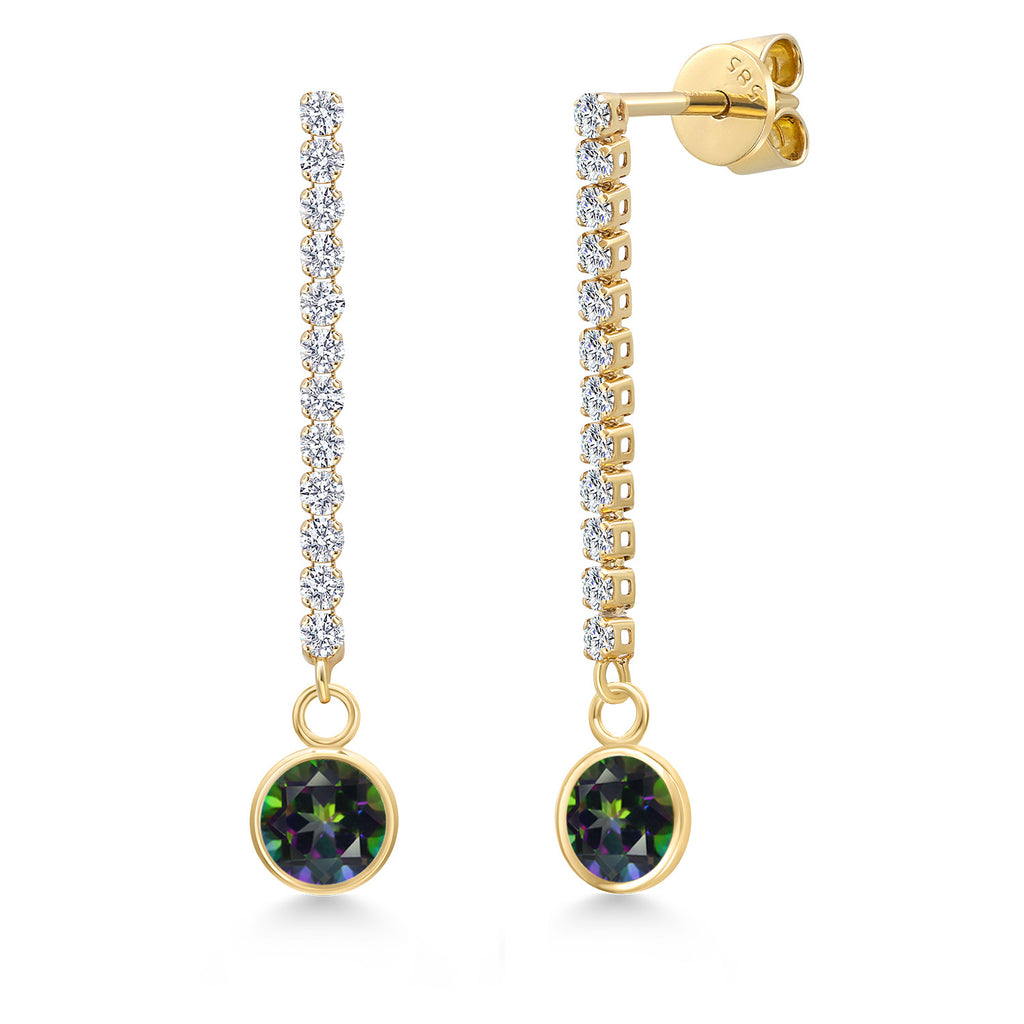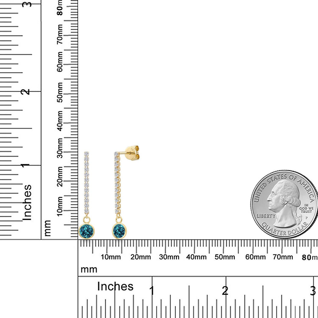 14K Yellow Gold Gemstone Birthstone and White Lab Grown Diamond Long Liner Dangle Earrings for Women | Round 6MM and 1.5MM Accents | Gold Chain Drop Earrings