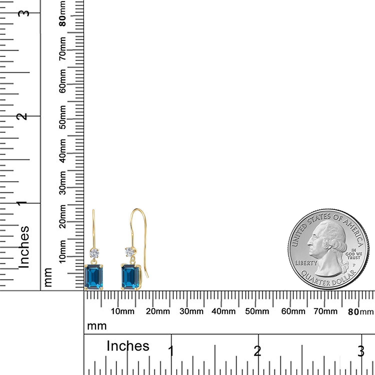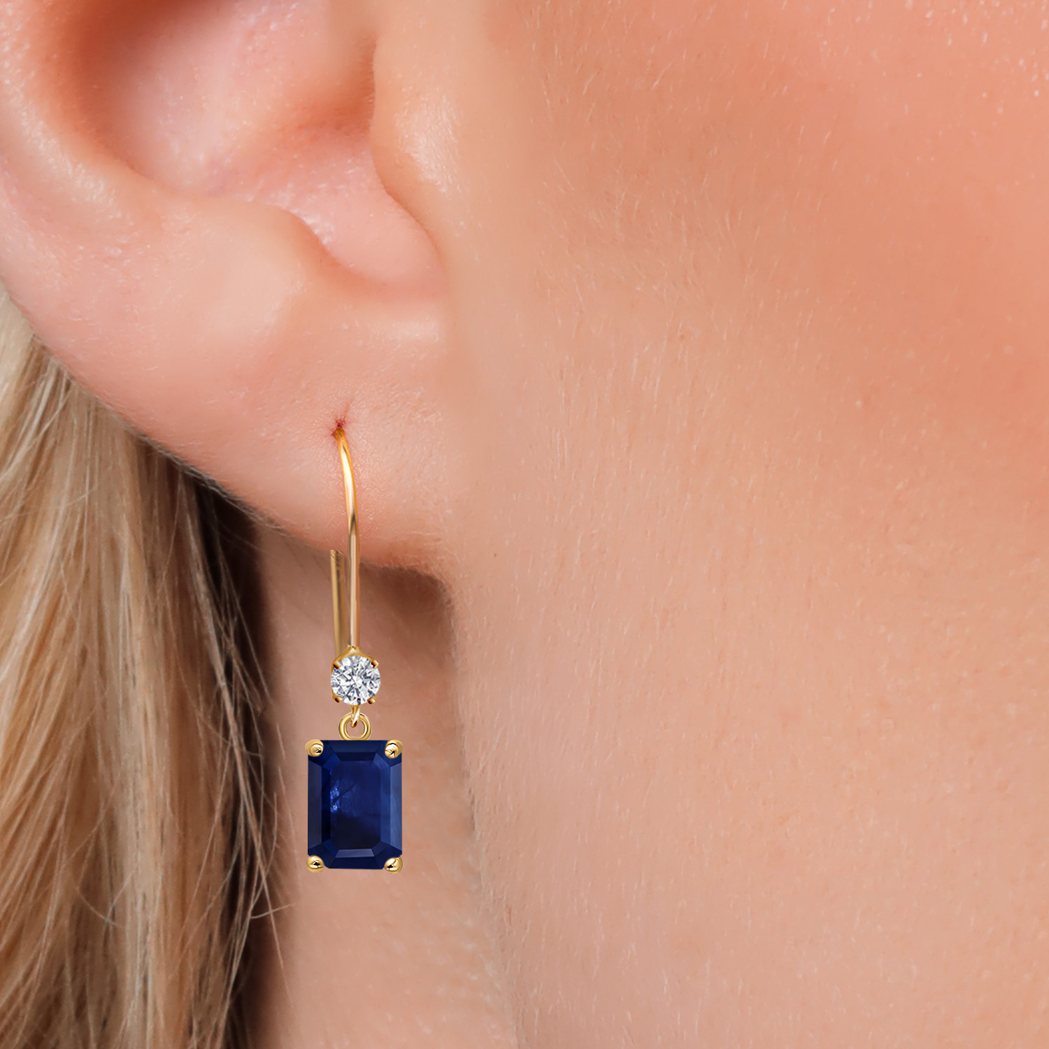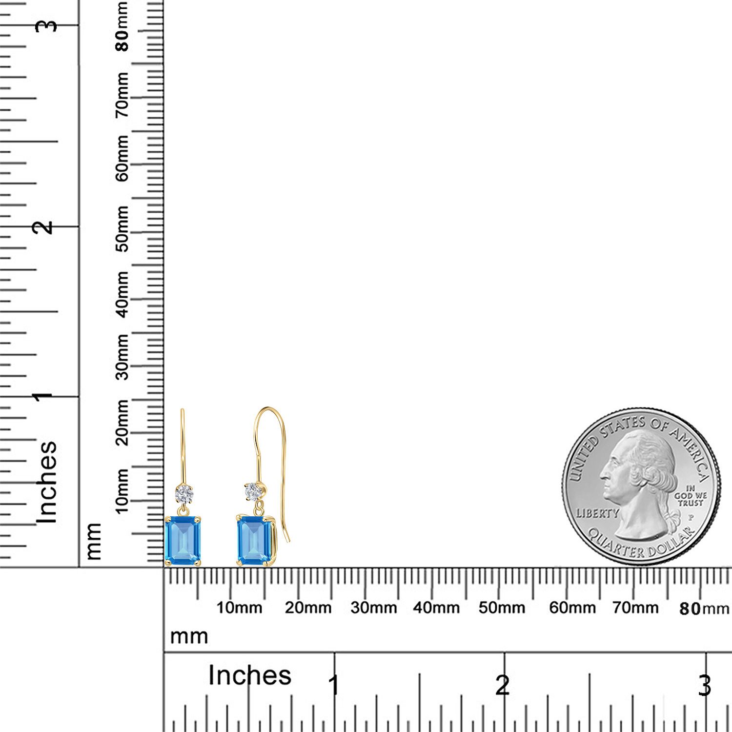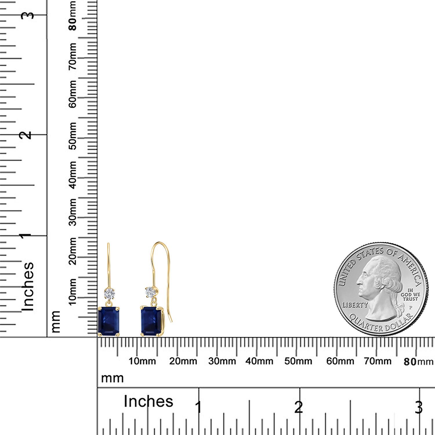 14K Yellow Gold Gemstone Birthstone and Lab Grown Diamond French Wire Dangle Earrings for Women | Emerald Cut 7X5MM | Fine Jewelry Gifts for Her Mom Women Wife