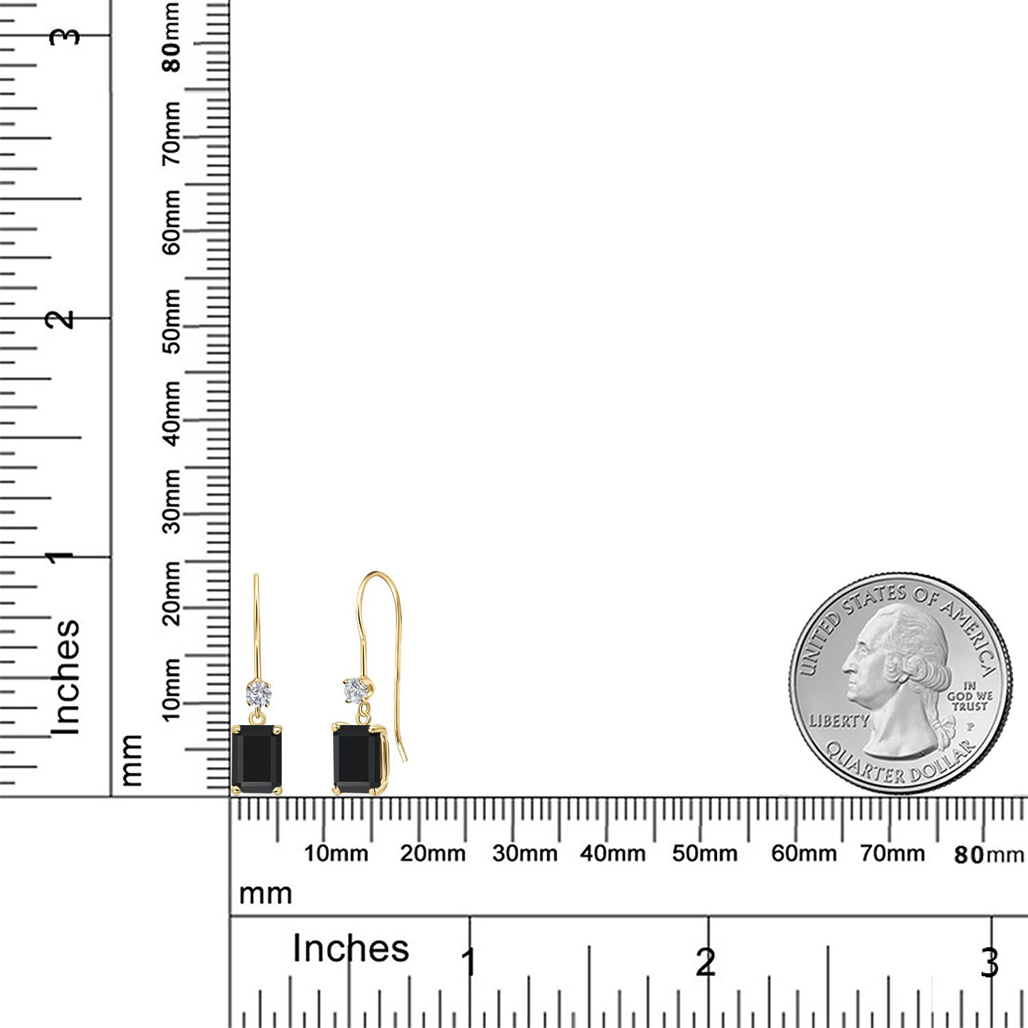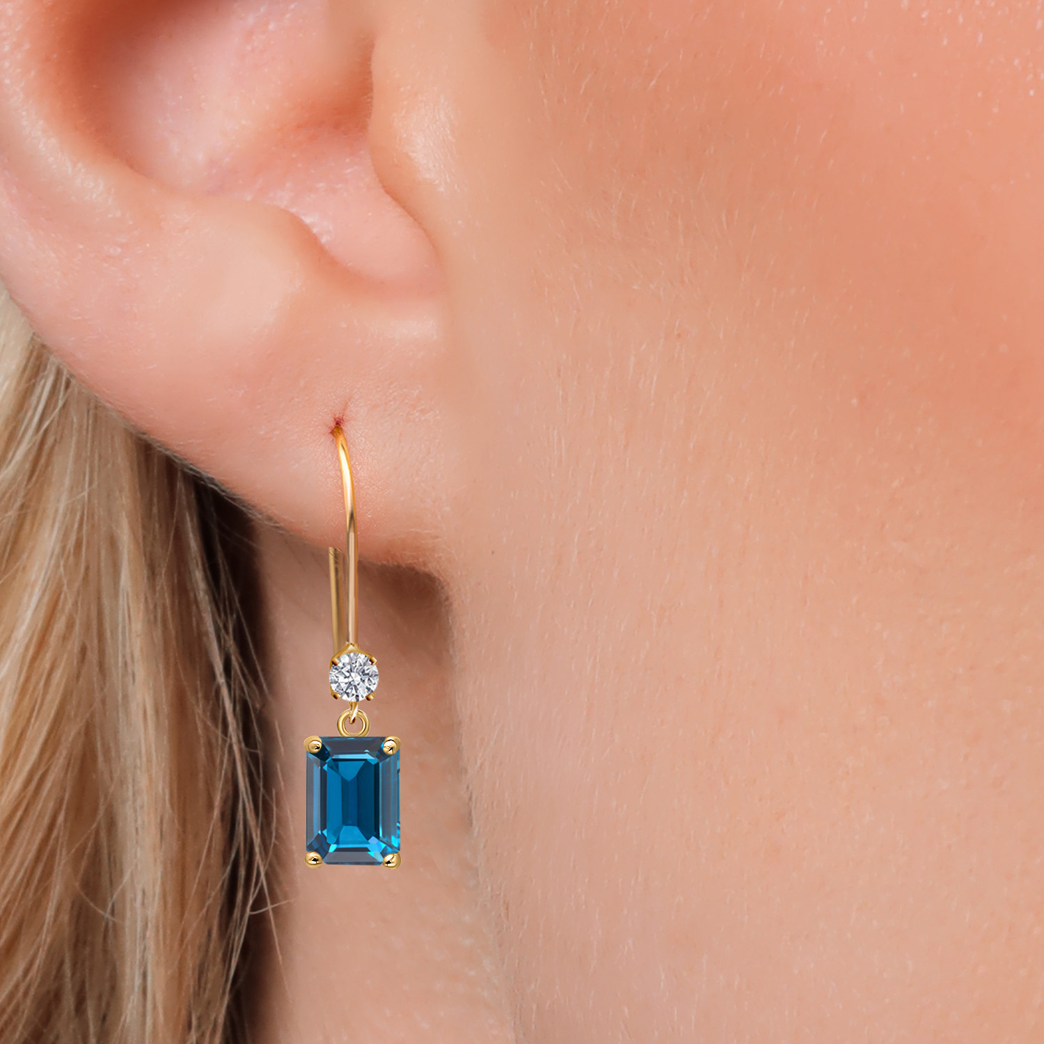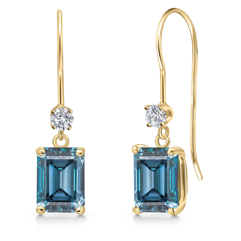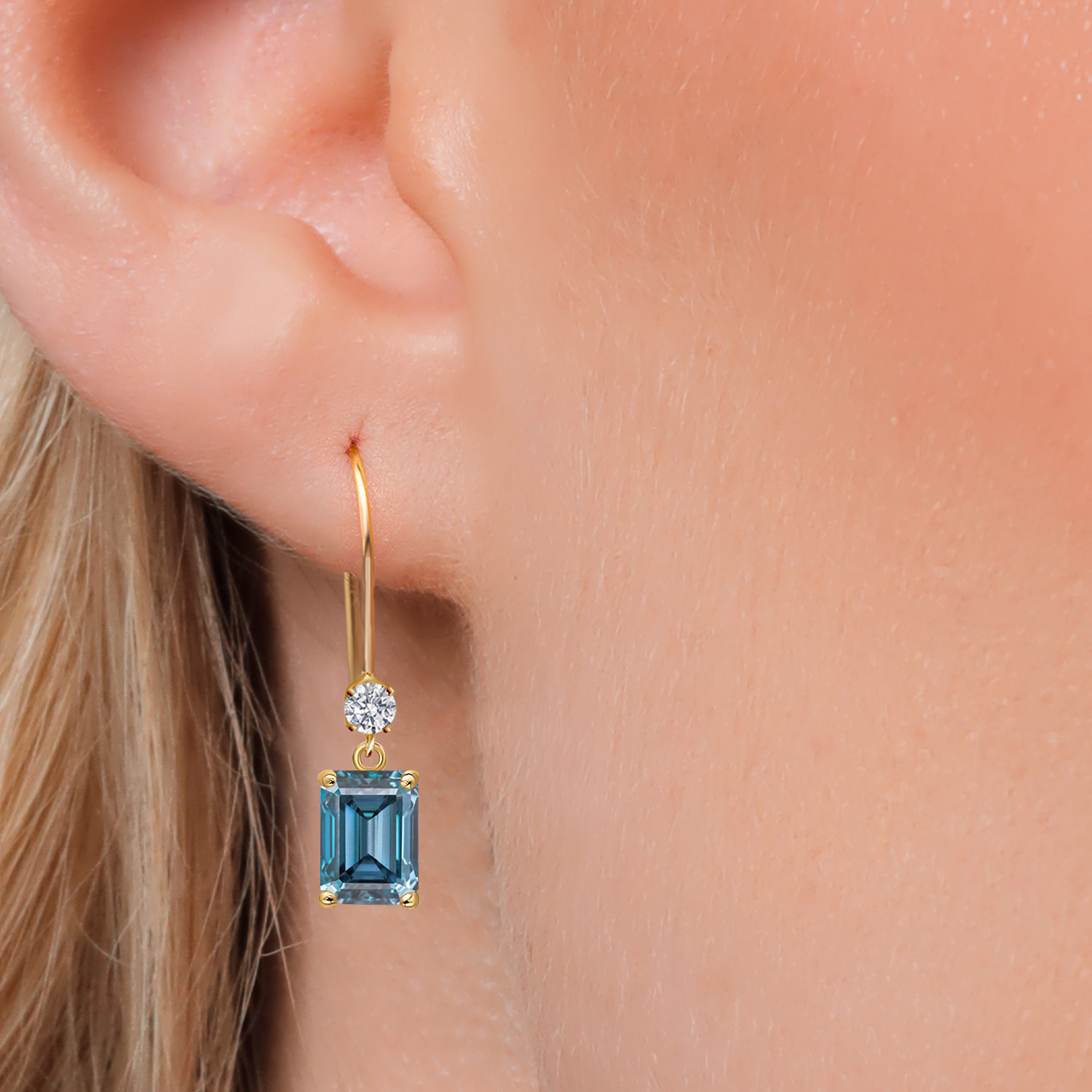 14K Yellow Gold Gemstone Birthstone and Lab Grown Diamond French Wire Dangle Earrings for Women | Emerald Cut 7X5MM | Fine Jewelry Gifts for Her Mom Women Wife