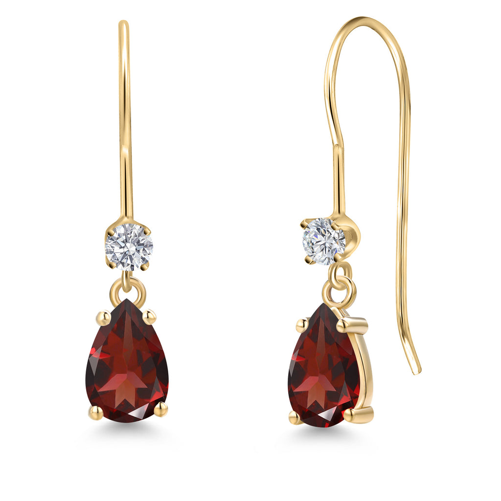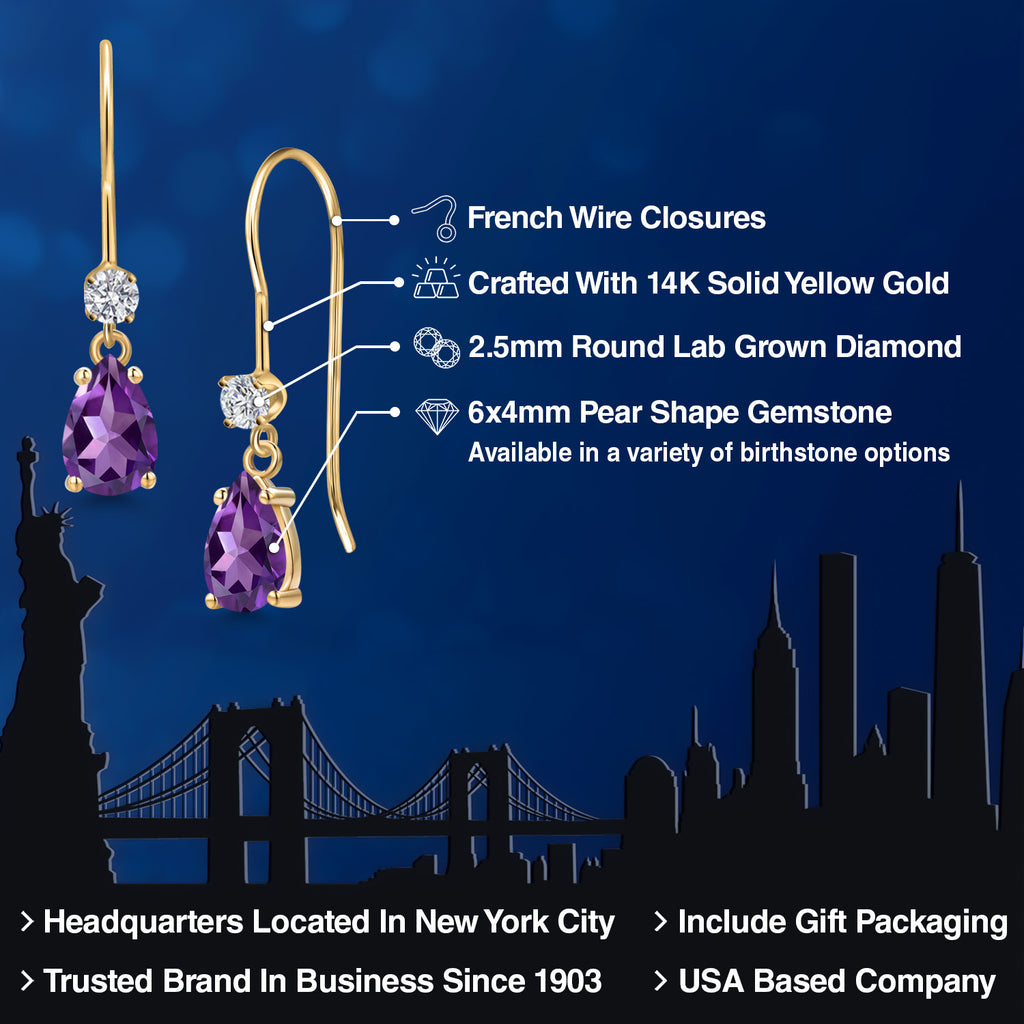 14K Yellow Gold Gemstone Birthstone and Lab Grown Diamond French Wire Dangle Earrings for Women | Pear Shape 6X4MM and Round 2.5MM | Fine Jewelry for Her Mom Women Wife