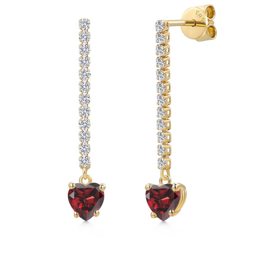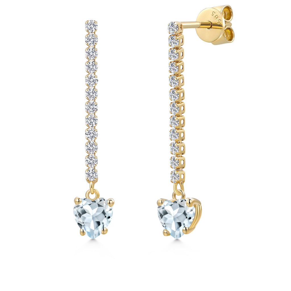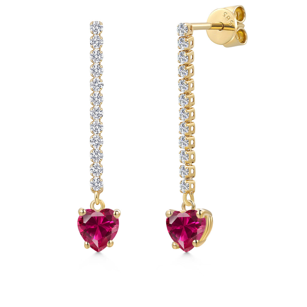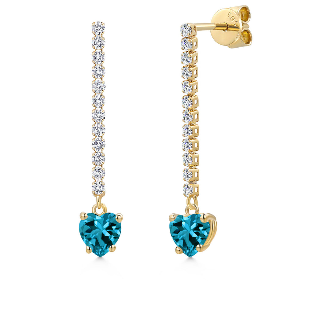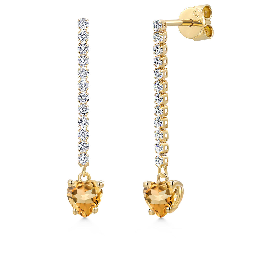 14K Yellow Gold Gemstone Birthstone and Lab Grown Diamond Long Liner Dangle Earrings for Women | Heart Shape 5MM and Round 1.5MM | Yellow Gold Chain Drop Earrings