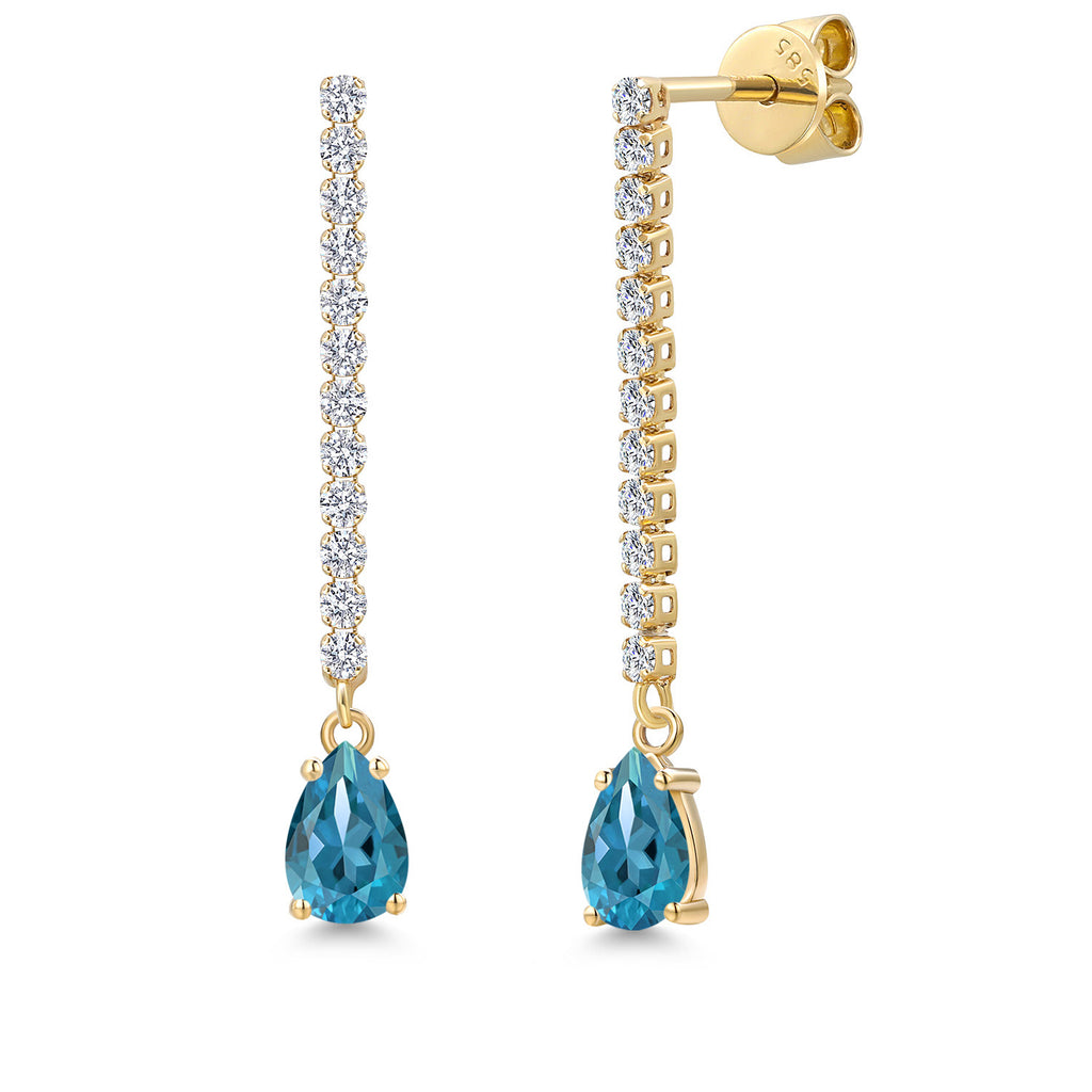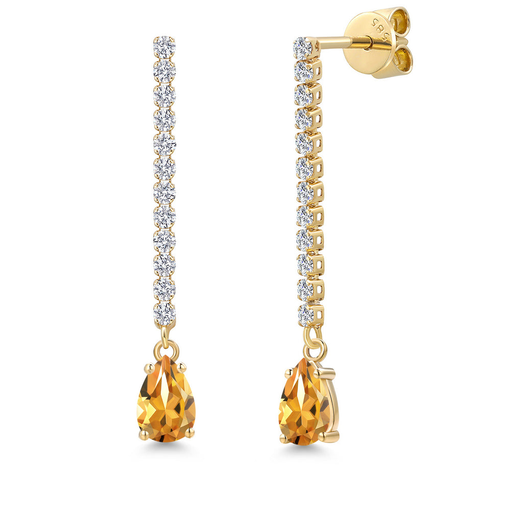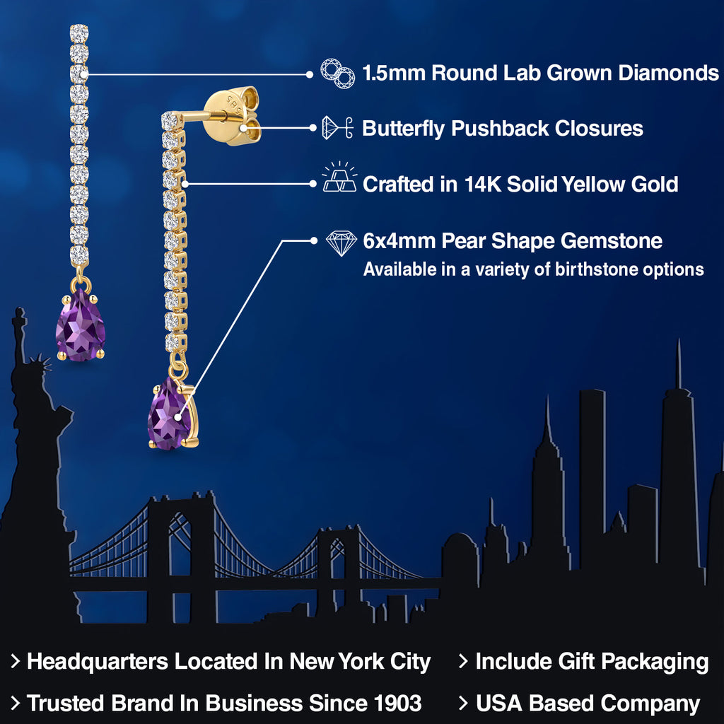14K Yellow Gold Gemstone Birthstone and Lab Grown Diamond Long Liner Dangle Earrings for Women | Pear Shape 6X4MM and Round 1.5MM | Yellow Gold Chain Drop Earrings