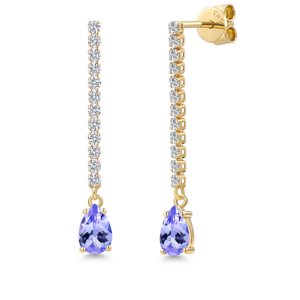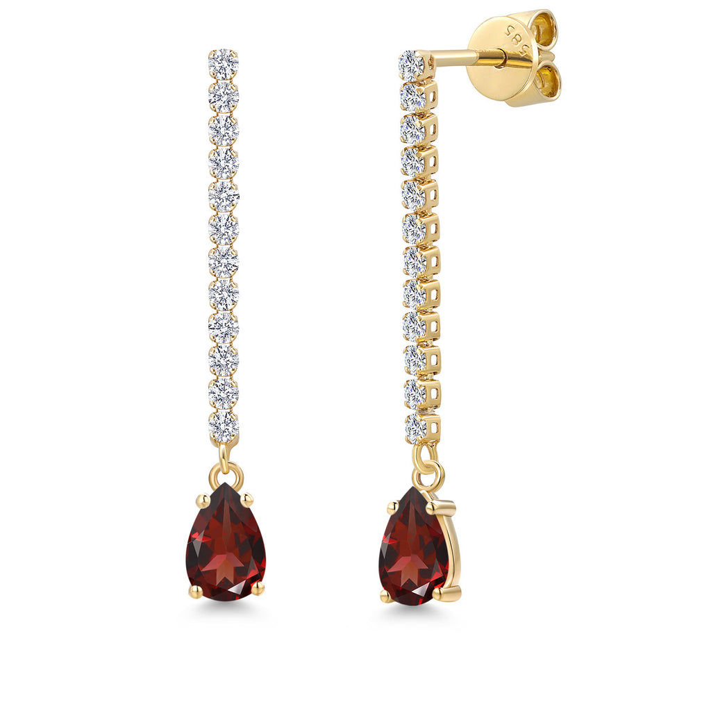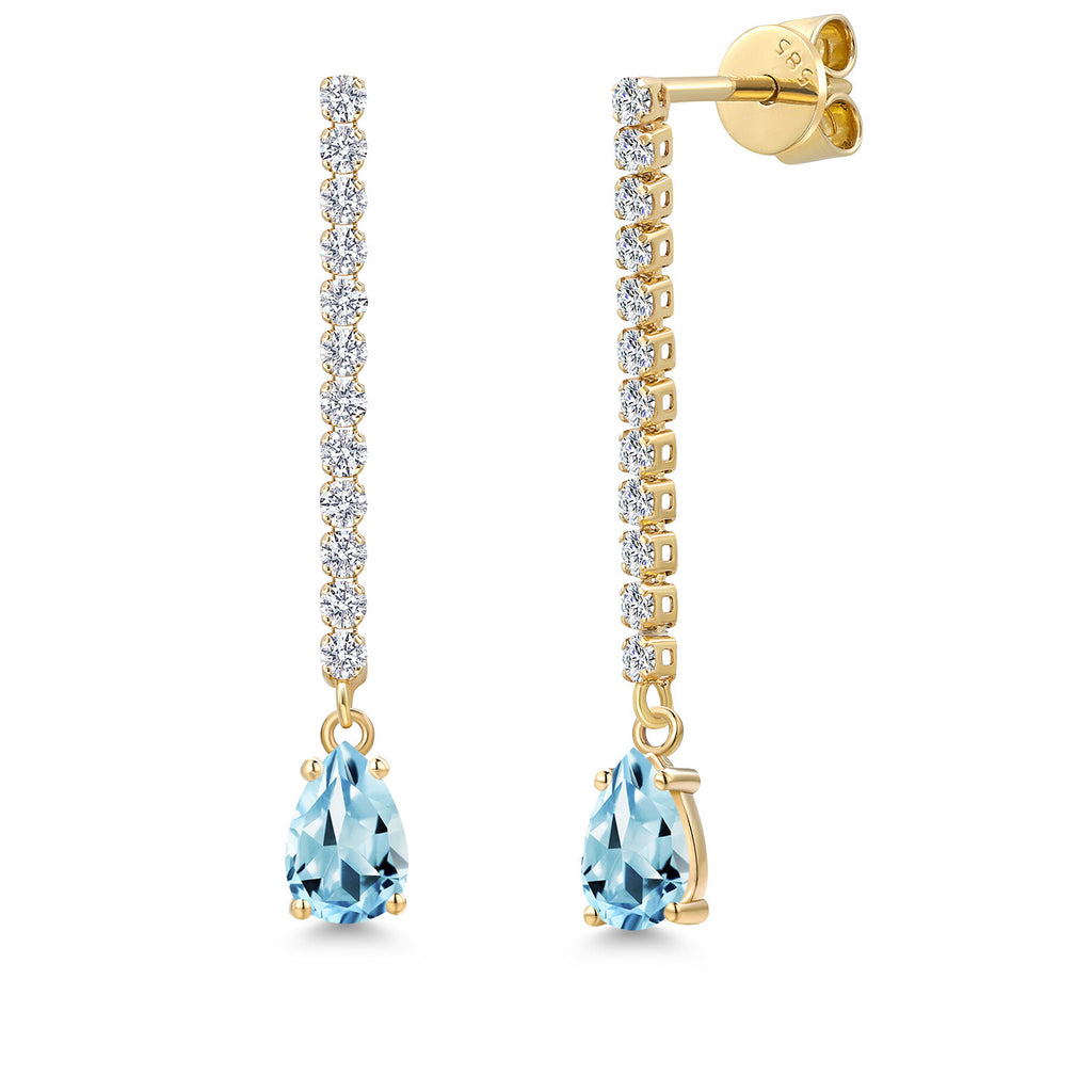 14K Yellow Gold Gemstone Birthstone and Lab Grown Diamond Long Liner Dangle Earrings for Women | Pear Shape 6X4MM and Round 1.5MM | Yellow Gold Chain Drop Earrings