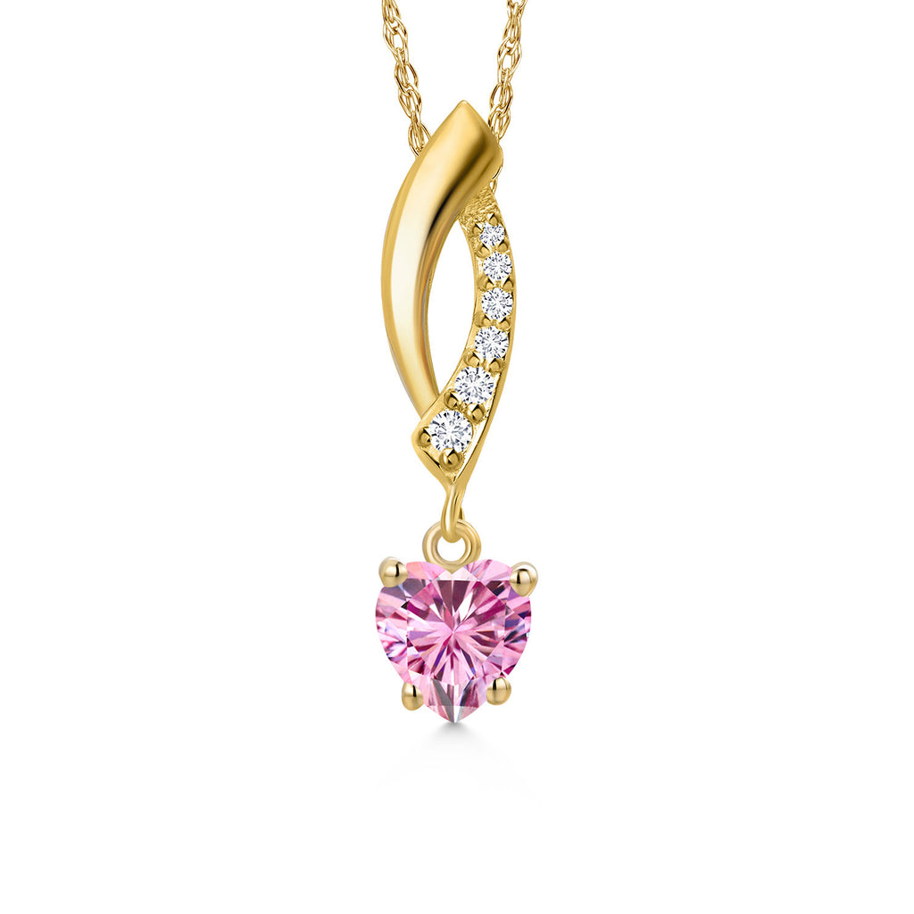14K Yellow Gold Gemstone Birthstone and Lab Grown Diamond Pendant Necklace for Women | Heart Shape 5MM | Fine Jewelry Gifts for Her Mom Women Wife | With 18 Inch 14K Gold Chain