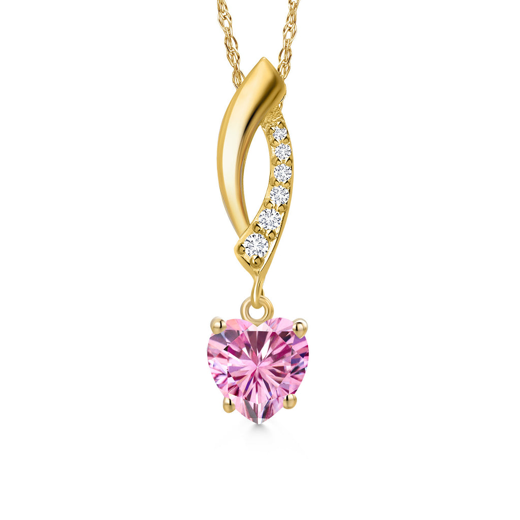 14K Yellow Gold Gemstone Birthstone and Lab Grown Diamond Pendant Necklace for Women | Heart Shape 6MM and Round 1.5MM | Fine Jewelry Gifts for Her Mom Women Wife | With 18 Inch 14K Gold Chain
