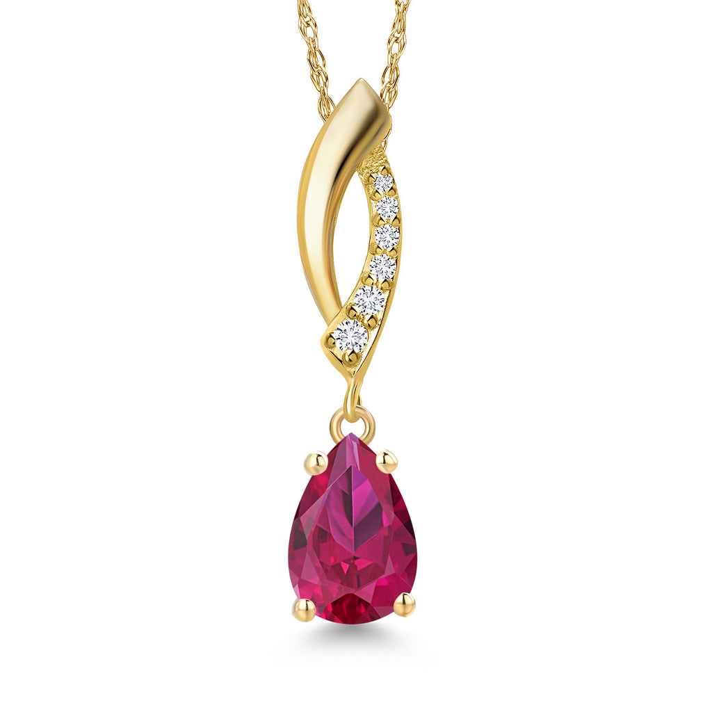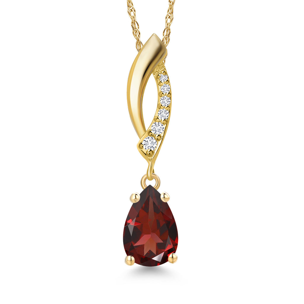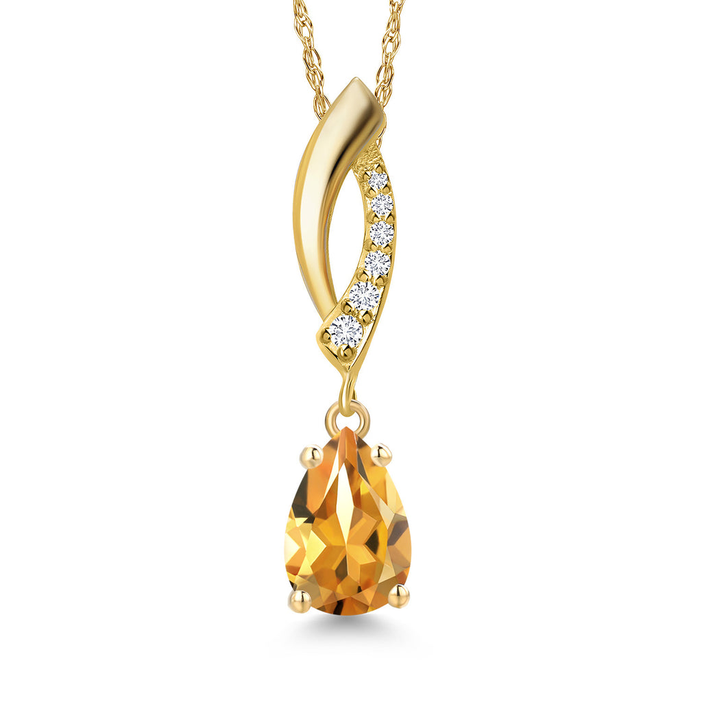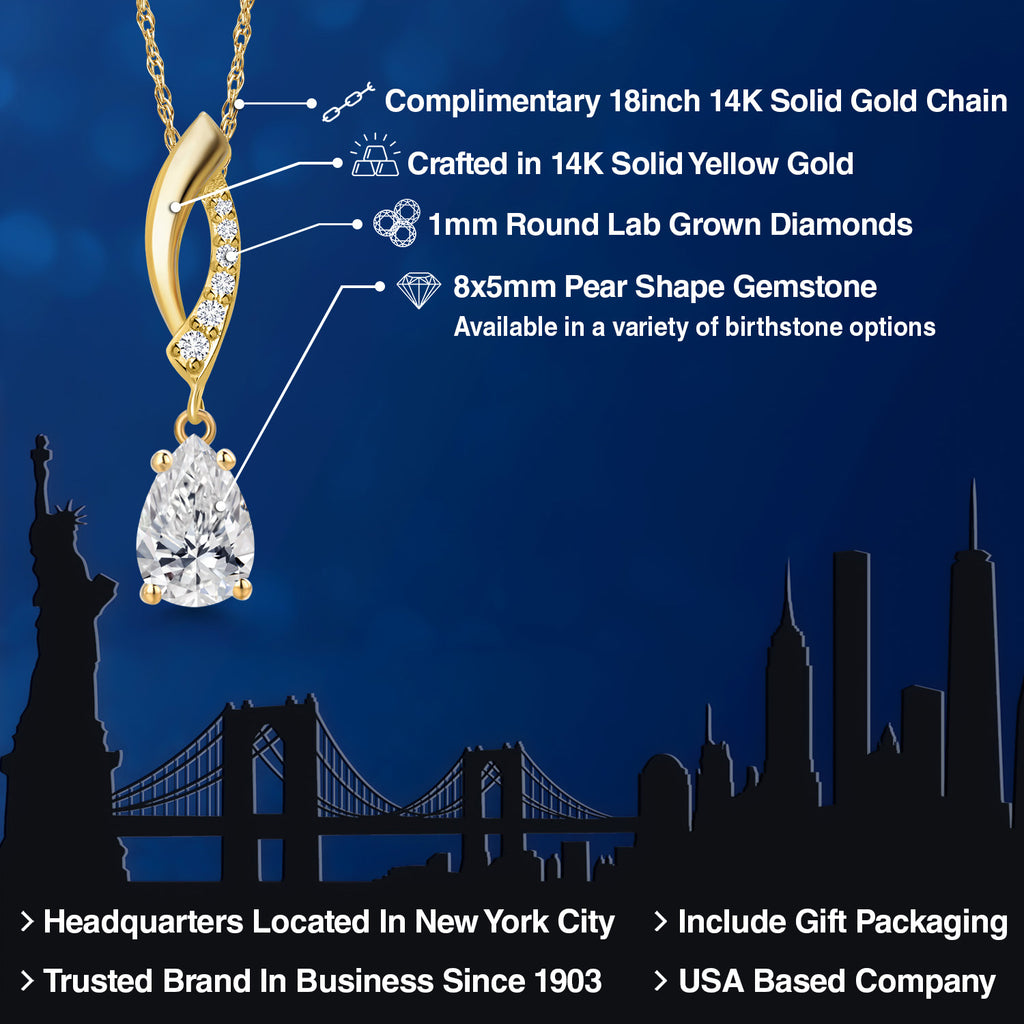 14K Yellow Gold Gemstone Birthstone and Lab Grown Diamond Teardrop Pendant Necklace For Women | Pear Shape 8X5MM | Fine Jewelry Gifts for Her Mom Women Wife | With 18 Inch 14K Gold Chain