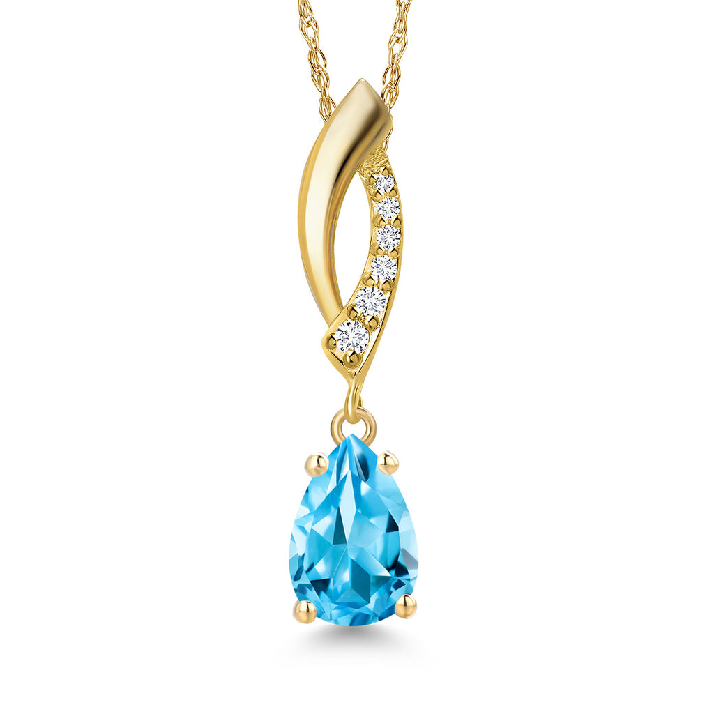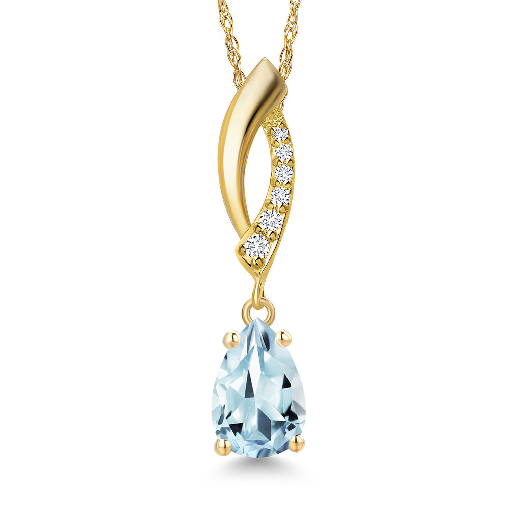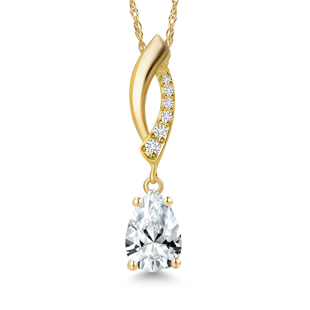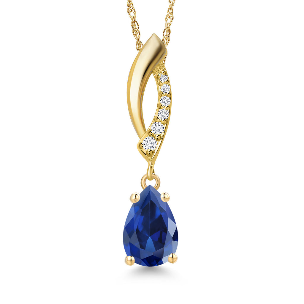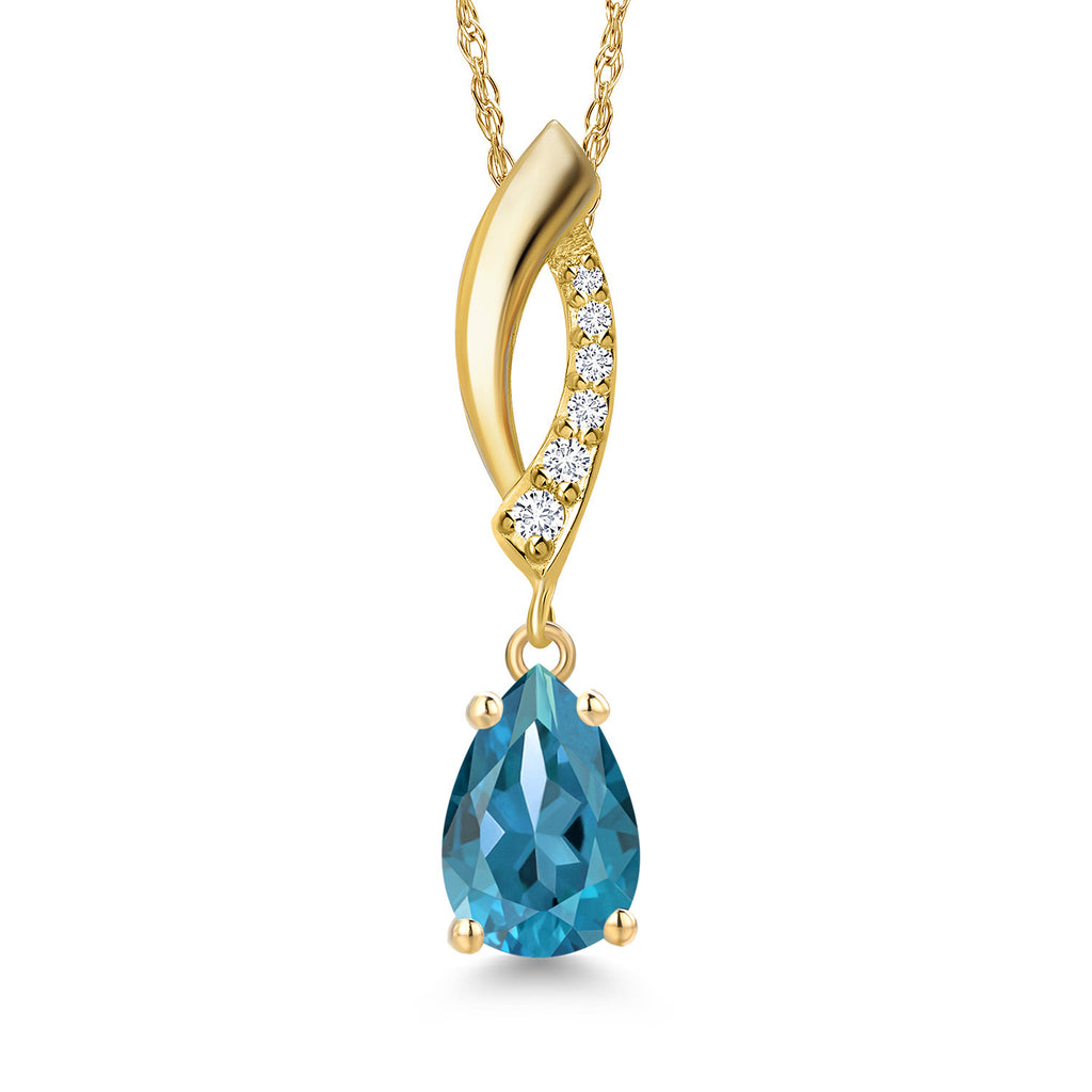 14K Yellow Gold Gemstone Birthstone and Lab Grown Diamond Teardrop Pendant Necklace For Women | Pear Shape 8X5MM | Fine Jewelry Gifts for Her Mom Women Wife | With 18 Inch 14K Gold Chain