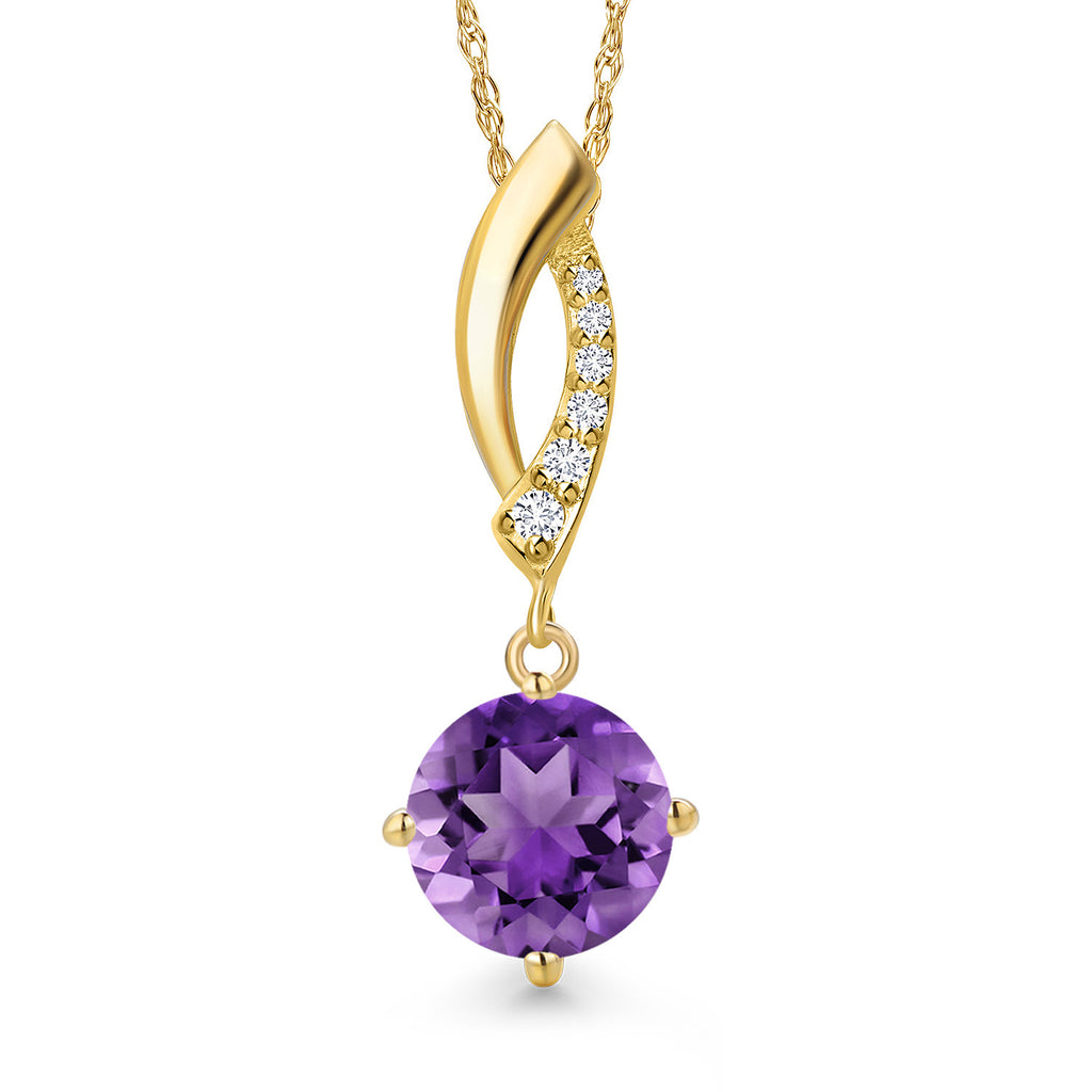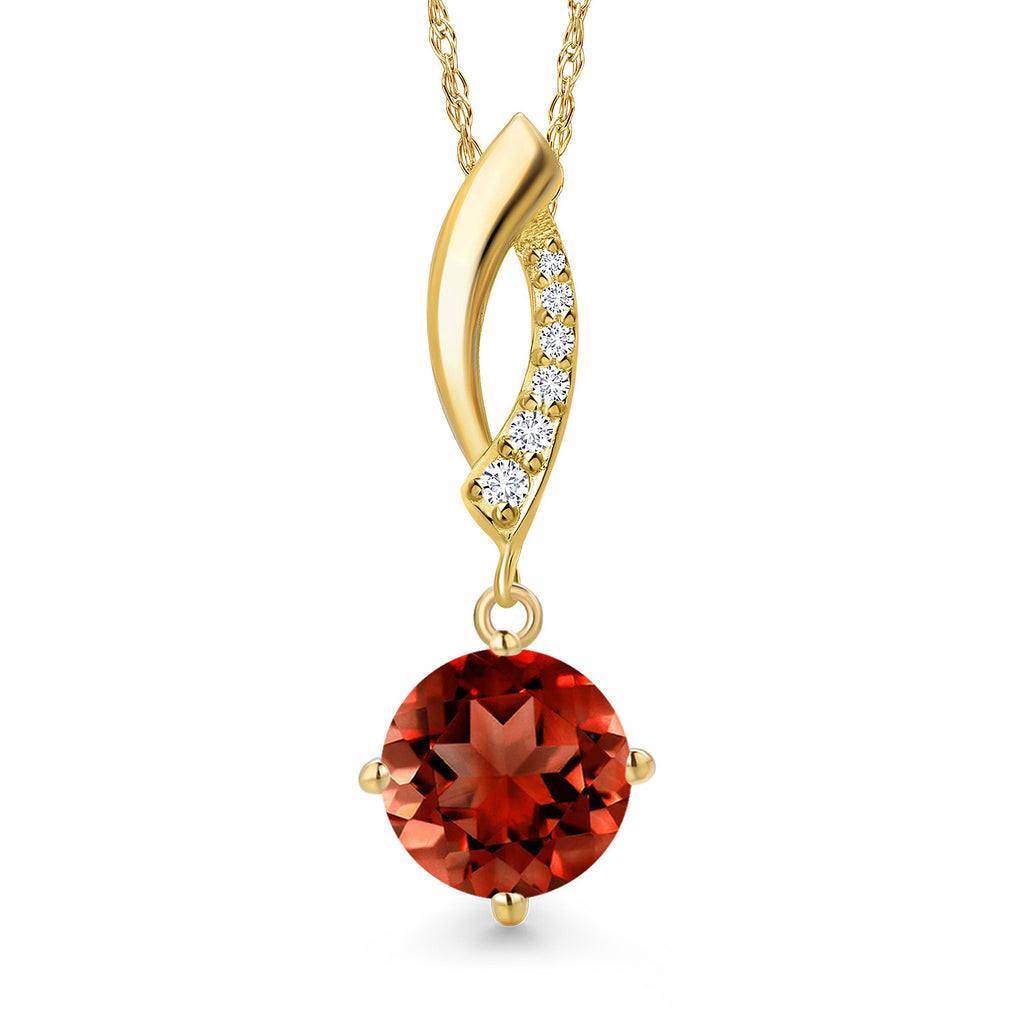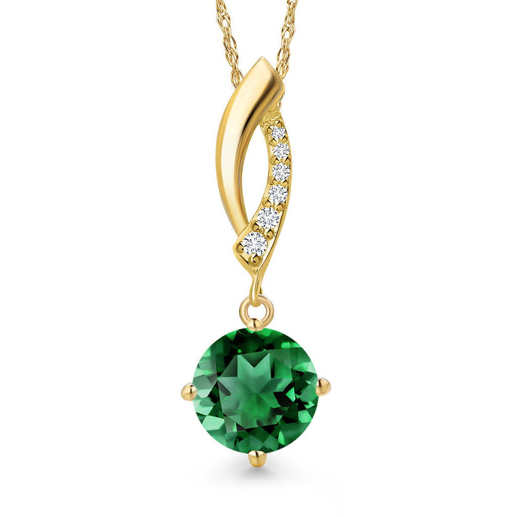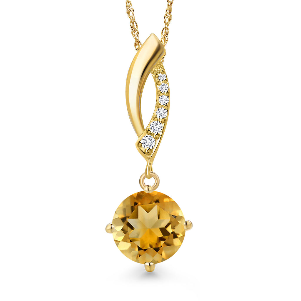 14K Yellow Gold Gemstone Birthstone and Lab Grown Diamond Pendant Necklace for Women | Round 8MM | Fine Jewelry Gifts for Her Mom Women Wife | With 18 Inch 14K Gold Chain