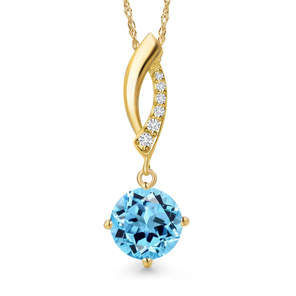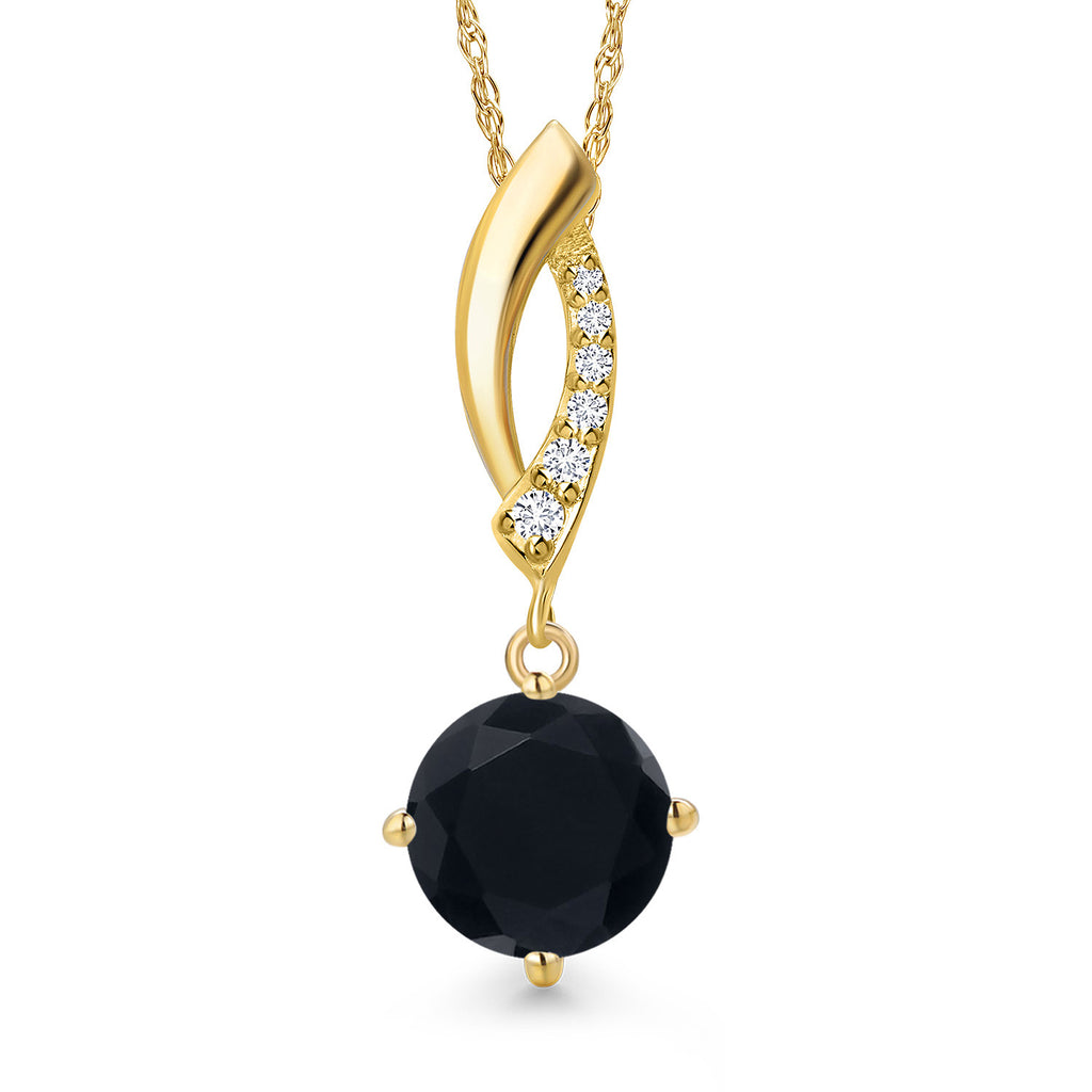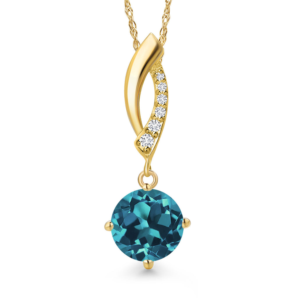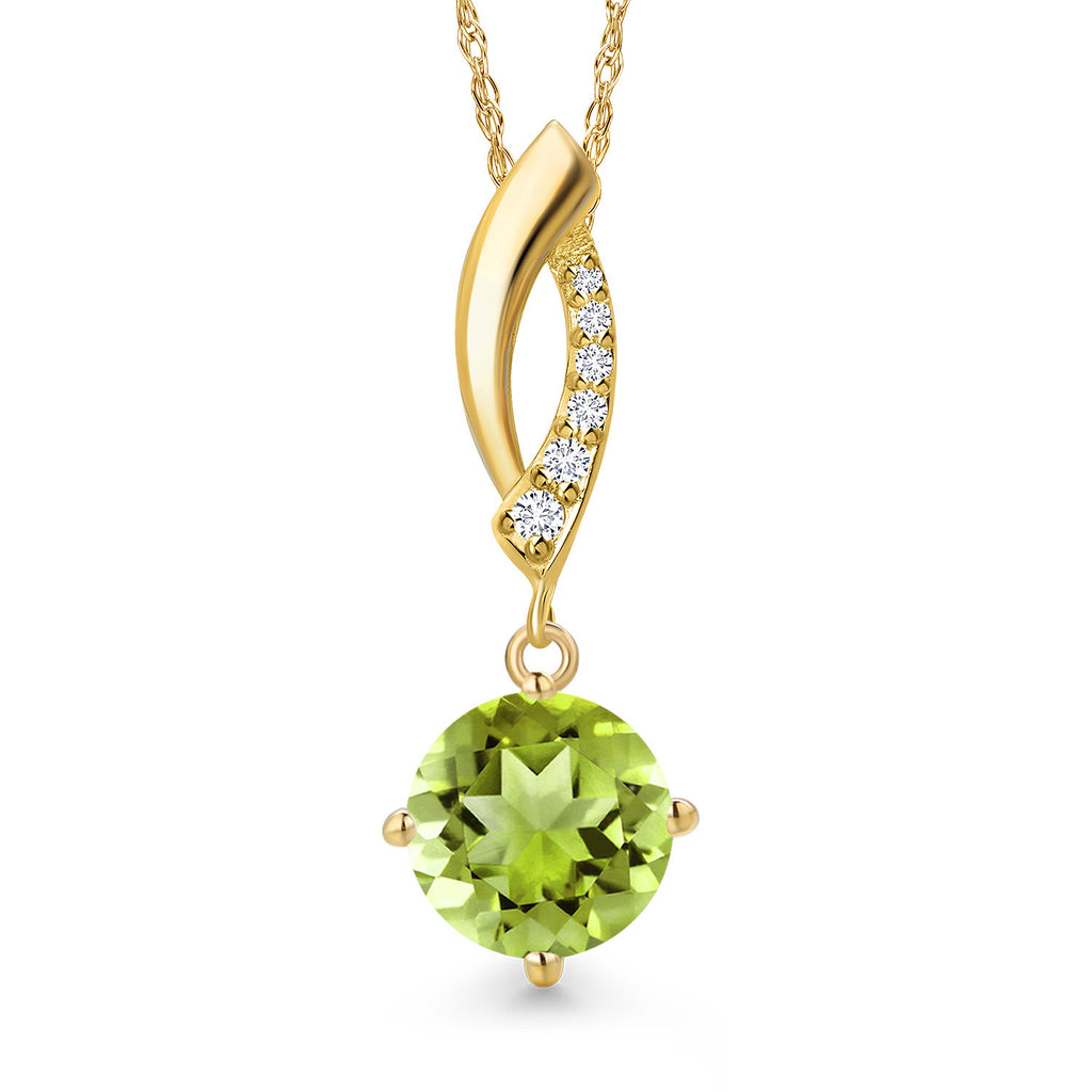 14K Yellow Gold Gemstone Birthstone and Lab Grown Diamond Pendant Necklace for Women | Round 8MM | Fine Jewelry Gifts for Her Mom Women Wife | With 18 Inch 14K Gold Chain