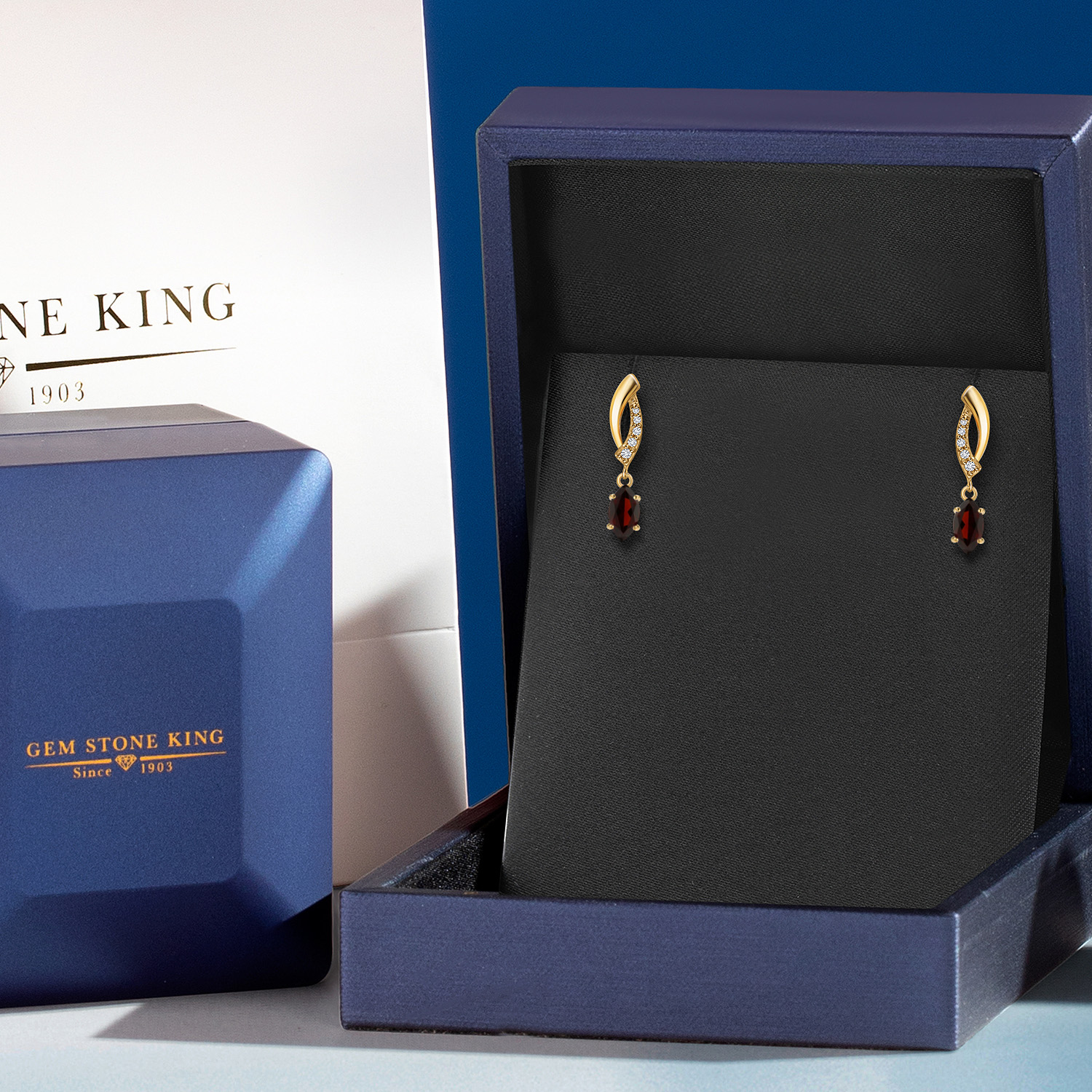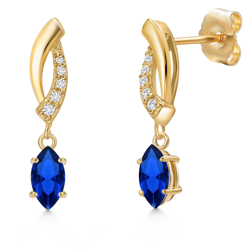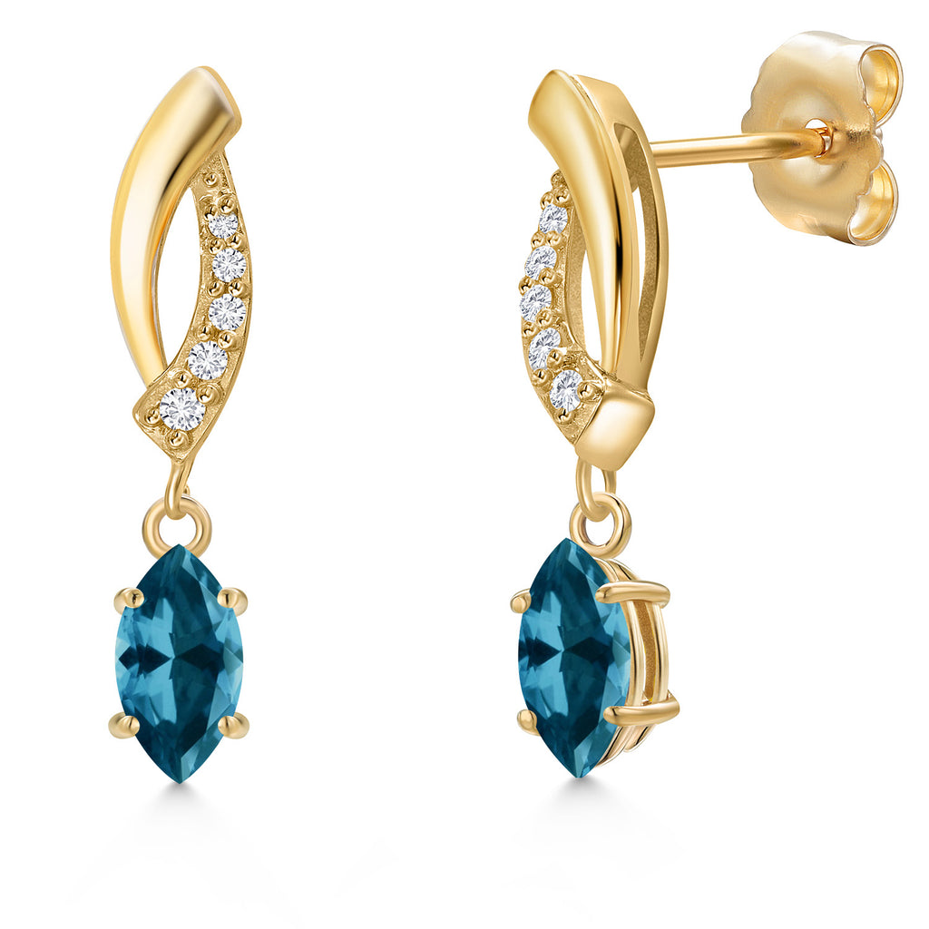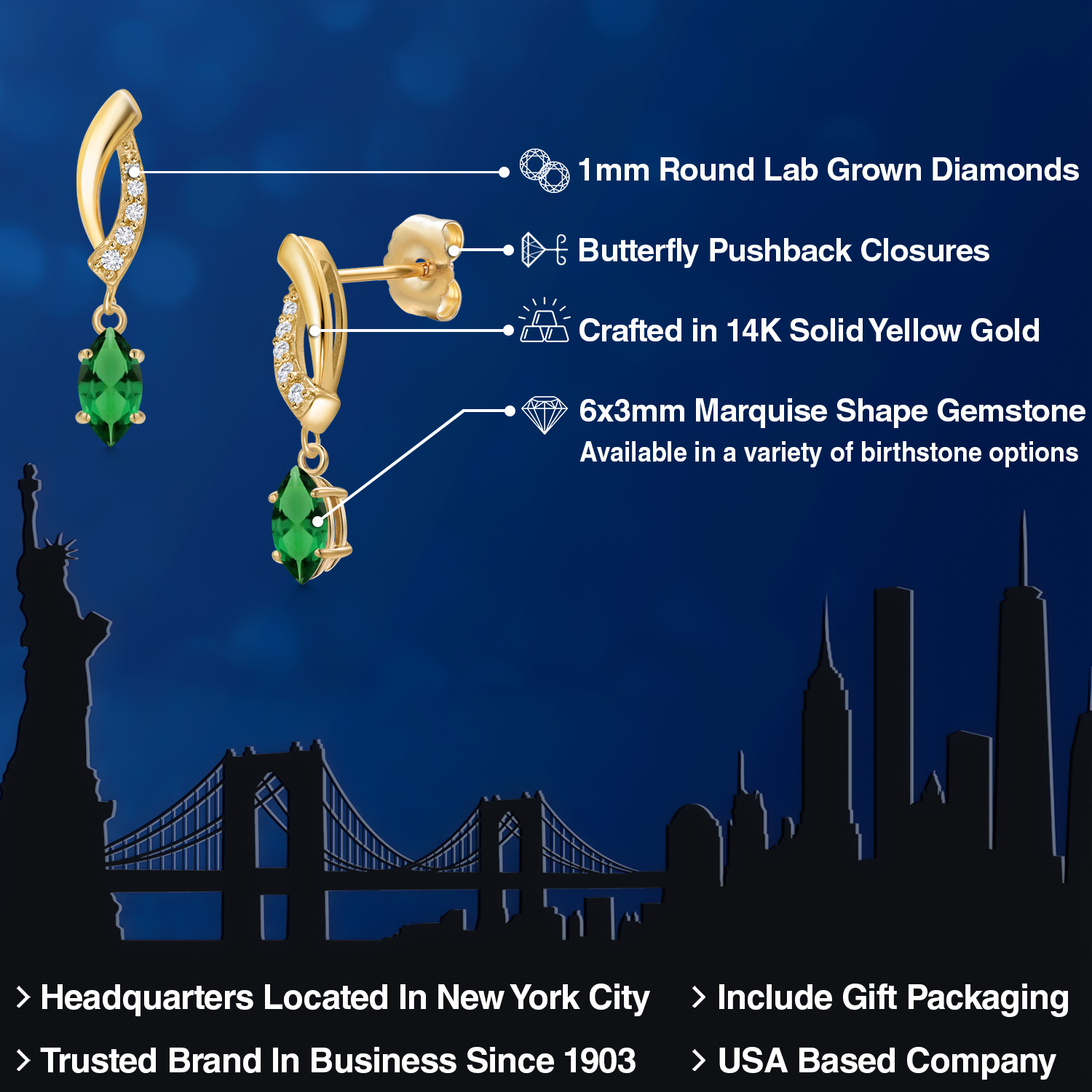 14K Yellow Gold Gemstone Birthstone and Lab Grown Diamond Dangle Earrings for Women | Marquise Cut 6X3MM and Round 1MM | Fine Jewelry Gifts for Her Mom Women Wife