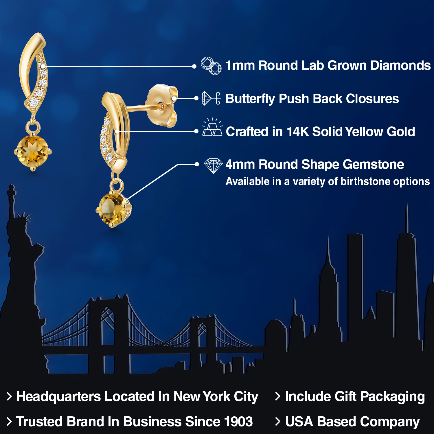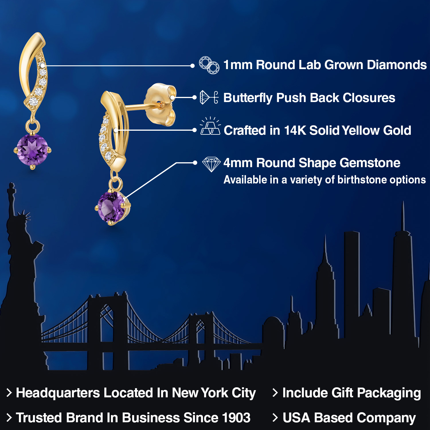 EXQUISITE GEMSTONE BIRTHSTONE SELECTION: Adorn yourself with these 14K Yellow Gold dangle earrings, featuring a radiant 4MM round birthstone. Each gemstone is handpicked for its superior color, fire, and brilliance, creating an enchanting allure that enhances any outfit. These earrings are versatile, suitable for everyday wear or special occasions, embodying a timeless elegance that never goes out of style.