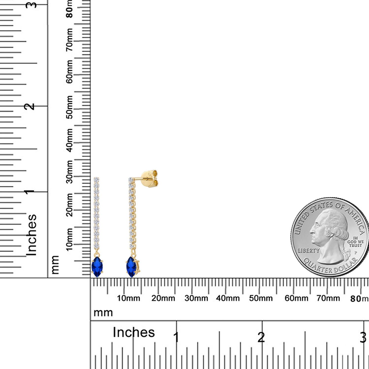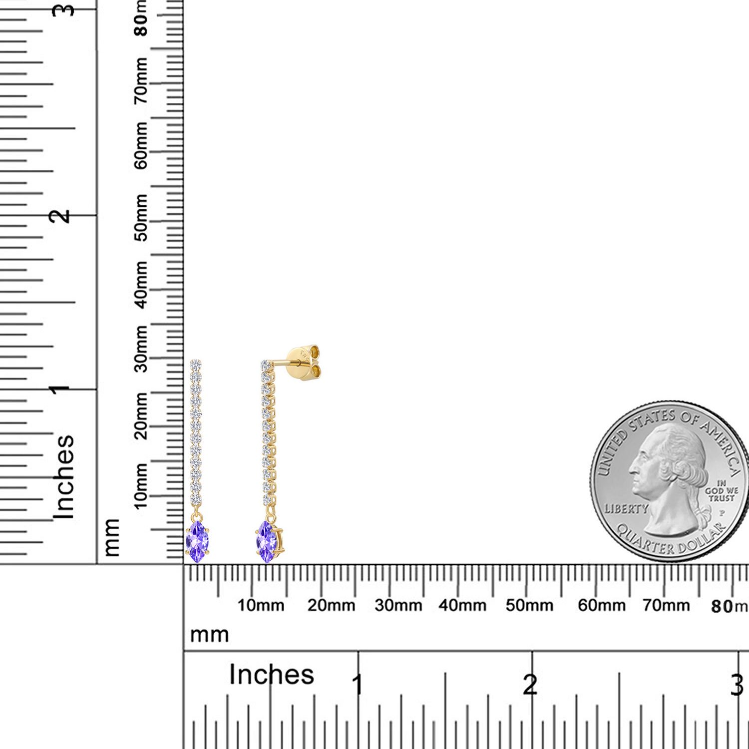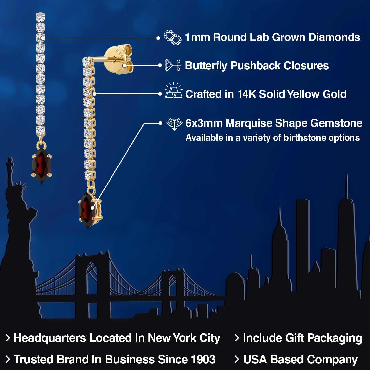 14K Yellow Gold Gemstone Birthstone and White Lab Grown Diamond Long Liner Dangle Earrings for Women | Marquise 6X3MM | Yellow Gold Chain Drop Earrings