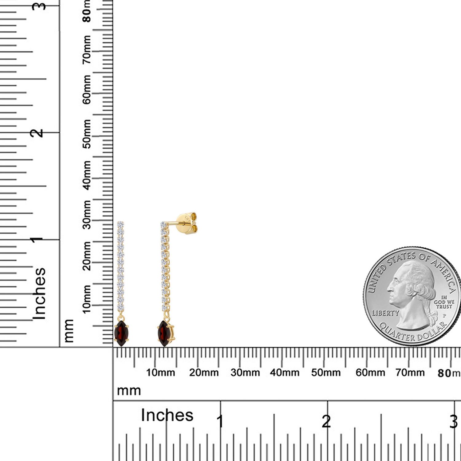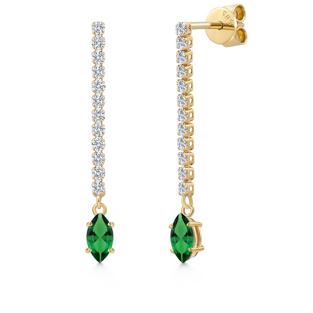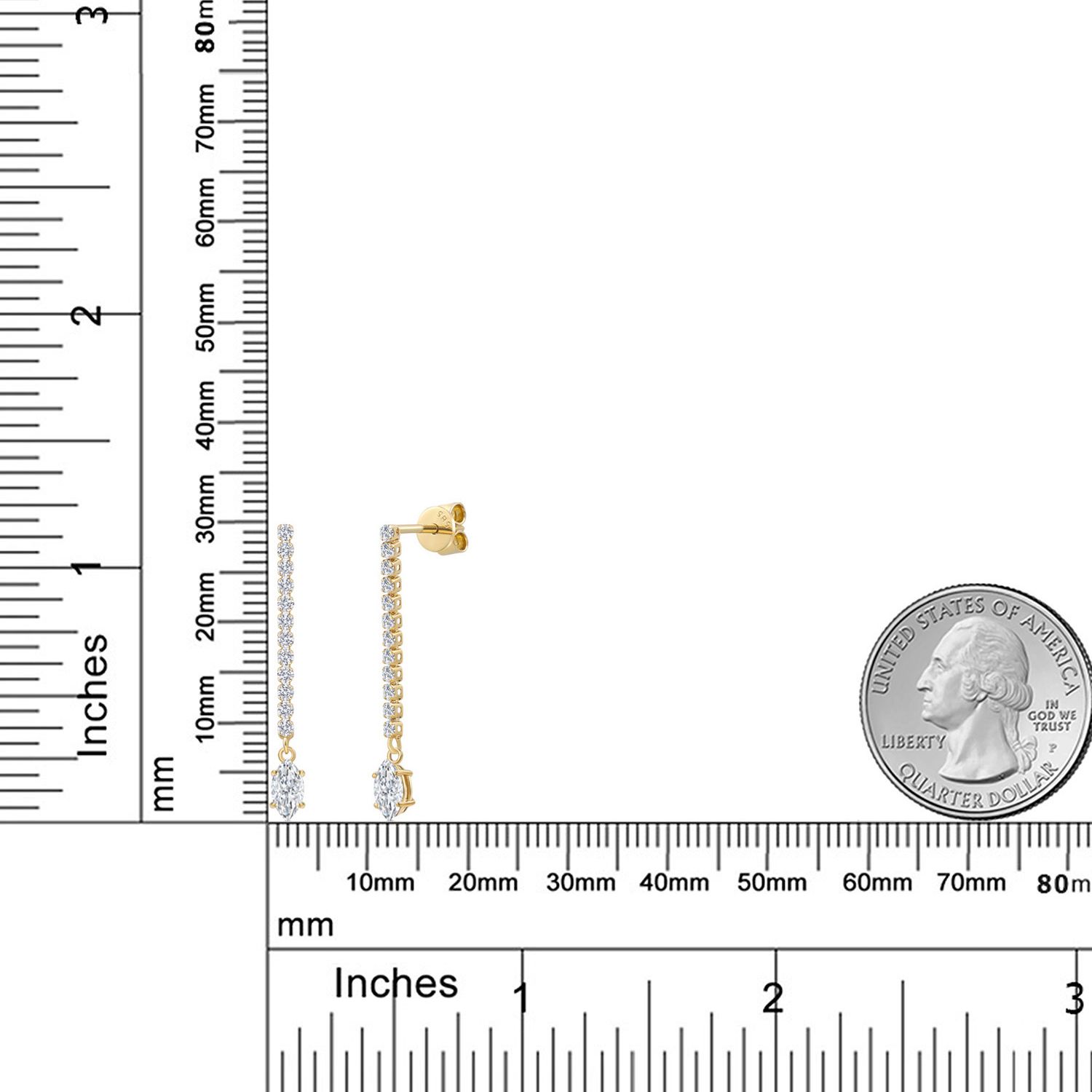 14K Yellow Gold Gemstone Birthstone and White Lab Grown Diamond Long Liner Dangle Earrings for Women | Marquise 6X3MM | Yellow Gold Chain Drop Earrings