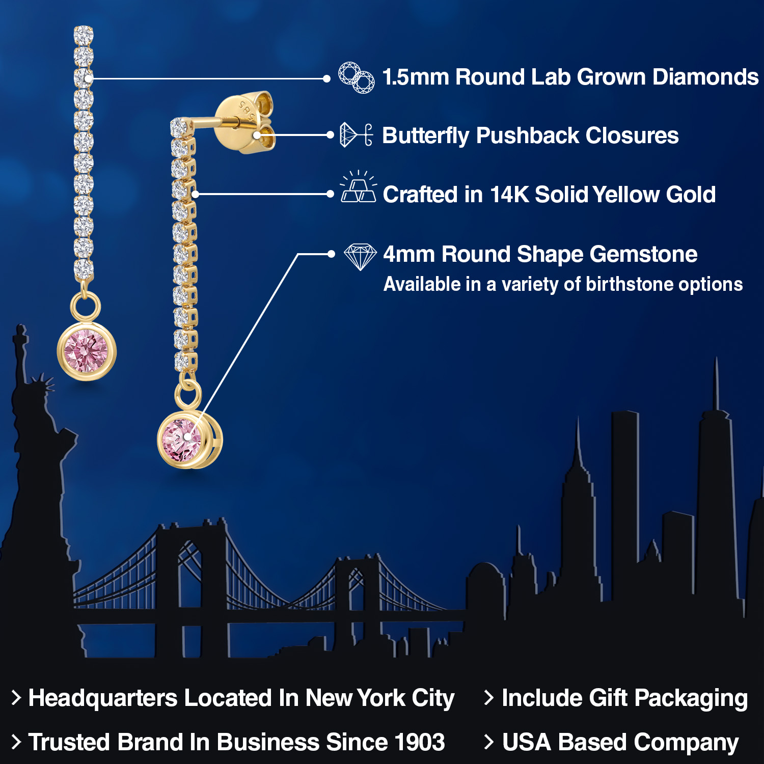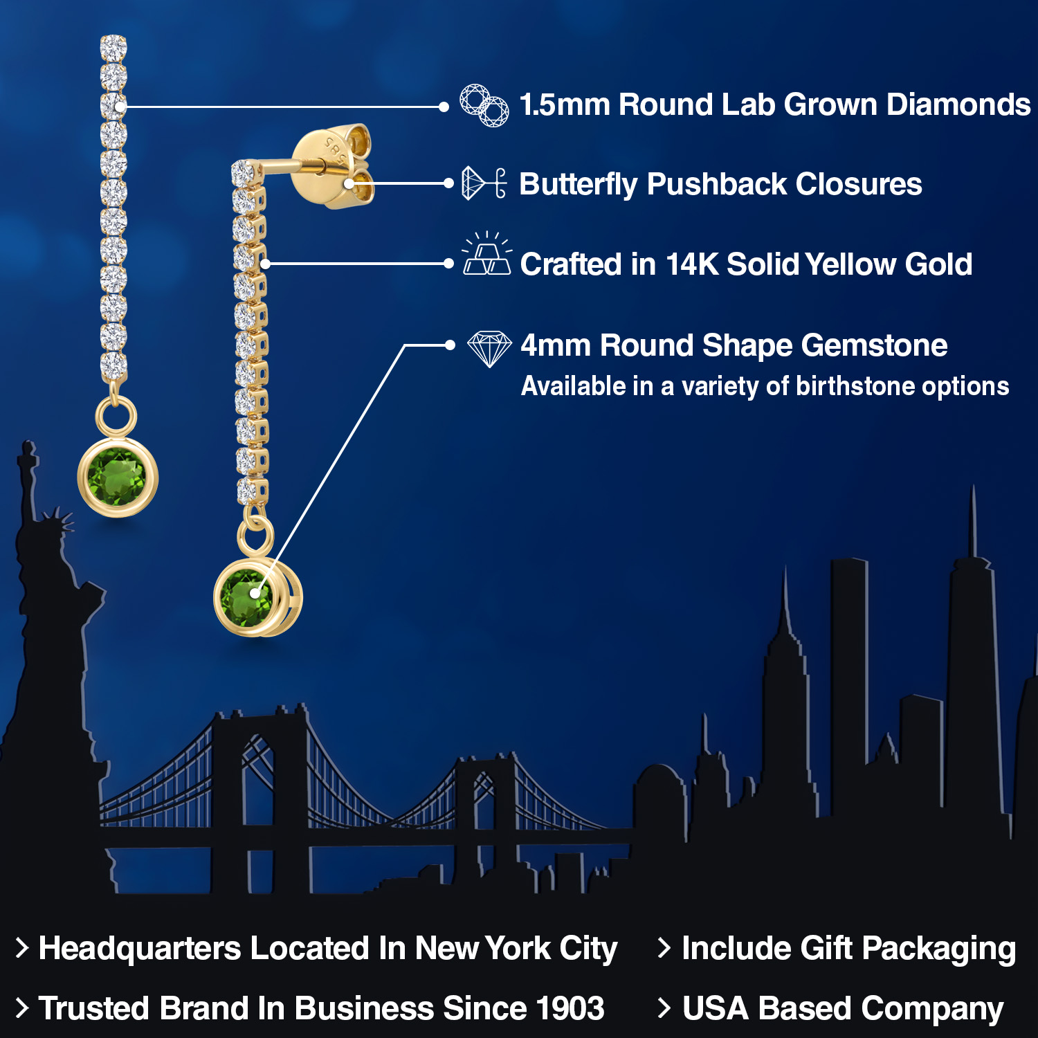 LONG LINER DANGLE DESIGN: The elegant chain drop style of these earrings is accentuated by brilliant 1.5MM lab-grown diamonds, offering a captivating sparkle that dances with every movement. The seamless blend of gemstones and diamonds exemplifies superior craftsmanship, creating a graceful silhouette that elongates the neckline. Each element is meticulously set, ensuring both security and aesthetic harmony.