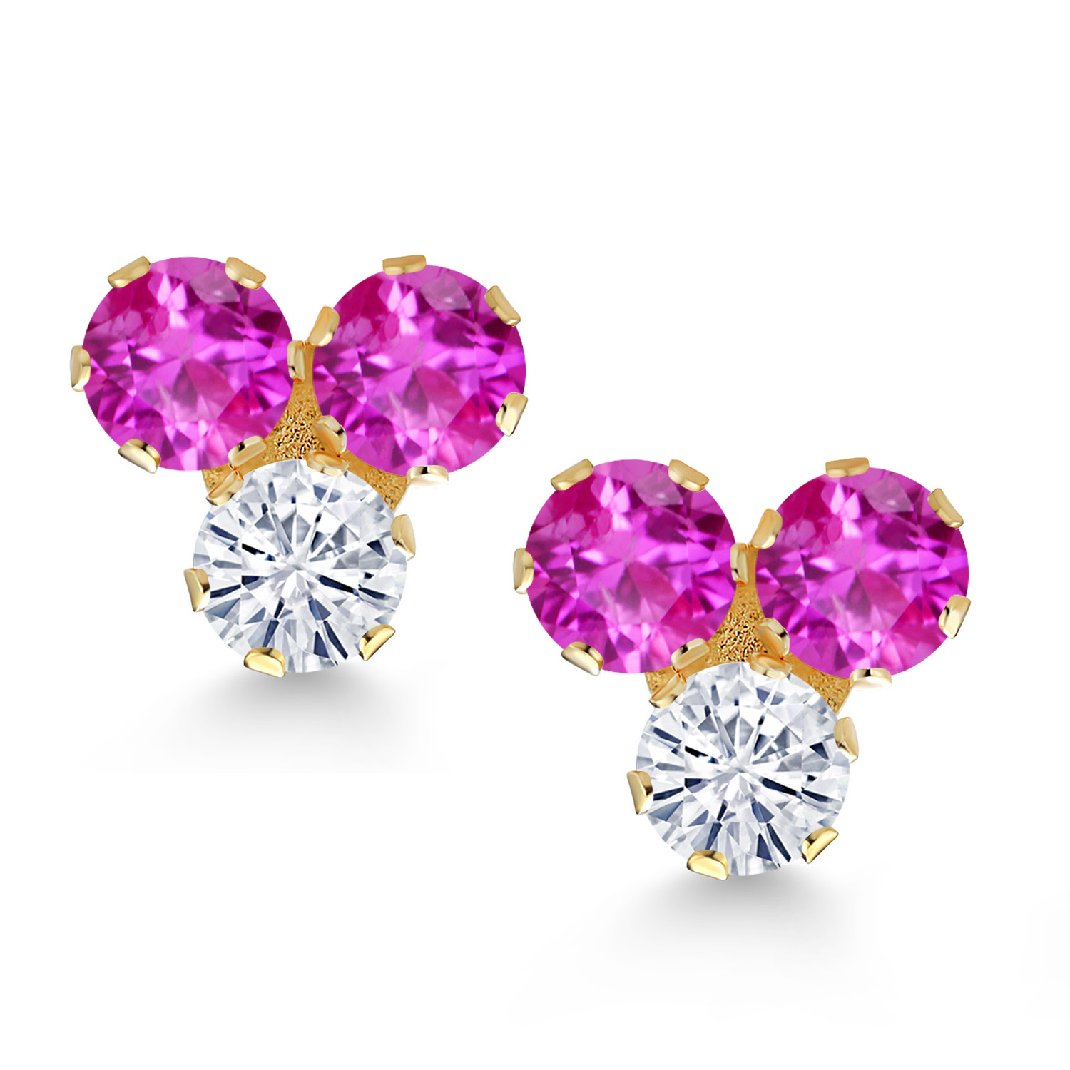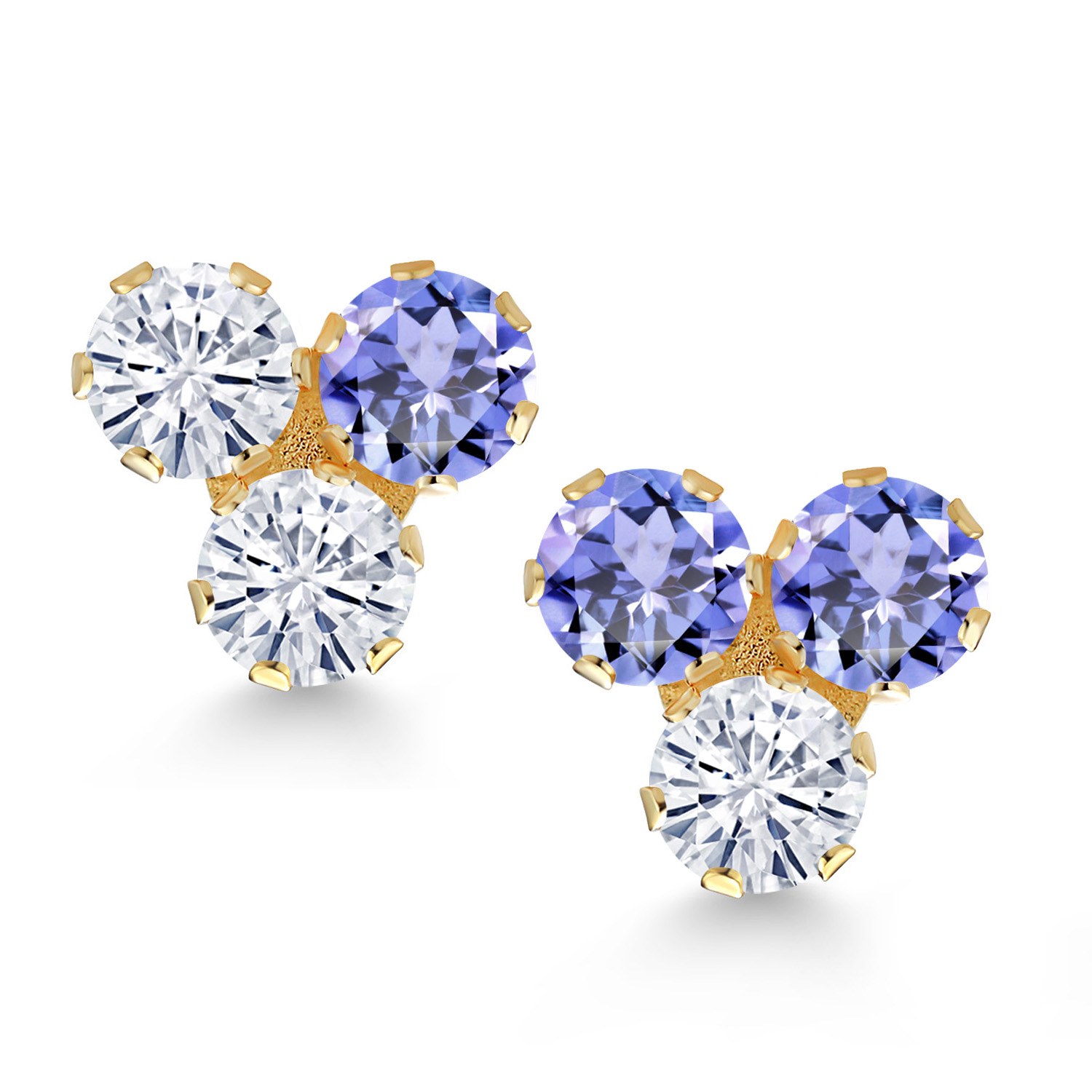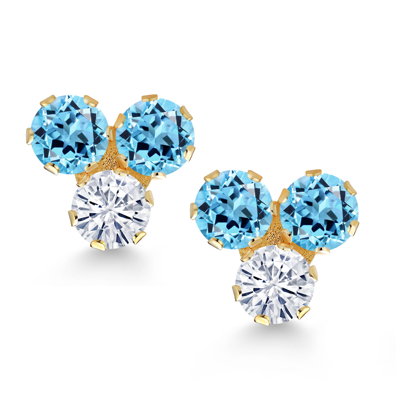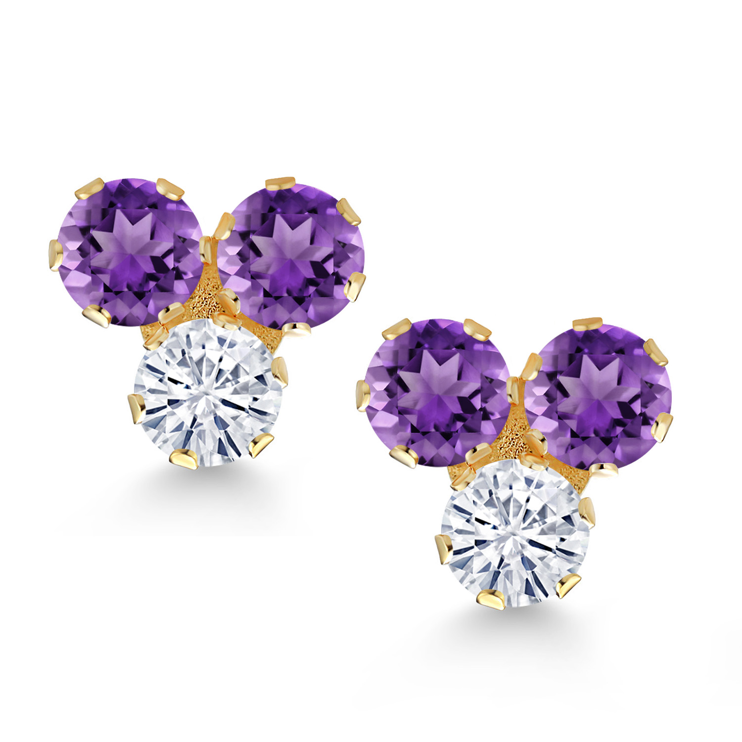 RADIANT TRIO DESIGN: These exquisite 3MM round-cut gemstones are available in a stunning array of birthstone options, each flanking a brilliant white moissanite center. The cluster design showcases a harmonious blend of colors and clarity, creating a captivating visual appeal that catches the light with every movement, making these earrings a perfect choice for those who appreciate elegance and personal expression in their jewelry.
