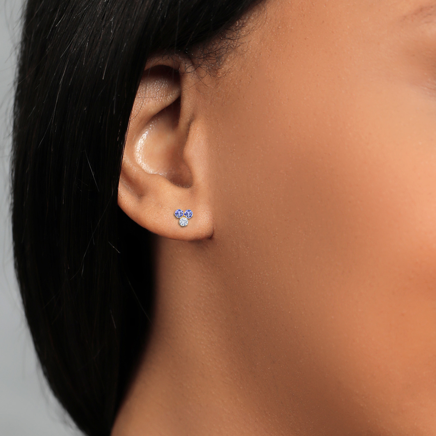 ARTFUL CRAFTSMANSHIP: This unique 3-stone triangular cluster layout adds dimension and a playful, polished look to your ear stack. The side stones accentuate the central moissanite, enhancing its brilliance and creating a sophisticated symmetrical look that transitions seamlessly from day to night. The secure 6-prong setting ensures each stone remains in place, reflecting a commitment to quality and long-lasting wear.