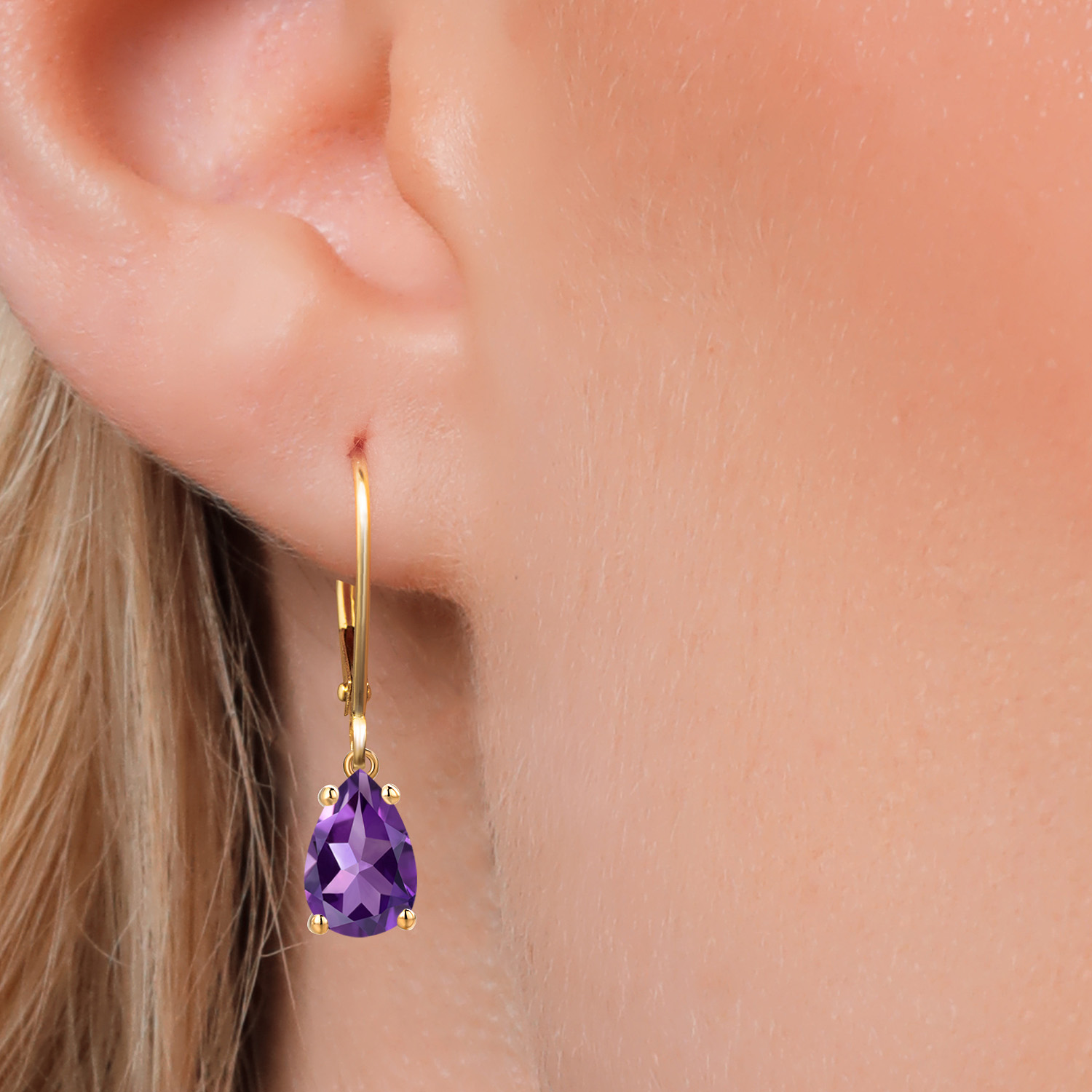 PEAR-SHAPED GEMSTONE ELEGANCE: Capturing the essence of elegance, these earrings feature a stunning 9x6MM pear-shaped gemstone, available in various birthstones to represent each month's unique beauty. The expertly cut facets enhance the stone's clarity and brilliance, allowing light to dance across its surface with every movement. This distinct teardrop shape is not only visually captivating but also symbolizes the purity and renewal, making it a timeless addition to any jewelry collection.