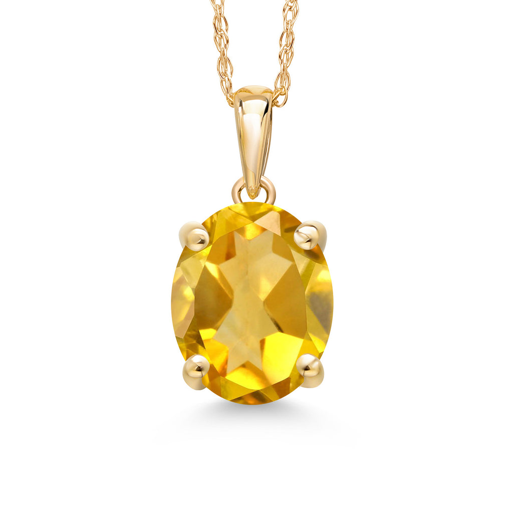 14K Yellow Gold Solitaire Pendant Necklace For Women | 10X8MM Oval Gemstone Birthstone Gold Necklace | With 18 Inch Gold Chain | Fine Jewelry Gifts for Her Mom Women Wife